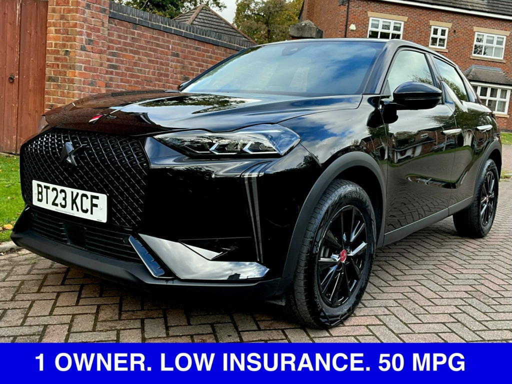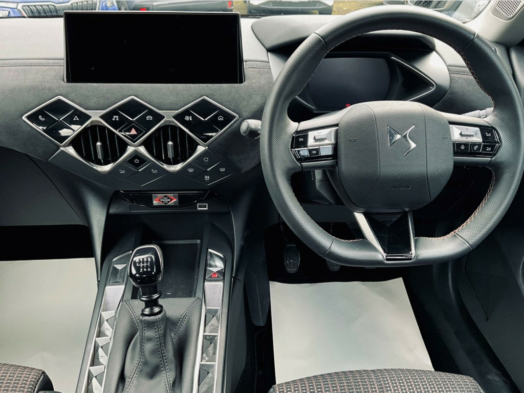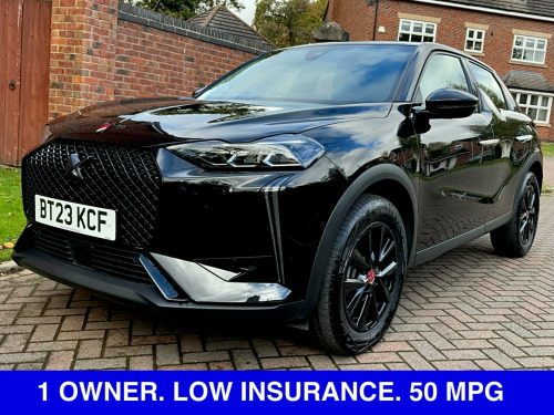 This 2023 DS 3 PureTech Performance Line presents an exceptional ownership proposition with its remarkably low mileage of just 10,000 miles and a full service history. This Euro 6 compliant 1.2 litre petrol model has been meticulously maintained by its single owner, ensuring its excellent condition. Inside, you'll find a host of convenient features designed for modern driving, including Mirror Screen with Android Auto and Apple CarPlay, automatic air conditioning, and automatic headlights. For added peace of mind, it also comes equipped with a Safety Pack and rear parking sensors.This DS 3 stands out from similar vehicles due to its impressive fuel economy, achieving a notable 54 miles per gallon. Furthermore, its low CO2 emissions and low insurance group highlight its cost effectiveness and efficiency, making it a smart choice for any driver.. 10.3in HD Touchscreen, 12V Socket, 17in Alloy Wheels - Oslo, 40-60 Split Rear Seats Backrest, 7in Digital Instrument Cluster, 8 Speakers, ABS - Anti-lock Braking System, Acoustic and Tinted Front Windscreen, Airbags - Front - Rear Lateral and Curtain, Alarm - Perimetric and Volumetric with Anti-Lift Detection, Automatic Air Conditioning, Automatic Front Windscreen Wipers, Automatic Rear Wiper when Reverse Gear is Selected, Black DS Badges, Black DS Wings, Black Perforated Leather Steering Wheel with Contrast Stitching, Bluetooth Handsfree and Media Streaming, Boot Lighting, Carmine Centre Caps with DS Logo, Cruise Control with Speed Limiter, DAB Digital Radio, DS Connect Box Emergency and Assistance System, ESP - Electronic Stability Programme, Electric Parking Brake, Electrically Adjustable - Heated - Folding Door Mirrors with LED Spotlight, Flush Fitting Door Handles with Chrome, Front Seatbelts with Pretensioners and Front-Rear Load Limiter, Front and Rear Courtesy Reading Lights - LED, Front and Rear Electric Windows, Front and Rear Grab Handles, Gloss Black Door Mirrors, Gloss Black Front Grille, Gloss Black Rear Tailgate Trim and Rear Light Surround, Headlights - Automatic, Height Adjustable Front Seats, Height Adjustable Front and Rear Headrests, Hill Start Assist, Keyless Start, LED Daytime Running Lights, LED Headlights, Locking Wheel Bolts, Mirror Screen with Android Auto and Apple Car Play, Multi-Function On-Board Trip Computer, Odour Filter, One Front USB Connection Point, Premium Seat with Comfort Foam and Pads and Map Pocket, Rear Parking Sensors, Remote Central Control Locking with Deadlocks, Safety Pack, Seat Belt Unfastened Warning, Single Exhaust Tailpipe, Sunvisors with LED Courtesy Mirror, Tinted Exterior Door Mirrors, Tinted Rear Windows with Heated Rear Windscreen, Two Rear ISOFIX Mounting Points, Tyre Pressure Monitor, Tyre Repair Kit, Variable Power Assisted Steering. Full service history
