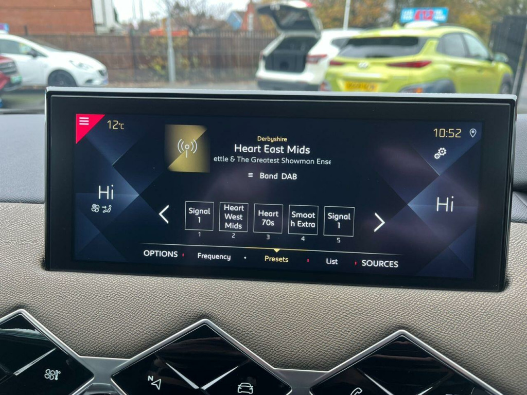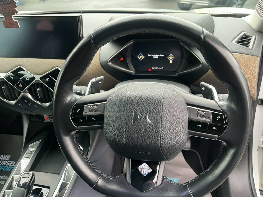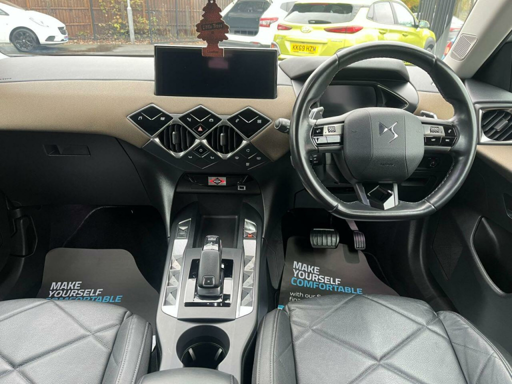 . 10in HD Touchscreen, 12V Socket, 17in Alloy Wheels - Madrid Onyx Black Diamond-Cut, 3D LED Rear Lights, 40-60 Split Rear Seats Backrest, 7in Digital Instrument Cluster, 8 Speakers, ABS - Anti-lock Braking System, Acoustic and Tinted Front and Rear Windscreen, Airbags - Front - Rear Lateral and Curtain, Alarm - Perimetric and Volumetric, Armrest - Front Centre, Automatic Air Conditioning, Automatic Front Windscreen Wipers, Automatic Rear Wiper when Reverse Gear is Selected, Bag Support Hooks in the Boot, Black Centre Caps with DS Logo, Black Leather Steering Wheel, Bluetooth Handsfree and Media Streaming with USB Socket, Boot Lighting, Chrome Door Handles, Cruise Control with Speed Limiter, DAB Digital Radio, Dark Tinted Rear Windows, Door Mirrors - Electrically Folding and Dimming with DS LED Spotlight, DS Connect Box Emergency and Assistance System, DS Connect Nav System, DS Inspiration - Bastille Leather, DS Monogram on the Rear Tailgate, Electric Parking Brake, ESP - Electronic Stability Programme, Flush Fitting Door Handles, Front and Rear Carpet Mats, Front and Rear Courtesy Reading Lights - LED, Front and Rear Electric Windows, Front and Rear Grab Handles, Front Double Cup Holder, Front Parking Sensors, Gloss Black Door Mirrors, Headlights - Automatic, Headlights - Halogen, Heated Rear Windscreen, Height Adjustable Front and Rear Headrests, Height Adjustable Front Seat Belts with Pre-Tensioners and Front and Rear Load Limiter, Height-Adjustable Drivers Seat, Height-Adjustable Front Passenger Seat, Hill Start Assist, Integrated Split Chrome Tailpipes, Keyless Start, LED Daytime Running Lights, Light Grey Interior Roof, Locking Wheel Bolts, Mirror Screen with Android Auto and Apple Car Play, Multi-Function On-Board Trip Computer, Odour Filter, Premium Seat with Comfort Foam and Pads and Map Pocket, Rear Parking Sensors, Remote Central Control Locking with Deadlocks, Safety Pack, Seat Belt Unfastened Warning, Space Saver Spare Wheel, Sunvisors with LED Courtesy Mirror, Tinted Exterior Door Mirrors, TomTom Speedcam - Danger Zones (3 Year Subscription From New), Two Front USB Connection Points, Two Rear ISOFIX Mounting Points, Tyre Pressure Monitor, Variable Power Assisted Steering, Voice Recognition, Warning Triangle Fasteners in the Boot.