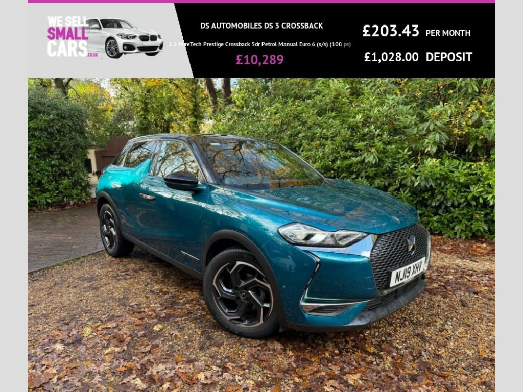 This 2019 DS DS 3 1.2 PureTech Prestige Crossback 5dr Petrol Manual is currently available for £9,989 in Southampton Hampshire with Petrol engine and Manual gearbox. For more information or to arrange a viewing, click here to send us an email using form below.