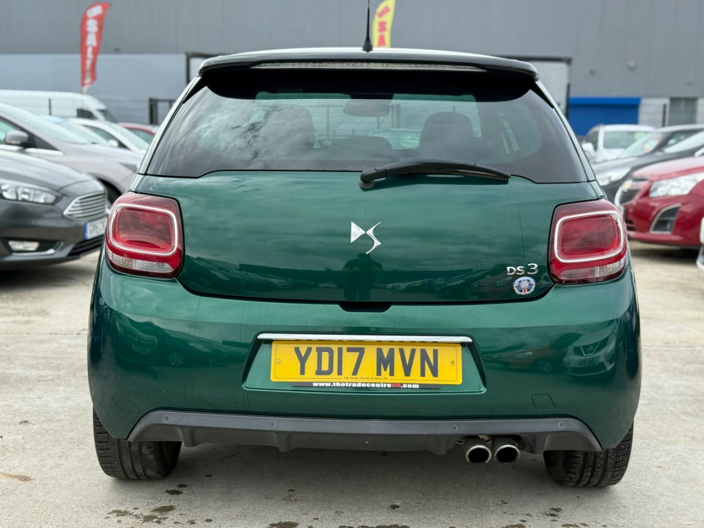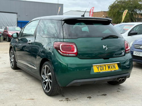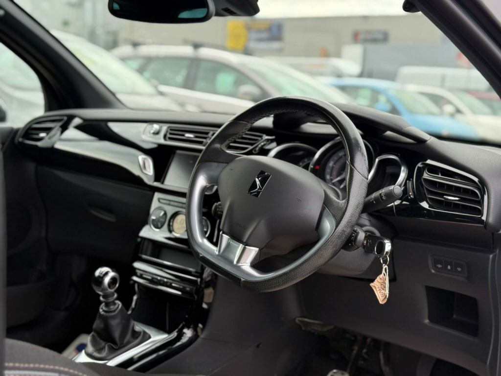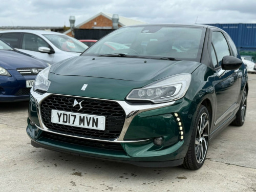 This 2017 DS 3 PureTech Prestige offers excellent peace of mind with its MOT valid until February 2026. This stylish hatchback, featuring a 1.2 litre petrol engine and meeting Euro 6 emissions standards, comes with partial service history. Inside, you'll find a comfortable cabin equipped with automatic air conditioning, Bluetooth handsfree and media streaming with a USB socket, and DS LED Vision Xenon headlights for superior visibility. For added convenience, both front and rear parking sensors are included, providing comprehensive parking assistance.Experience impressive efficiency with this DS 3, achieving a remarkable 63 miles per gallon, which indicates it is more economical than many similar vehicles. Its low CO2 emissions further contribute to its environmental credentials. Performance is also a strong point, with a brisk 0 to 62 miles per hour acceleration time of just 8.9 seconds, demonstrating its capability compared to other cars in its class.  volt socket in cabin, 17in alloy wheels - aphrodite black diamond-cut, 3d led rear lights, 7in colour touchscreen, abs - anti-lock braking system with electronic brakeforce distribution and emergency braking assistance, active city brake, alarm, aluminium sports pedals, auto dimming electrochrome rear view mirror, automatic air conditioning, automatic lights and windscreen wipers, black panel on-off instrument lighting, bluetooth handsfree and media streaming with usb socket, boot lighting, chrome ds wings grille, chrome door handles, chrome front fog light surrounds, chrome rear bumper insert, chrome side rubbing strips, coloured plip key insert, cruise control with speed limiter, dab digital radio, ds connect box emergency and assistance system, ds led vision - xenon headlights, dark tinted rear windows, driver-front passenger-front lateral and curtain airbags, drivers unfastened seat belt warning, drivers and passengers sunvisor with courtesy mirror, esc - electronic stability control, electrically heated and folding door mirrors, exterior temperature display, five 3-point inertia reel seat belts, front courtesy and reading lights, front door pockets with bottle holder, front electric windows, front parking sensors, front seat back pockets, front seat belt pretensioners, gei - gear efficiency indicator, gloss black centre console and interior door handle surrounds, gloss black gear knob, gloss black kit - gloss black dashboard strip, height and reach adjustable steering wheel, height-adjustable drivers seat, height-adjustable front passenger seat, hi-fi system audio upgrade, hill start assist, immobiliser, integrated air freshener, interior mood lighting, led daytime running lights, led front fog lights, lashing eyes in the boot, leather door trim, leather handbrake with chrome insert, locking wheel bolts, multi-function on-board trip computer, premium nappa leather steering wheel, rds radio with 6 speakers and aux socket, rear parking sensors, rear split-folding seats, rear spoiler, remote central control locking with deadlocks, rev counter, roof colour painted door mirrors, satin chrome door sill protectors, satin chrome gear surround, satin chrome steering wheel inserts, single chrome exhaust tailpipe, soft-touch upper dashboard, space saver spare wheel, sport suspension, sports seats, steering wheel mounted controls, traction control, two rear isofix mounting points with top tether, tyre pressure monitor, variable-assistance power steering, emyway satellite navigation