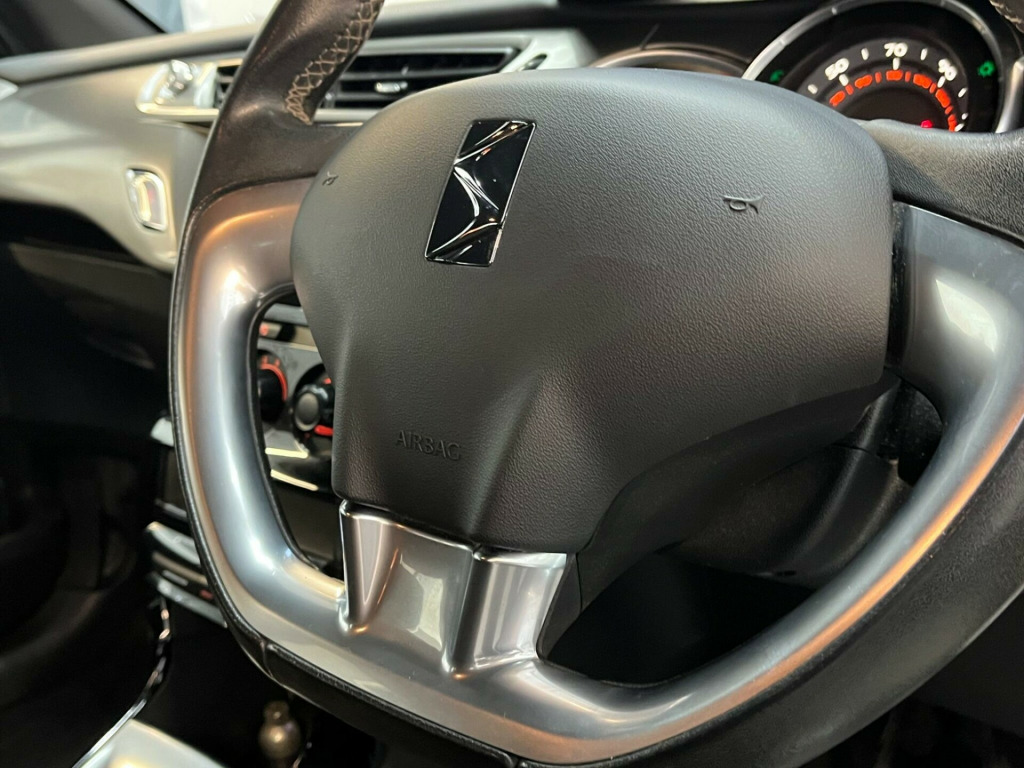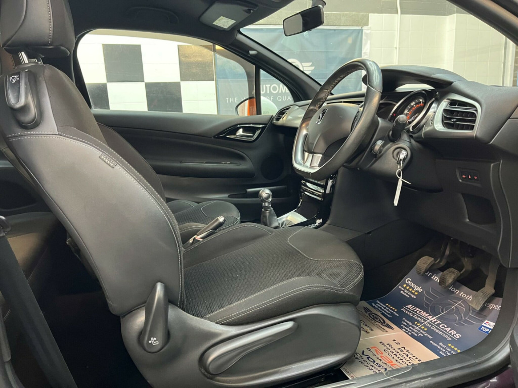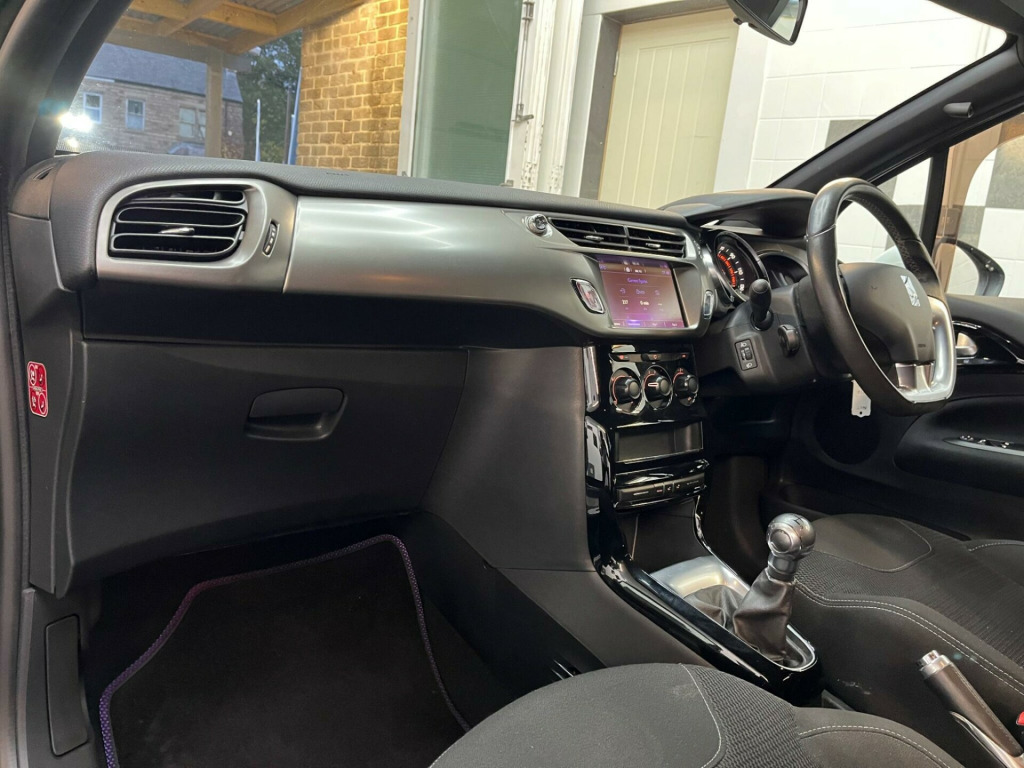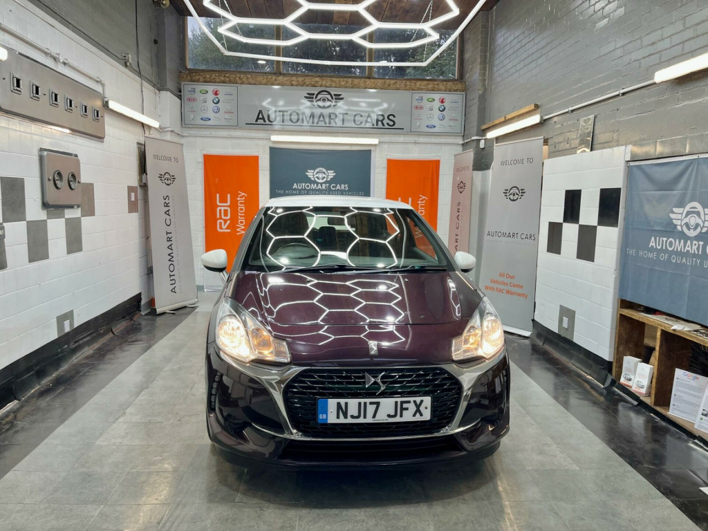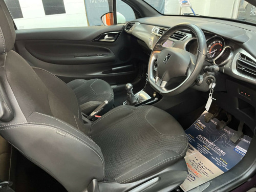 This 2017 DS 3 BlueHDi Chic is a superb example, having been owned by just one careful keeper from new and boasting a clear vehicle history check. This stylish hatchback features a 1.6 litre Euro 6 diesel engine, offering an impressive fuel economy of up to 83 miles per gallon. Inside, you'll find comfortable Chic trim, complete with air conditioning to keep you cool, and a Bluetooth handsfree system with USB socket for seamless phone connectivity and media streaming.The low CO2 emissions of this DS 3 are a significant advantage, indicating its efficiency and environmental consideration compared to many other vehicles in its class. This, combined with its exceptional fuel economy, means you can enjoy your journeys while keeping running costs down. The combination of its single owner provenance, clear history, and desirable features makes this DS 3 BlueHDi Chic a truly appealing choice.. 12 Volt Socket in Cabin, 16in Alloy Wheels - Ashera Black Diamond-cut, 3D LED Rear Lights, 7in Colour Touchscreen, ABS - Anti-lock Braking System with Electronic Brakeforce Distribution and Emergency Braking Assistance, Air Conditioning, Alarm, Black Centre Console and Interior Door Handle Surrounds, Black Panel On-Off Instrument Lighting, Bluetooth Handsfree and Media Streaming with USB Socket, Boot Lighting, Chrome DS Wings Grille, Chrome Door Handles, Chrome Rear Bumper Insert, Chrome Side Rubbing Strips, Coloured Plip Key Insert, Compressor with Puncture Repair Kit, Cruise Control with Speed Limiter, DAB Digital Radio, Driver-Front Passenger-Front Lateral and Curtain Airbags, Drivers Unfastened Seat Belt Warning, Drivers and Passengers Sunvisor with Courtesy Mirror, ESC - Electronic Stability Control, Electrically Adjustable Door Mirrors, Exterior Temperature Display, Five 3-Point Inertia Reel Seat Belts, Front Courtesy and Reading Lights, Front Door Pockets with Bottle Holder, Front Electric Windows, Front Seat Back Pockets, Front Seat Belt Pretensioners, GEI - Gear Efficiency Indicator, Gloss Black Gear Knob, Height and Reach Adjustable Steering Wheel, Height-Adjustable Drivers Seat, Height-Adjustable Halogen Headlights, Hill Start Assist, Immobiliser, Integrated Air Freshener, Interior Mood Lighting, LED Daytime Running Lights, Lashing Eyes in the Boot, Leather Handbrake with Chrome Insert, Leather Steering Wheel, Locking Wheel Bolts, Multi-Function On-Board Trip Computer, RDS Radio with 6 Speakers and AUX Socket, Rear Split-Folding Seats, Remote Central Control Locking with Deadlocks, Rev Counter, Roof Colour Painted Door Mirrors, Satin Chrome Door Sill Protectors, Satin Chrome Steering Wheel Inserts, Single Chrome Exhaust Tailpipe, Soft-Touch Upper Dashboard, Sport Suspension, Steering Wheel Mounted Controls, Traction Control, Tungsten Dashboard Strip, Two Rear ISOFIX Mounting Points with Top Tether, Tyre Pressure Monitor, Variable-Assistance Power Steering, 17in Alloy Wheels - Aphrodite Black Diamond-Cut, Akinen Cloth-Alcantara - Basalt Black, Comfort Pack. Part service history