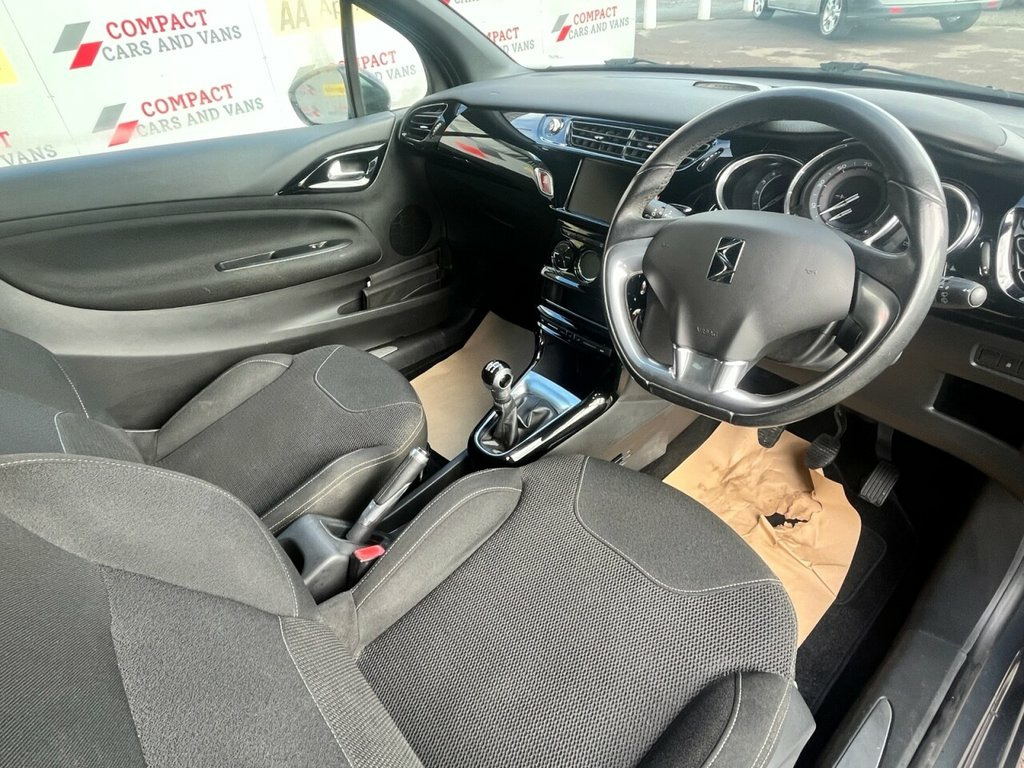 Efficient and well-equipped, this 65-plate DS Automobiles DS 3 1.6 BlueHDi DStyle Nav is designed to keep running costs low while offering a strong level of everyday comfort and technology. Its economical Euro 6 diesel engine delivers excellent fuel efficiency of up to around 83mpg combined, low CO? emissions (approx. 87g/km) and low road tax costs, making it ideal for budget-conscious motoring. DStyle Nav specification includes satellite navigation, digital climate control, Bluetooth connectivity, DAB audio and modern infotainment features to enhance daily driving. With modest insurance group ratings, solid reliability from the BlueHDi engine and compact dimensions for easy urban use, the DS 3 offers an appealing blend of style, efficiency and sensible ownership costs in a well-specified, practical 3-door hatchback package. 12v Socket - Front, 17in Alloy Wheels - Aphrodite Black, 3D LED Rear Lights, 7in Touchscreen, ABS - Anti-lock Braking System, Air Conditioning - Automatic-Digital, Airbags - Curtain, Airbags - Driver, Airbags - Front Lateral, Airbags - Front Passenger, Auxilary Socket, Black Panel Night-time Instrument Lighti, Bluetooth Handsfree, Bluetooth Media Streaming, Boot Lighting, Bottle Holder, Chrome Door Handles, Chrome Effect Gear Surround, Chrome Front Fog Light Surrounds, Chrome Front Grille Surround, Chrome Rear Bumper Insert, Chrome Side Rubbing Strips, Compressor with Puncture Repair Kit, Cruise Control with Speed Limiter, DAB Digital Radio, DS Connect Box, Dark Tinted Rear Windows, Door Mir