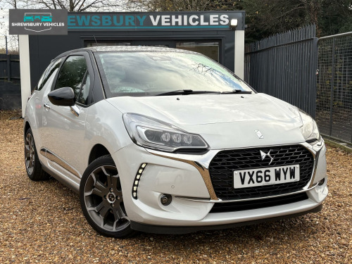 This 2016 DS DS 3 1.6 THP Ultra Prestige Hatchback 3dr Petrol Manual Euro 6 (s/s) (165 bhp) Hatchback is currently available for £7,995 in Shrewsbury with Petrol engine and Manual gearbox. For more information or to arrange a viewing, click here to send us an email using form below.