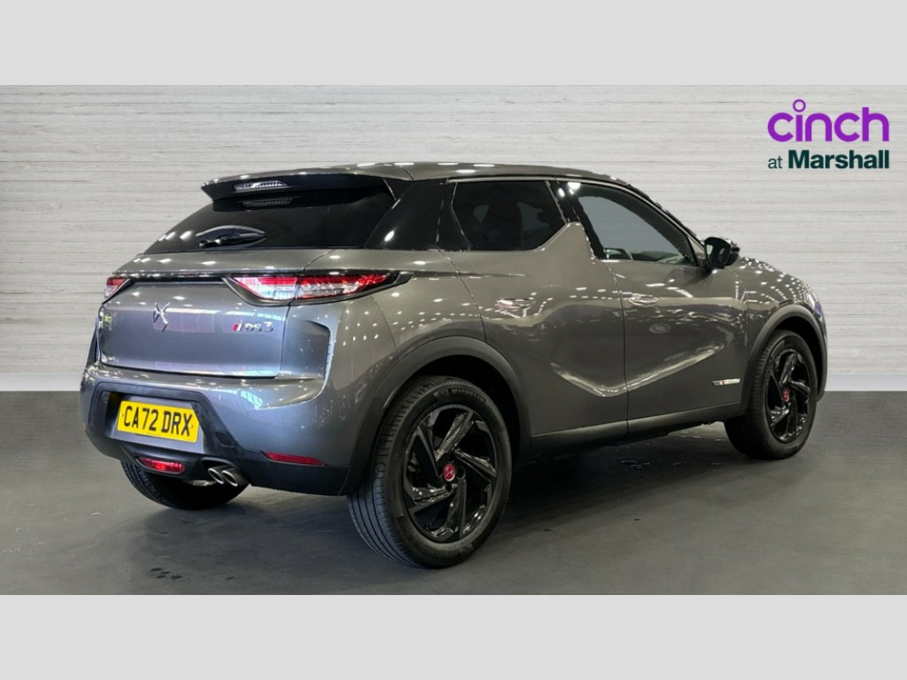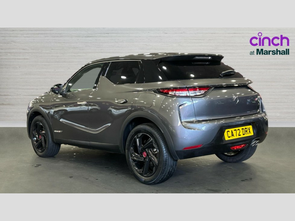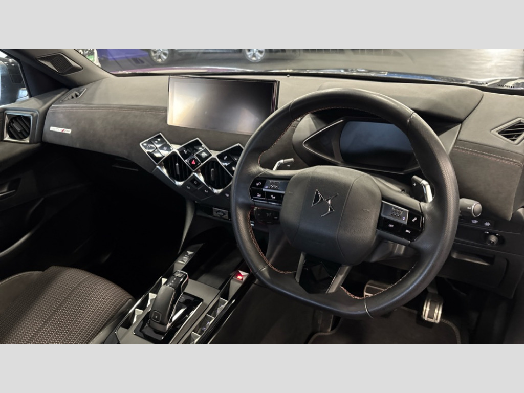 Ds DS 3 1.2 PureTech 130 Performance Line + 5dr EAT8 7 inch digital instrument cluster display, Cruise control with speed limiter, DS Connect Box emergency and assistance system, DS Connect Nav - Connected 3D navigation, 10 inch HD touchscreen, automatic air conditioning, DS Sensorial drive, eCall emergency call system, Mirror Screen with Apple car play/Android Auto, Multi function on board trip computer, PAS, Service indicator, Voice recognition, 2x USB sockets in front, Bluetooth handsfree and media streaming, DAB Digital radio, Acoustic and tinted front and rear windscreens, Automatic front windscreen wipers, Automatic lights, Automatic triggered rear windscreen wiper in reverse gear, Black DS wings, Body coloured bumpers, Chrome door handles, Chrome front door sill trim, Dark tinted rear windows, DS LED rear lights, DS Matrix LED headlights with low and high beam assist, DS monogram on rear tailgate, Electrically adjustable door mirrors, Electrically folding door mirrors with DS LED spotlights, Flush fitting exterior door handles, Frameless electrochrome interior rear view mirror, Front and rear electric windows, Gloss black exterior door mirrors, Heated door mirrors, Heated rear windscreen, LED daytime running lights, Rear side wing doors, Third brake light, Tinted exterior door mirrors, Twin exhaust tailpipe, 12V socket, 3 seat bench in 2nd row, 40/60 backrest split on rear seats with easy folding button, Adjustable steering wheel, Aluminium sports pedals, Bag support hooks in the boot, Black interior roof, Boot light, DS Inspiration PERFORMANCE LINE - Woven cloth/Alcantara upholstery, Front + rear carpet mats, Front and rear LED reading lights, Front central armrest, Front/rear passenger grab handles, Height adjustable front seats, Height adjustable front/rear head restraints, Odour filter, Perforated leather steering wheel with contrast stitching - black, Premium seat with comfort foam and pads & map pocket, Single front passenger seat, Sunvisors with LED vanity mirror, Twin front cupholders, Two rear isofix mounting points, 3x3 point rear seatbelts, ABS, Airbags - front / rear lateral and curtain airbags, Electric parking brake, ESP, Height adjustable front seatbelts with pretensioners and front and rear load limiter, Hill assist control, Rear door child safety locks, Seatbelt warning, Tyre pressure monitoring system, Warning triangle on boot lid, Immobiliser, Locking wheel nuts, Perimetric and volumetric anti theft alarm with anti lift detection, Proximity keyless entry and start, Remote central locking + deadlocks, 18" Monza diamond cut alloy wheels, Carmine centre caps with DS logo