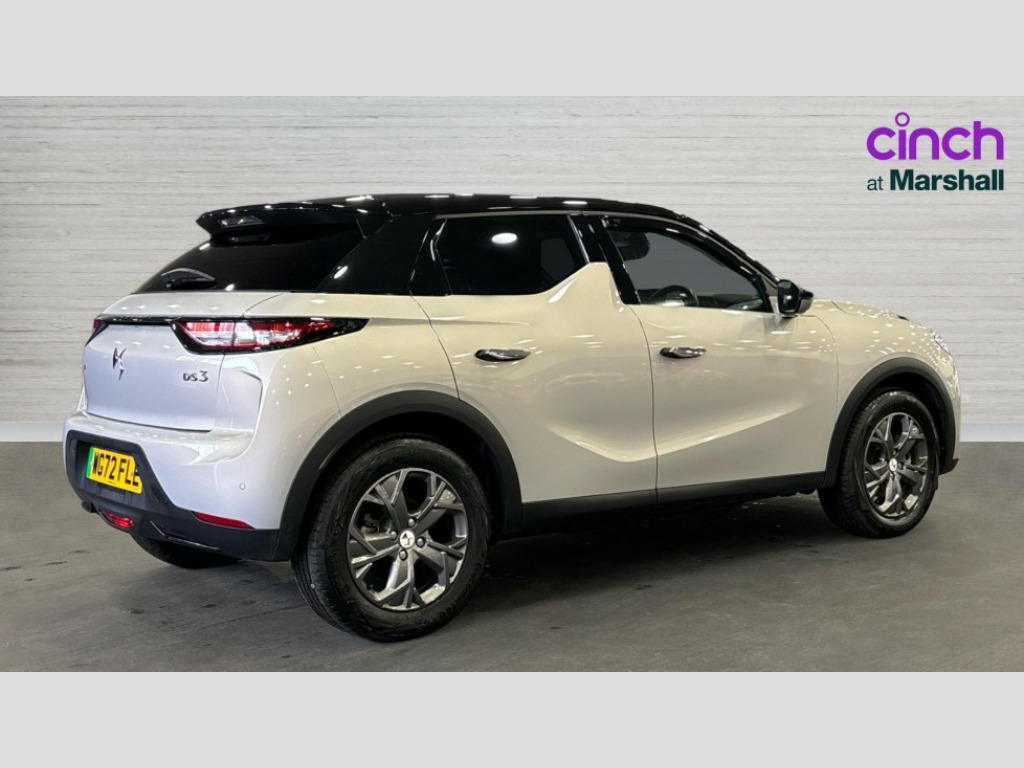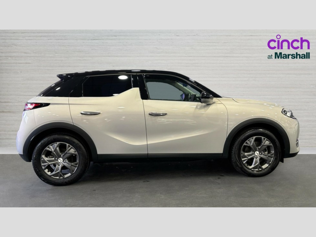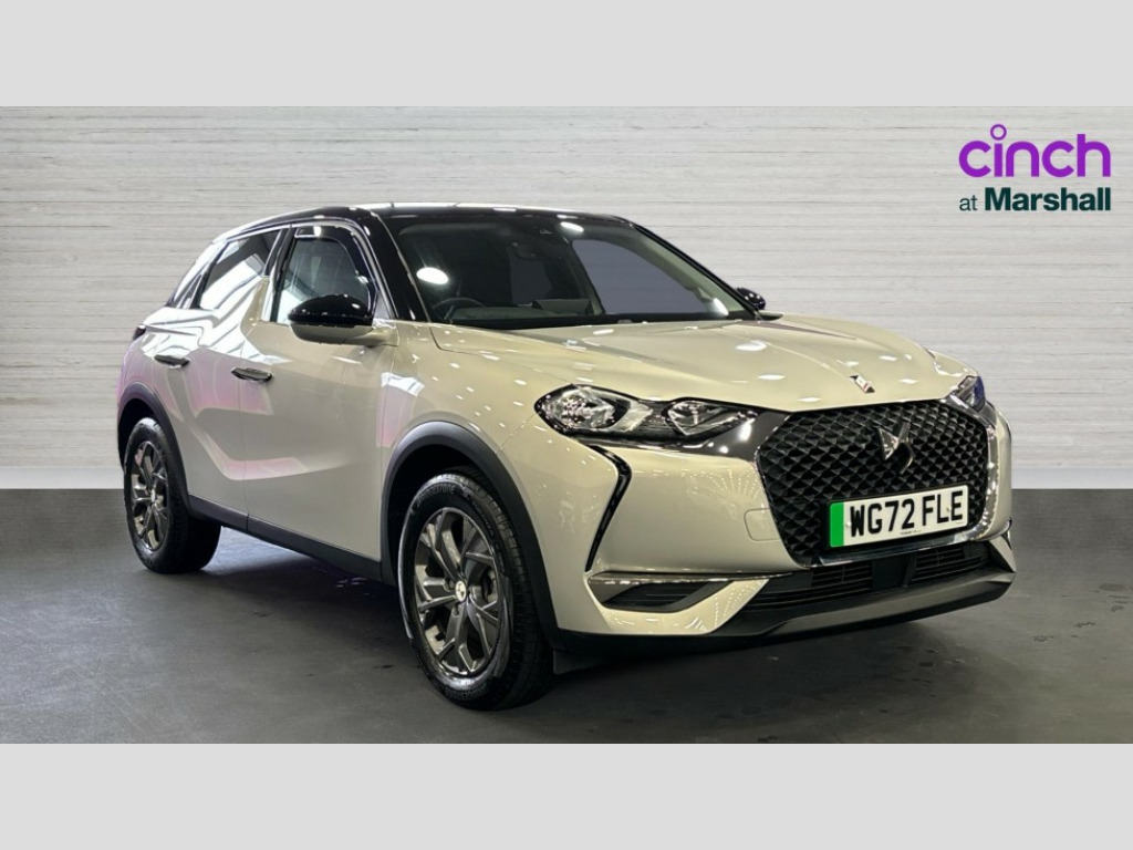 Ds DS 3 100kW E-TENSE Bastille 50kWh 5dr Auto 7 inch digital instrument cluster display, Cruise control with speed limiter, DS Connect Box emergency and assistance system, eCall emergency call system, Mirror Screen with Apple car play/Android Auto, Multi function on board trip computer, PAS, Service indicator, 11KW onboard charger, accelerated charging, compatible with 3 phase charging, Accelerated charging cable, Rapid charging 100kW, 1x USB socket in front, 8 Speakers, Bluetooth handsfree and media streaming, DAB Digital radio, Acoustic and tinted front and rear windscreens, Automatic front windscreen wipers, Automatic lights, Automatic triggered rear windscreen wiper in reverse gear, Body coloured bumpers, Chrome door handles, Dark tinted rear windows, DS monogram on rear tailgate, E-TENSE badging, Electrically adjustable door mirrors, Electrically folding door mirrors with DS LED spotlights, Flush fitting exterior door handles, Frameless electrochrome interior rear view mirror, Front and rear electric windows, Gloss black exterior door mirrors, Halogen headlights, Heated door mirrors, Heated rear windscreen, LED daytime running lights, Rear side wing doors, Satin chrome DS Wings, Third brake light, Tinted exterior door mirrors, 12V socket, 3 seat bench in 2nd row, 40/60 backrest split on rear seats with easy folding button, Adjustable steering wheel, Bag support hooks in the boot, Boot light, Front and rear LED reading lights, Front/rear passenger grab handles, Height adjustable front seats, Height adjustable front/rear head restraints, Odour filter, Premium seat with comfort foam and pads & map pocket, Programmable heater with temperature regulator, Single front passenger seat, Sunvisors with LED vanity mirror, Twin front cupholders, Two rear isofix mounting points, 3x3 point rear seatbelts, ABS, Airbags - front / rear lateral and curtain airbags, Electric parking brake, ESP, Height adjustable front seatbelts with pretensioners and front and rear load limiter, Hill assist control, Rear door child safety locks, Seatbelt warning, Tyre pressure monitoring system, Warning triangle on boot lid, Locking wheel nuts, Perimetric and volumetric anti theft alarm with anti lift detection, Remote central locking + deadlocks, Tyre repair kit, White wheel centre caps with DS logo