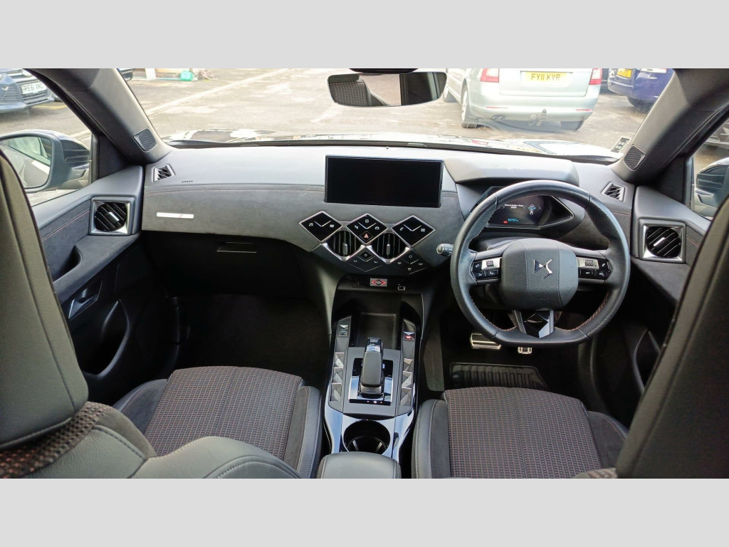 This 2021 DS 3 CROSSBACK E-TENSE Performance Line + boasts a full service history and has had only one owner from new, ensuring excellent provenance. This electric vehicle features a 50 kWh battery offering a maximum range of 232 miles when new. Charging is convenient, with a full charge at home taking approximately 7 hours and 30 minutes using a 7kW charger, and a rapid charge to 80% achievable in just 30 minutes at a public charging station. The vehicle comes with a 12 month MOT provided on purchase and has a clear vehicle history check.The Performance Line + trim level is equipped with a host of desirable features that enhance the driving experience. These include the DS Connect Nav System with Climate Control, and Mirror Screen compatibility with both Android Auto and Apple CarPlay for seamless smartphone integration. The advanced DS Matrix LED Vision Headlights provide superior illumination, complemented by automatic headlights. Keyless entry and start are also included, offering effortless access and ignition. These highlights demonstrate the superior specification and thoughtful design of this DS 3 CROSSBACK compared to other vehicles in its class. in hd touchscreen, 11kw on-board charger, 12v socket, 18in alloy wheels - monza diamond-cut, 40-60 split rear seats backrest, 7in digital instrument cluster, 8 speakers, abs - anti-lock braking system, accelerated charging cable - 7kw, acoustic and tinted front and rear windscreen, advanced safety pack, airbags - front - rear lateral and curtain, alarm - perimetric and volumetric, aluminium sports pedals, armrest - front centre, automatic air conditioning, automatic front windscreen wipers, automatic rear wiper when reverse gear is selected, bag support hooks in the boot, black ds wings, black interior roof, black perforated leather steering wheel with contrast stitching, bluetooth handsfree and media streaming, boot lighting, chrome door handles, cruise control with speed limiter, dab digital radio, ds connect box emergency and assistance system, ds connect nav system, ds inspiration - performance line, ds led rear light, ds matrix led vision headlights, ds monogram on the rear tailgate, dark tinted rear windows, domestic charging cable, door mirrors - electrically folding and dimming with ds led spotlight, e-tense badging, esp - electronic stability programme, electric parking brake, flush fitting door handles, frameless electrochromic interior rear view mirror, front chromed door entry sill, front double cup holder, front parking sensors, front and rear carpet mats, front and rear courtesy reading lights - led, front and rear electric windows, front and rear grab handles, gloss black door mirrors, headlights - automatic, heated rear windscreen, height adjustable front seat belts with pre-tensioners and front and rear load limiter, height adjustable front and rear headrests, height-adjustable drivers seat, height-adjustable front passenger seat, hill start assist, led daytime running lights, locking wheel bolts, mirror screen with android auto and apple car play, multi-function on-board trip computer, odour filter, premium seat with comfort foam and pads and map pocket, programmable heater with temperature regulator, proximity keyless entry & start, rapid charging capability - 100kw, rear parking sensors, red carmine centre caps with ds logo, remote central control locking with deadlocks, seat belt unfastened warning, sunvisors with led courtesy mirror, tinted exterior door mirrors, tomtom speedcam - danger zones (3 year subscription from new), two front usb connection points, two rear isofix mounting points, tyre pressure monitor, tyre repair kit, variable power assisted steering, voice recognition, warning triangle fasteners in the boot