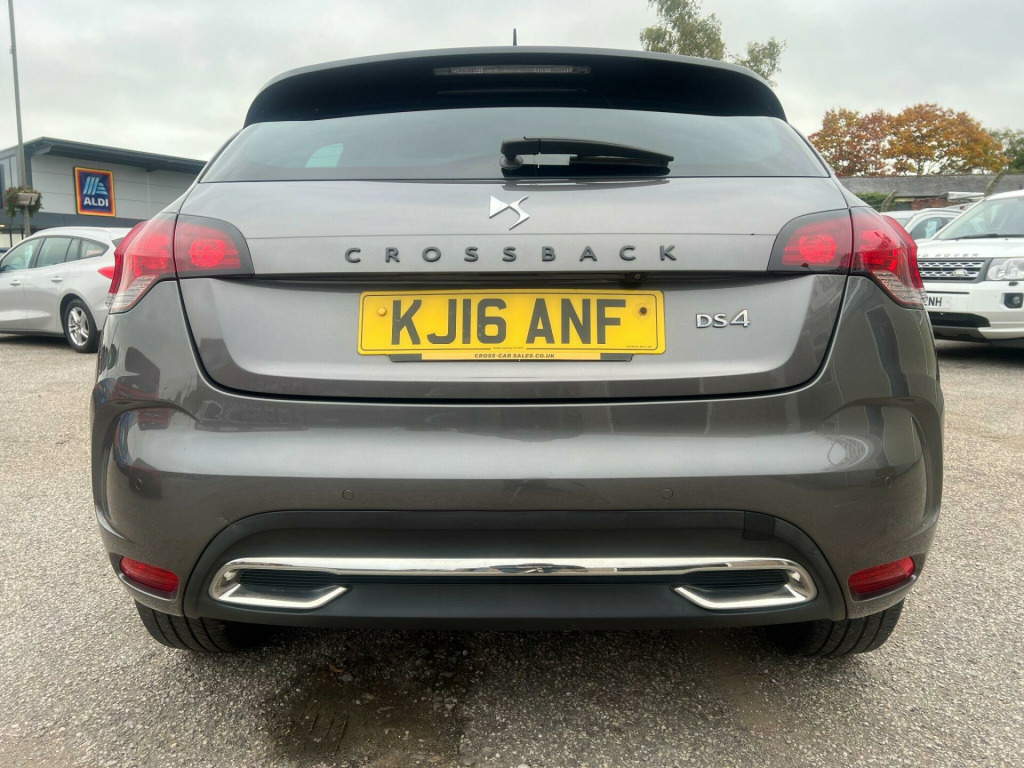 This 2016 DS 4 CROSSBACK BlueHDi boasts a full service history, offering you peace of mind with its well maintained provenance. This stylish hatchback features a 1.6 litre Euro 6 diesel engine, ensuring efficient performance. Notable features include advanced Xenon LED Vision headlights that adapt to your steering, automatic headlights for convenience, and keyless entry and start for effortless access. Stay connected on the go with the integrated Bluetooth system.. 12V Socket - Luggage Compartment, 12v Socket - Front, 18in Alloy Wheels - Brisbane Gloss Black Painted, 7in Colour Touchscreen, ABS - Anti-lock Braking System, Adjustable Lumbar Support on Front Seats, Airbags - Curtain, Airbags - Driver, Airbags - Front Lateral, Airbags - Front Passenger, Alarm - Thatcham Category 1, Aluminium Roof Style-bars, Anti Misfuelling Device, Armrest - Front Adjustable, Auto Dimming Electrochrome Rear View Mirror, Automatic Door and Boot Locking, Automatic Pack, Black Panel Night-time Instrument Lighting, Black Plastic Wheel Arch Protection, Bluetooth Media Streaming, Bluetooth System, Bumpers - Front Gloss Black Central, CD Player, Chrome Window Trim, Compressor with Puncture Repair Kit, Crossback Carpet Mat Set, Crossback Tailgate Lettering, Cruise Control with Speed Limiter, Cup Holder, Customisable Colour Instrument Panel with Chrome Surrounds, DAB Digital Radio, DS Connect Box, Dark Tinted Rear Windows, Door Mirrors - Electrically Adjustable-Heated-Folding, Door Mirrors - Integrated Kerb Lighting, Door Sill Protectors - Crossback, Dual-Zone Automatic Air Conditioning, EBD - Electronic Brakeforce Distribution, ESC - Electronic Stability Control, Electric Parking Brake, Electronic Child Locks with Indicator, Emergency Brake Assistance - EBA, Exterior Temperature Display with Ice Alert, Front Electric Windows, Front Seat Back Pockets, Front and Rear Courtesy Reading Lights, Gloss Black Door Mirrors, Glovebox - Illuminated, Guide-Me-Home Headlights, Head Restraints - Front and Rear, Headlights - Automatic, Headlights - Washers, Headlights - Xenon Directional LED, Headlights - Xenon LED Vision, Height Adjustable Front Seats, Height and Reach Adjustable Steering Wheel, ISOFIX - Child Anchorage Points - Two Outer Rear, Interior Mood Lighting, Keyless Entry and Start, Keyless Start, LED Daytime Running Lights, LED Front Fog Lights, Leather Gear Knob, Locking Wheel Bolts, Mirror Screen with Mirror Link and Car Play, Multi-Function On-Board Trip Computer, Panoramic Windscreen with Individual Sunblinds, Power Assisted Steering - Electro-hydraulic, Rain Sensitive Windscreen Wipers, Rear Centre Armrest with Ski Flap, Rear Parking Sensors, Rear Split-Folding Seats - 1-3 and 2-3, Rechargeable Torch, Reversing Camera, Spoiler - Gloss Black, Sports Seats, Steering Wheel - Multifunction, Steering Wheel - Premium Nappa Leather, Storage Drawer Under Front Passenger Seat, Traction Control - Intelligent, Two Remote Plip Keys with Selective Boot Unlocking, Tyre Pressure Monitor, USB Socket, eMyWay Satellite Navigation, Space Saver Spare Wheel. Full service history