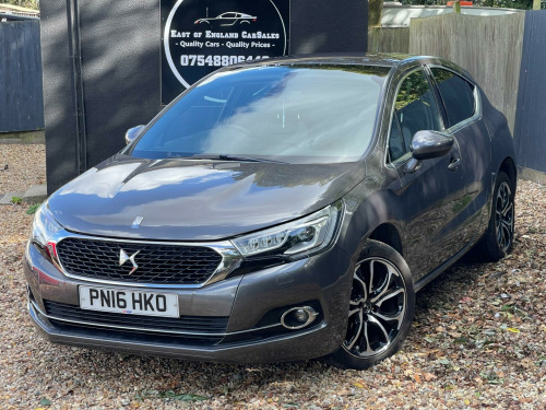 Experience a perfect blend of luxury, efficiency, and modern design with this DS 4 1.6 BlueHDi Prestige Euro 6. Finished with a distinctive, stylish exterior and packed with premium features, this hatchback offers comfort and refinement with every drive.Under the bonnet, the 1.6 BlueHDi diesel engine delivers an excellent balance of power and economy, making it an ideal choice for both city commutes and longer motorway journeys. With Euro 6 compliance and start/stop technology, it’s also environmentally conscious and ULEZ friendly.Inside, the Prestige specification ensures a first-class driving experience. Expect high-quality materials, a sleek dashboard design, and a host of technology to make every journey enjoyable. The spacious 5-door layout provides comfort for both driver and passengers, while the generous boot space adds practicality to its premium feel.This DS 4 truly stands out with its modern styling, advanced efficiency, and luxurious specification. Whether you’re looking for a stylish daily driver or a comfortable cruiser for longer trips, it’s ready to impress.. 12V Socket - Luggage Compartment, 12v Socket - Front, 18in Alloy Wheels - Brisbane Diamond-cut, 7in Colour Touchscreen, ABS - Anti-lock Braking System, Adjustable Lumbar Support on Front Seats, Airbags - Curtain, Airbags - Driver, Airbags - Front Lateral, Airbags - Front Passenger, Alarm - Thatcham Category 1, Anti Misfuelling Device, Armrest - Front Adjustable, Auto Dimming Electrochrome Rear View Mirror, Automatic Door and Boot Locking, Automatic Pack, Black Panel Night-time Instrument Lighting, Bluetooth Media Streaming, Bluetooth System, CD Player, Chrome Window Trim, Compressor with Puncture Repair Kit, Cruise Control with Speed Limiter, Cup Holder, Customisable Colour Instrument Panel with Chrome Surrounds, DAB Digital Radio, DS Connect Box, Dark Tinted Rear Windows, Door Mirrors - Electrically Adjustable-Heated-Folding, Door Mirrors - Integrated Kerb Lighting, Dual-Zone Automatic Air Conditioning, EBD - Electronic Brakeforce Distribution, ESC - Electronic Stability Control, Electric Parking Brake, Electronic Child Locks with Indicator, Emergency Brake Assistance - EBA, Exterior Temperature Display with Ice Alert, Front Electric Windows, Front Seat Back Pockets, Front and Rear Courtesy Reading Lights, Glovebox - Illuminated, Guide-Me-Home Headlights, Head Restraints - Front and Rear, Headlights - Automatic, Headlights - Washers, Headlights - Xenon Directional LED, Headlights - Xenon LED Vision, Height Adjustable Front Seats, Height and Reach Adjustable Steering Wheel, ISOFIX - Child Anchorage Points - Two Outer Rear, Interior Mood Lighting, Keyless Entry and Start, Keyless Start, LED Daytime Running Lights, LED Front Fog Lights, Leather Gear Knob, Locking Wheel Bolts, Mirror Screen with Mirror Link and Car Play, Multi-Function On-Board Trip Computer, Panoramic Windscreen with Individual Sunblinds, Power Assisted Steering - Electro-hydraulic, Rain Sensitive Windscreen Wipers, Rear Centre Armrest with Ski Flap, Rear Parking Sensors, Rear Split-Folding Seats - 1-3 and 2-3, Rechargeable Torch, Reversing Camera, Sports Seats, Steering Wheel - Multifunction, Steering Wheel - Premium Nappa Leather, Storage Drawer Under Front Passenger Seat, Traction Control - Intelligent, Two Remote Plip Keys with Selective Boot Unlocking, Tyre Pressure Monitor, USB Socket, eMyWay Satellite Navigation. Full service history