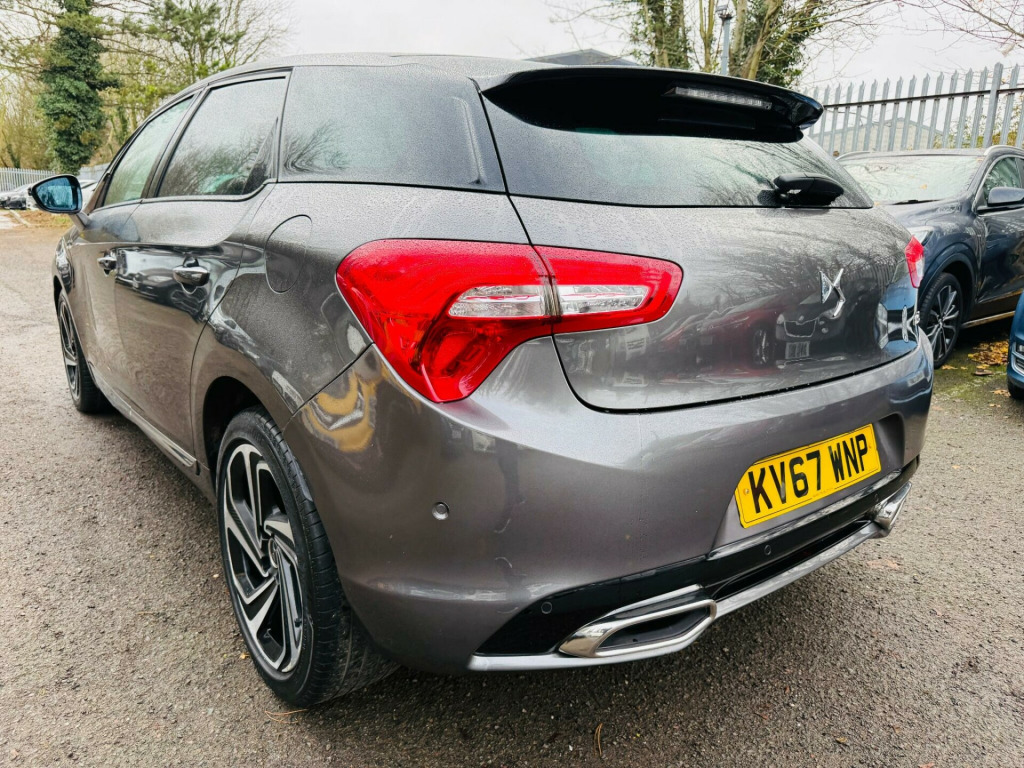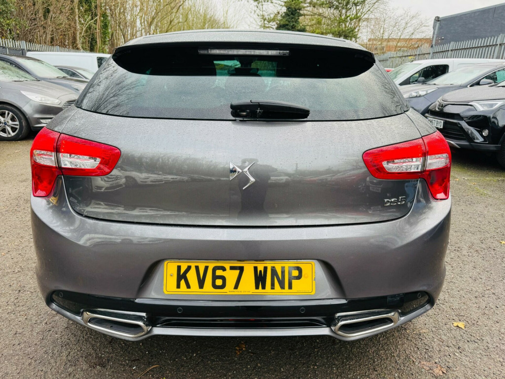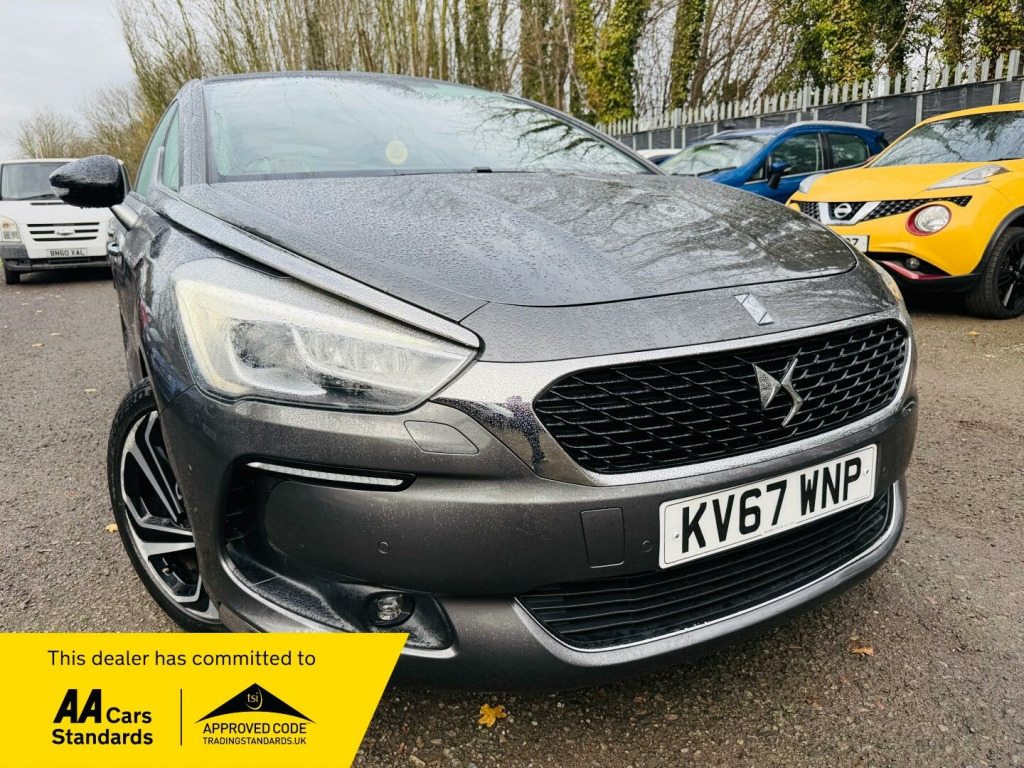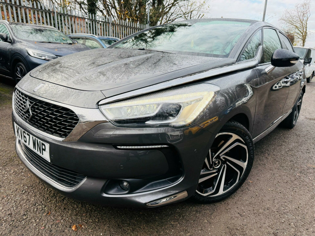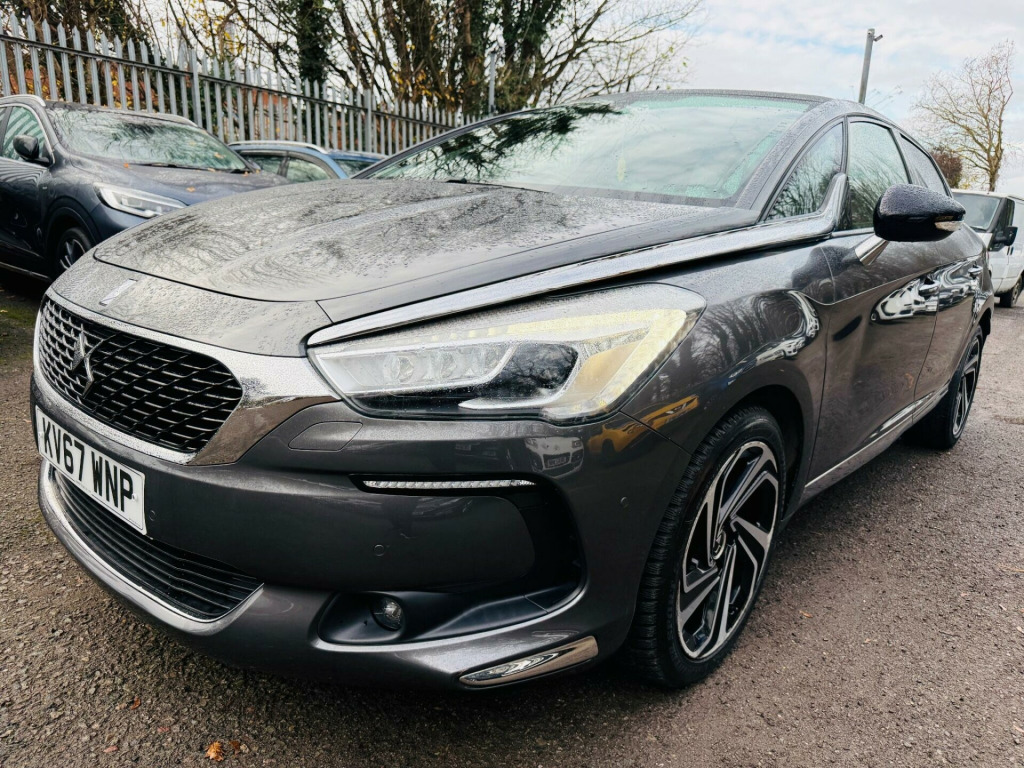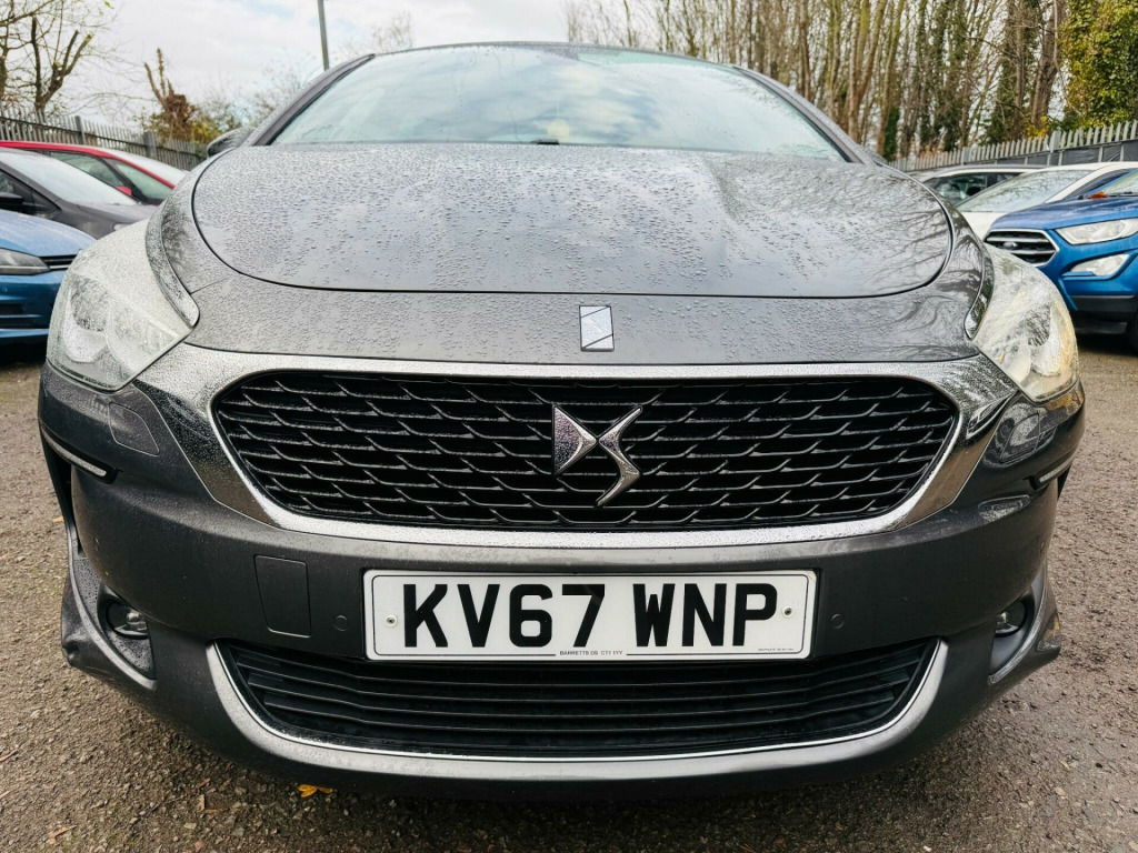 GREY, SERVICE HISTORY, FINANCE AVAILABLE, NAVIGATION SYSTEM, PARKING CAMERA, LEATHER AND HEATED SEATS, PANORAMIC ROOF, ONLY TWO OWNER FROM NEW, SPARE KEYS, PRIVACY GLASS, START/STOP, CRUISE CONTROL,ULEZ COMPLIANTSUPERB DRIVE, VERY ECONOMICAL, ALLOY WHEELS, CLIMATE CONTROL, VERY WELL LOOKED AFTER, VERY CLEAN IN AND OUTThis 2017 DS 5 BlueHDi Prestige offers excellent provenance with its MOT valid until November 2026 and a recent service completed on 2nd September 2025, all supported by a low mileage of just 51,457 miles for its age. This Euro 6 compliant 2.0L diesel model, presented in the Prestige trim, comes equipped with a suite of advanced features designed for comfort and safety. These include a Blind Spot Monitoring System with assistance, a Reversing Camera with parking assistance, and Dual-Zone Automatic Air Conditioning for personalised climate control.The DS 5 Prestige also boasts a distinctive three-part glass roof with electric sunblinds, creating an open and airy cabin atmosphere. For seamless connectivity, it features Mirror Screen with Mirror Link and Apple CarPlay, allowing easy integration of your smartphone. The generous boot space ensures practicality for all your needs, while its performance is highlighted by a brisk 0-62mph acceleration time of 9.2 seconds, demonstrating a capable driving experience that sets it apart from other vehicles in its class.. 12 Volt Socket in Cabin, 18in Alloy Wheels - Adelaide Onyx Black - Diamond-cut, 7in Colour Touchscreen, ABS - Anti-lock Braking System with Electronic Brakeforce Distribution and Emergency Braking Assistance, Alarm - Perimetric and Volumetric, Aluminium Bonnet with Gas Struts, Analogue Clock, Anti Misfuelling Device, Auto Dimming Electrochrome Rear View Mirror, Automatic Activation of Hazard Warning Lights, Automatic Door and Boot Locking, Automatic Electric Handbrake, Automatic Lights and Windscreen Wipers, Automatic Rear Wiper when Reverse Gear is Selected, Blind Spot Monitoring System, Bluetooth Handsfree and Media Streaming with USB Socket, Body Colour Door Handles with Chrome Inserts, Body Coloured Front and Rear Bumpers, Child Lock Rear Doors and Windows, Chrome Front Bumper Inserts, Chrome Sabres, Chrome Side Rubbing Strips, Cockpit Roof with Toggle Switches, Compressor with Puncture Repair Kit, Cruise Control with Speed Limiter, Cup Holder in Rear Centre Armrest, DAB Digital Radio, DS Connect Box Emergency and Assistance System, DS Connect Navigation System, DS LED Vision - Xenon Directional Headlights, Dark Tinted Rear Windows, Driver-Front Passenger-Front Lateral and Curtain Airbags, Dual-Zone Automatic Air Conditioning, ESC - Electronic Stability Control, Electric Drivers Seat Adjustment, Electrically Adjustable-Folding-Heated Door Mirrors with LED Kerb Lighting, Electronic Fuel Filler Flap Release, Front Armrest with Storage, Front Cup Holders, Front Fog Lights with Cornering Function, Front Parking Sensors, Front Passenger Airbag Deactivation Switch, Front Seat Back Pockets, Front and Rear Courtesy Reading Lights, Front and Rear Door Pockets, Front and Rear Electric Windows, Front and Rear Metal Door Sill Protectors, Gloss Black Door Mirrors, Gloss Black Insert on Front Bumper, Gloss Black Insert on Rear Bumper, Guide-Me-Home Headlights, Height Adjustable Front Seat Belts with Pre-tensioners and Force-limiters, Height Adjustable Front Seats, Height and Reach Adjustable Steering Wheel, Hill Start Assist, Illuminated and Air Conditioned Glove Box, Interior Mood Lighting, Interior Trim Finishers - Titanium Effect, Invisible Aerial, Keyless Entry and Start, LED Daytime Running Lights, Leather Gear Knob, Leather Instrument Binnacle, Leather Steering Wheel with Chrome Inserts, Locking Wheel Bolts, Mirror Screen with Mirror Link and Car Play, Multi-Function On-Board Trip Computer, Noise Reducing Laminated Front Windscreen, Premium Carpet Mats, RDS Radio-MP3 CD Player with 6 Speakers and AUX Socket, Rear Centre Armrest with Ski Flap, Rear Garment Hooks, Rear Parking Sensors, Rear Split-Folding Seats - 1-3 and 2-3, Remote Control Central Locking with Deadlocks, Remote Opening-Closing of Windows and Selective Boot Unlocking, Reversing Camera, Scrolling LED Indicators, Steering Wheel Mounted Controls, Three-part Glass Roof with Electric Sunblinds, Twin Chrome-effect Exhaust Trims, Twin Sunglasses Holders in Cockpit Roof, Two Rear ISOFIX Mounting Points, Tyre Pressure Sensors, Unfastened Seat Belt Warning for all Seats, Variable-Assistance Power Steering.