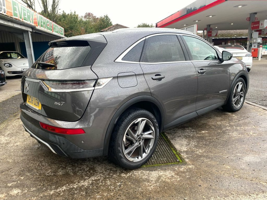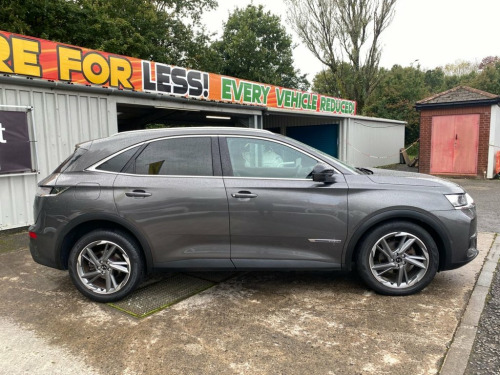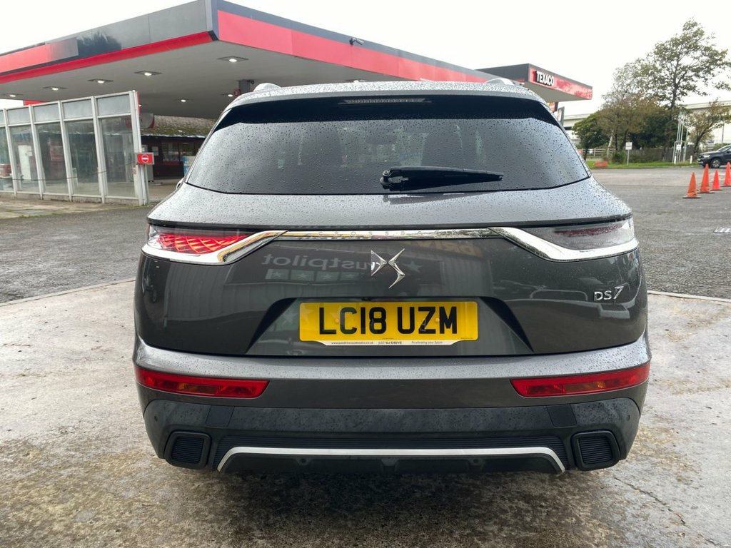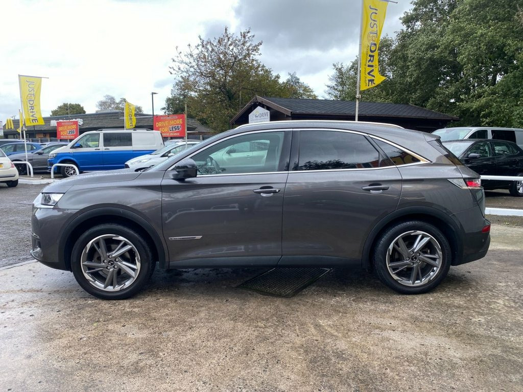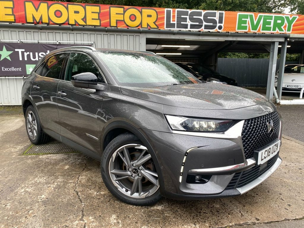 The DS 7 is a spacious, well-built SUV with a focus on luxury and avant-garde design featuring a chic interior that's absolutely packed with technology and offers premium levels of space and comfort for five adults. It's fully colour coded in Platinum Grey metallic and stands on 19" diamond cut alloy wheels - the exterior also features some smart chrome detailing, privacy glass and rear spoiler. Inside the cabin is pure luxury - the seats are fully trimmed in black quilted leather with the front having electric heating, electric adjust and three driver memory settings. The 12" touchscreen media system is centrally located and provides access to navigation, DAB radio, Bluetooth connectivity and Apple CarPlay. There's also cruise control with front and rear park sensors plus a reversing camera and 360 overhead view. The reliable 1.5 BlueHDi engine provides a lively 128 BHp and is ULEZ compliant and should achieve up to 68 mpg according to the manufacturer. 12.3in Digital Instrument Cluster, 12in HD Touchscreen, 19in Alloy Wheels - Roma Grey Anthra Dia, 40-60 Split Rear Seats Backrest, 8 Speakers, ABS - Anti-lock Braking System, Acoustic - Tinted and Heated Windscreens, Active Safety Brake, Advanced Safety Pack, Airbags - Rear Lateral and Curtain, Alarm - Perimetric and Volumetric, Aluminium Sports Pedals, Auto Comfort Pack, Automatic Bi-Zone Automatic Air Conditio, Automatic Follow Me Home Lighting, Automatic Front Doors and Boot Locking W, Automatic Lighting at Car Unlocking, BRM R180 Timepiece, Black Wheel Centre-Caps with DS Logo, Bluetooth Handsfree and Media Streaming , Body Colour Door Handles with Chrome Ins, Chromed DS Wings, Chromed S