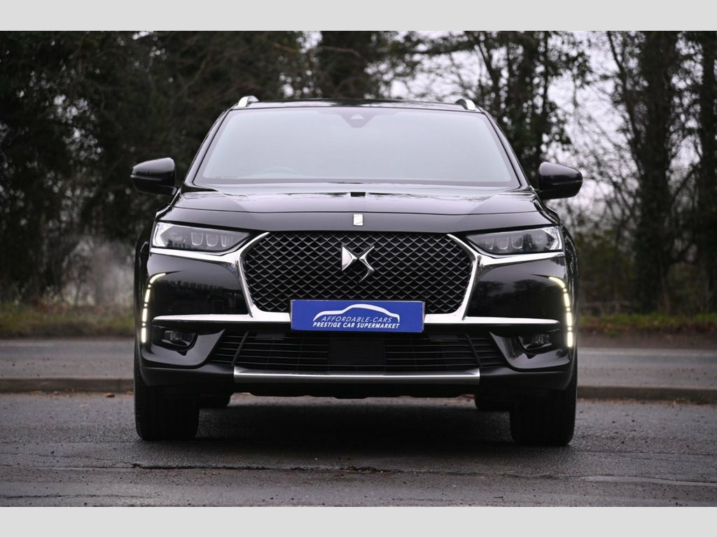 Prestige Car Supermarket in York presents this 2018 DS Automobiles DS 7 Crossback 1.5 BlueHDi Prestige, a refined and distinctive diesel SUV producing 130 ps and meeting Euro 6 standards. Finished in Perla Nera Black metallic paintwork with grained leather upholstery in Black Basalt, this DS Inspiration Rivoli model combines striking design with premium specification. Exterior highlights include 19in Roma Grey anthra diamond-cut alloy wheels, DS Active LED Vision headlights, DS 3D LED rear lights, dark tinted rear windows, gloss black grille and mirrors, chromed DS wings, inox roof rails and chrome window surrounds. The interior is centred around a 12.3in digital instrument cluster and a 12in HD touchscreen featuring DS Connect Nav, DAB digital radio, Bluetooth media streaming, voice recognition and Mirror Screen with Apple CarPlay and Android Auto. Luxury touches include Claudia and Nappa leather dashboard and door panels with stitching, crystal controls, the BRM R180 timepiece, full LED ambient interior lighting and a frameless electrochromic rear-view mirror. Comfort and convenience are enhanced by electrically adjustable front seats with heating and massage functions, bi-zone automatic climate control, keyless entry and start, cruise control with speed limiter and a reversing camera. Safety and assistance systems include Active Safety Brake, Advanced Safety Pack, high beam assist, front and rear parking sensors, trailer stability control, hill start assist and a comprehen Grained Leather - Black Basalt, Perla Nera Black, 12.3in Digital Instrument Cluster, 12in HD Touchscreen, 19in Alloy Wheels - Roma Grey Anthra Dia, 40-60 Split Rear Seats Backrest, 8 Speakers, ABS - Anti-lock Braking System, Acoustic - Tinted and Heated Windscreens, Active Safety Brake, Advanced Safety Pack, Airbags - Rear Lateral and Curtain, Alarm - Perimetric and Volumetric, Aluminium Sports Pedals, Auto Comfort Pack, Automatic Bi-Zone Automatic Air Conditio, Automatic Follow Me Home Lighting, Automatic Front Doors and Boot Locking W, Automatic Lighting at Car Unlocking, BRM R180 Timepiece, Black Wheel Centre-Caps with DS Logo, Bluetooth Handsfree and Media Streaming , Body Colour Door Ha