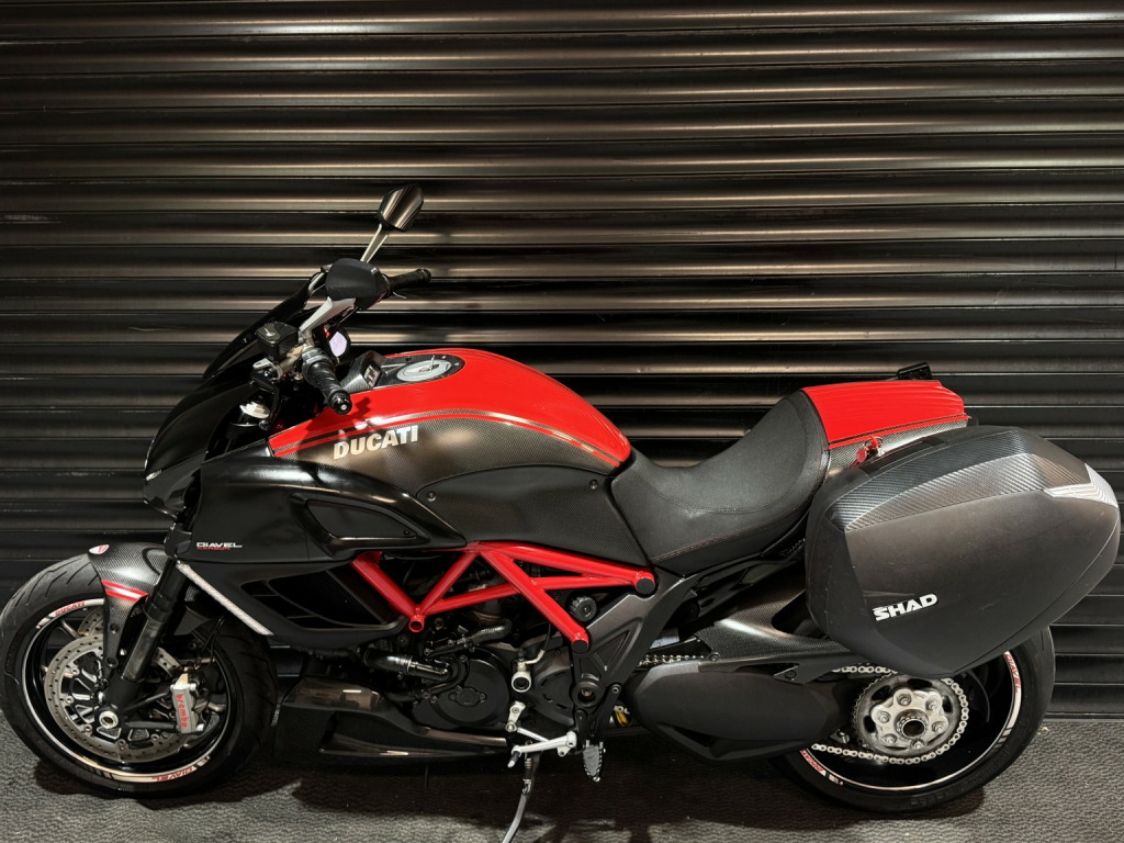 Ducati Diavel Carbon in Red, , Excellent Condition , , Full Service History (Desmo & Belts completed 2023 @ 11k Ducati), , Cherished Plate included D15DVL, , Fitted With:, , Termignoni Exhaust , Detachable SHARD panniers, Tail Tidy, Ducati Performance Brake Pots, , Recent Tyres (excellent condition), , Complete with Ducati folder containing all handover documentation including spare keys, , Warranty Included, , Nationwide delivery available