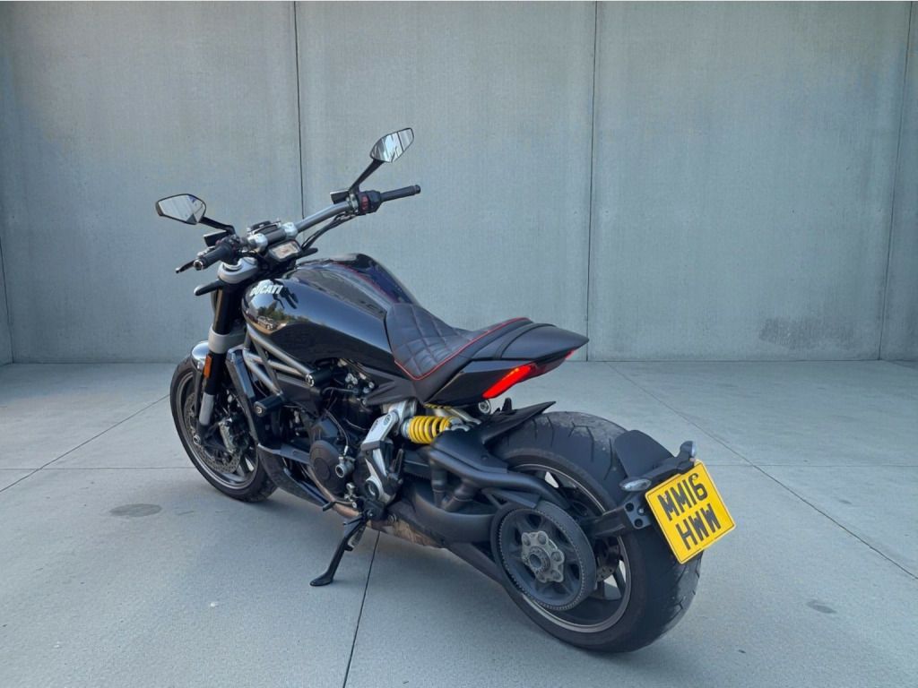 WE ARE PROUD TO PRESENT THIS ABSOLUTELY STUNNING DUCATI XDIAVEL, FINISHED IN PEARLESCENT GLOSS BLACK WITH INTEGRATED XDIAVEL S STRIPES—A TRUE FUSION OF STYLE, PERFORMANCE, AND INDIVIDUALITY. FITTED WITH MID CONTROLS AND SUPPLIED WITH FORWARD CONTROLS AND PEGS, IT ALSO FEATURES A CUSTOM HIGHER SEAT ALONGSIDE A RETRIMMED ORIGINAL SEAT FOR ADDED FLEXIBILITY. PREMIUM UPGRADES INCLUDE A CARBON SWINGARM COVER, DUCABIKE HANDLEBAR END WEIGHTS, QUICK-ACTION FUEL FILLER CAP, PILLION BACKREST, QUICK-RELEASE PHONE MOUNT WITH WIRELESS CHARGING, R&G CRASH PROTECTORS, AND ADJUSTABLE BRAKE AND CLUTCH LEVERS. STANDARD FEATURES SUCH AS THREE RIDING MODES (SPORT, TOURING, URBAN), LAUNCH CONTROL, CRUISE CONTROL, LED HEADLIGHTS, SELF-CANCELLING INDICATORS, KEYLESS START, AND KEYLESS STEERING LOCK ENSURE A MODERN AND EXHILARATING RIDING EXPERIENCE. THIS BIKE HAS BEEN METICULOUSLY MAINTAINED BY A FORMER DUCATI MASTER TECHNICIAN FOR THE PAST THREE YEARS, WITH A FULL SERVICE HISTORY AND A MAJOR DESMO SERVICE COMPLETED INCLUDING VALVE CLEARANCE. ALL RECALLS HAVE BEEN ADDRESSED (KEY, SIDE STAND), AND THE REAR BRAKE LINES HAVE BEEN REPLACED BY DUCATI, ENSURING FULL REAR BRAKE FUNCTIONALITY. IT COMES WITH THREE KEYS, INCLUDING THE MASTER RED KEY, A RECENT BATTERY, AND WILL BE FULLY SERVICED AND MOTD FOR THE NEW OWNER. A RARE AND REFINED MACHINE
