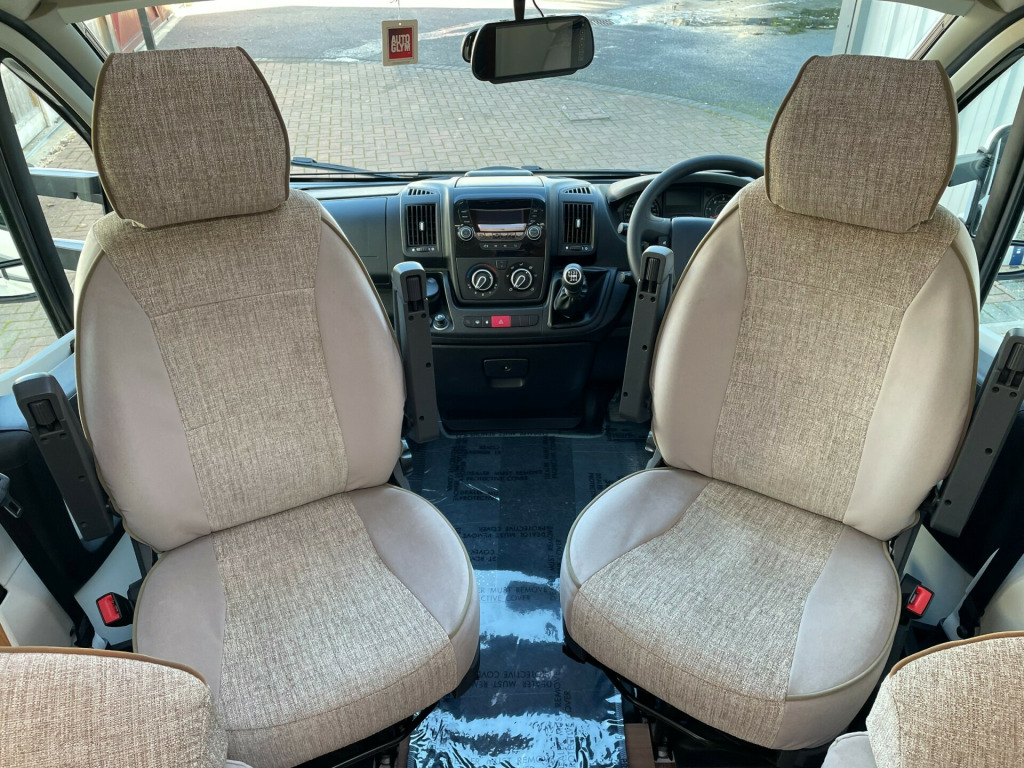 Versatile layout which offers great flexibility, as either a very spacious van for couples, featuring a full sized transverse 'Island' bed and good sized front lounge with 2 sofas. Alternatively it can become a family van by virtue of the fact that there are 2 forward-facing travelling seats, with belts, hidden under those sofas which enable the carrying of 2 people! A well thought, contemporary finish throughout means that it is a great environment for travelling and relaxing, for 2 or 4! Don't miss out on this great design Call now on 01202 855531 option 1 for sale and speak with the team 0 mains & usb sockets, 4 berth, 4 seat belts, 6 speed manual, awning, battery charger, blinds, cab aircon, camera, cassette toilet, cruise control, curtains, flyscreens, fresh water tank, fridge, gas grill/oven, gas hob, heating, heki roof light, leisure battery, lovely original condition, mains hookup, microwave, plgv (under 3.5t), reversing camera(s), sink, swivel cab seats, transverse bed