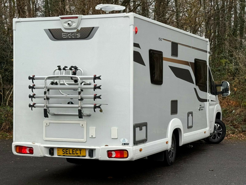 For sale is a 2023 Elddis Autoquest 150 Exclusive Edition a modern, stylish, and versatile motorhome built for adventure and comfort. This popular 4-berth model features a spacious fixed French bed, a bright and airy lounge with swivel captain seats, and a well-equipped kitchen with all the essentials for life on the road. The Exclusive Edition trim adds premium touches throughout, including alloy wheels, upgraded upholstery, and enhanced interior finishes. Built on the reliable Peugeot Boxer 2.2L engine, this motorhome delivers smooth and efficient performance whether you're exploring the countryside or cruising along the coast.This particular model comes with a host of valuable extras that make it even more ready for off-grid travel: a TV for entertainment on the go, a Gaslow refillable LPG system, a 100W solar panel for extra power independence, and a 4-ski/4-bike rack perfect for active travellers. Immaculately maintained and lightly used, it offers outstanding comfort and practicality in one sleek package. The Elddis Autoquest 150 Exclusive Edition is the ideal companion for couples or small families seeking style, reliability, and freedom wherever the road takes them. r conditioning, bluetooth connection, colour satnav, external gas bbq point, rain-sensing wipers, satellite navigation, cassette toilet, double bed, end bedroom, fixed bed, hand basin, island bed, shower, wardrobe, 3-way fridge, drainer, fridge freezer, grill, hob, kitchen, microwave, oven, side kitchen, sink/drainer, 3 point seatbelts, air conditioning, alarm, electric windows, park assist camera, power steering, cruise control, multi-function steering wheel, parking camera, power steering, reverse parking aid, trip computer, multiple airbags, service indicator, tyre pressure monitor, alarm, immobiliser, electric mirrors, electric windows, bluetooth enabled stereo, mobile phone app interface, radio, television, tv directional aerial, front armrest, front head restraints, alloy wheels, body coloured bumpers, colour coded body, solid paint, awning, awning light, cab air conditioning, cab blinds, cat 1 alarm, cruise control, external bbq point, gaslow, loose carpets, microwave, mirror covers, rear view camera, solar panel, swivel captain chairs, tv aerial, tv bracket, tv ready, whale heating system, toilet & shower