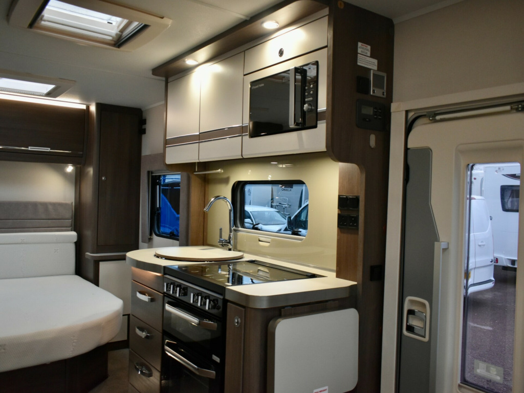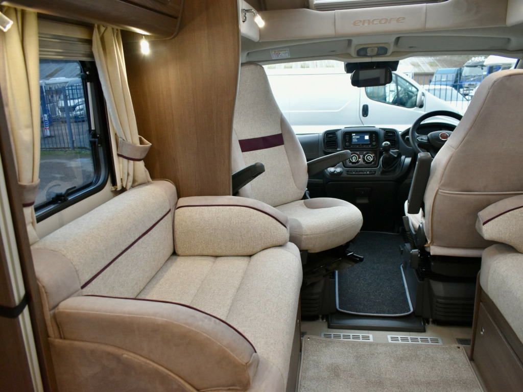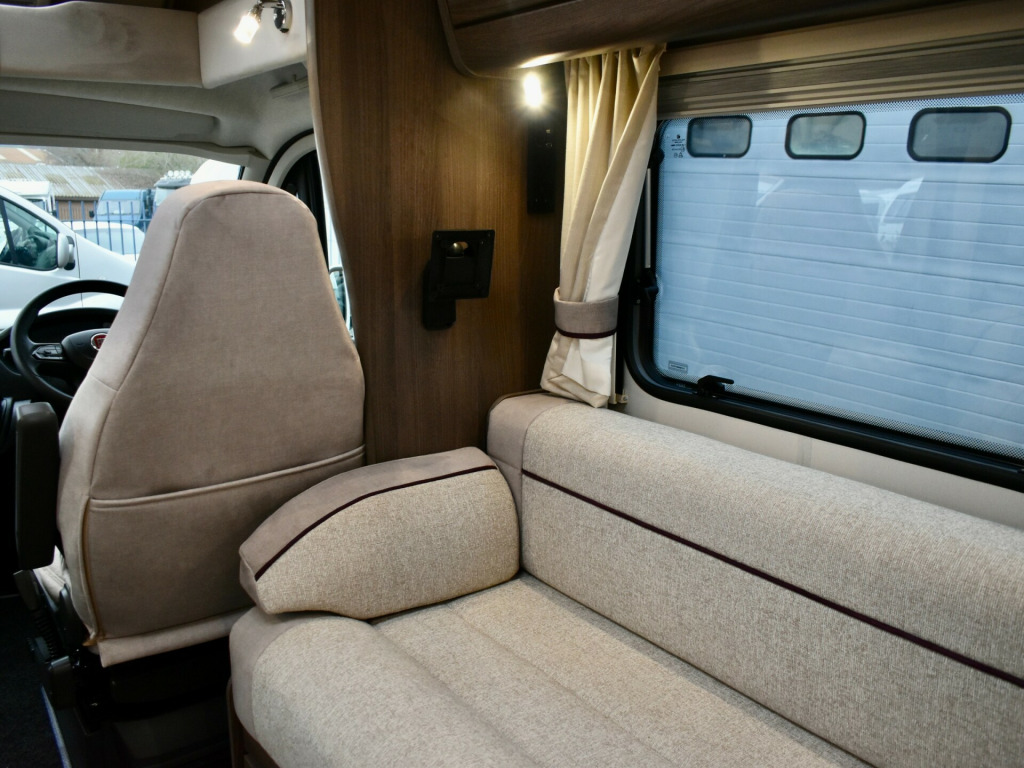 berth, 4 seat belts, 6 speed, air conditioning, alde heating, alloy wheels, awning, blinds, curtains, dab radio, electric windows, external 12v socket, external 230v power socket, fly screens, fridge freezer, grill, internal spotlights, island bed, led lights, leisure battery, low mileage, mains hook-up, microwave, on board water, oven, power sockets, rear parking camera, removable table, removeable carpets, sink, swivel seats, toilet, tv aerial, tv bracket, usb points, wardrobe