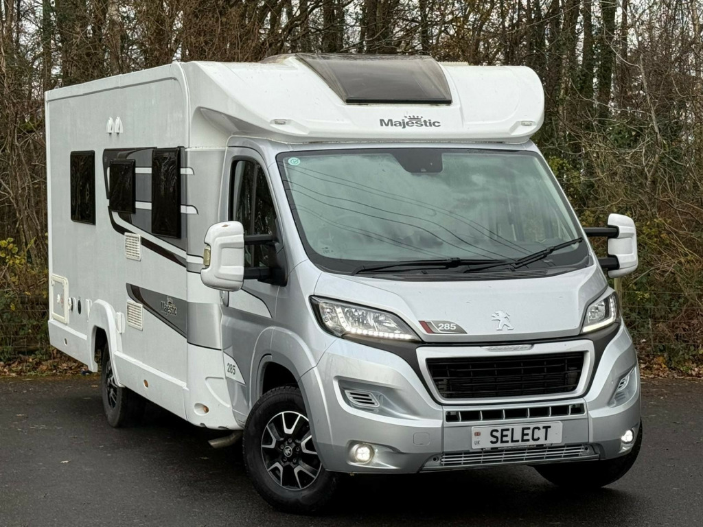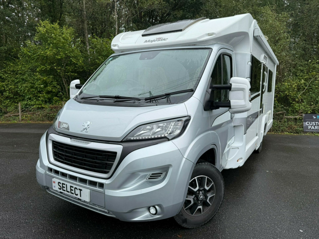 Embark on your next adventure in comfort and style with this beautifully maintained 2019 Elddis Majestic 285 Motorhome, packed with premium features that elevate every journey. Designed for ultimate touring freedom, this 4-berth motorhome offers a spacious, modern interior with twin single beds and a lounge that convert into a luxurious double. Whether you're chasing coastal sunrises or escaping to the mountains, the Majestic 285 delivers comfort, reliability, and class-leading craftsmanship - all built on the powerful and dependable Peugeot Boxer chassis.This model comes fully loaded with high-spec extras rarely found in one package: a towbar for added versatility, solar panel for off-grid capability, air suspension for a smooth ride, and a wind-out awning to create the perfect shaded outdoor space. You'll also enjoy the convenience of an external shower point - ideal for beach days or muddy boots - as well as a category 1 alarm system for added security and peace of mind. With low mileage and a full service history, this Elddis Majestic 285 is ready for the road - all it needs is you. r conditioning, bluetooth connection, satellite navigation, cassette toilet, fixed bed, hand basin, rear washroom, shower, wardrobe, 4-burner hob, extractor, fridge freezer, grill, microwave, oven, side kitchen, sink/drainer, 3 point seatbelts, air conditioning, alarm, central locking, electric windows, park assist camera, power steering, cruise control, parking camera, power steering, trip computer, multiple airbags, service indicator, tyre pressure monitor, alarm cat 1, central locking, immobiliser, electric mirrors, electric windows, bluetooth enabled stereo, cd player, radio, steering wheel audio controls, tv directional aerial, front armrest, front head restraints, alloy wheels, body coloured bumpers, colour coded body, solid paint, towbar - fixed, air suspension, alde heating system, awning, cab air conditioning, cat 1 alarm, cruise control, ext shower point, fitted microwave, maxifan, rear view camera, refillable lpg, solar panel, swivel captain chairs, toilet & shower, tv bracket, tv ready, fixed towbar