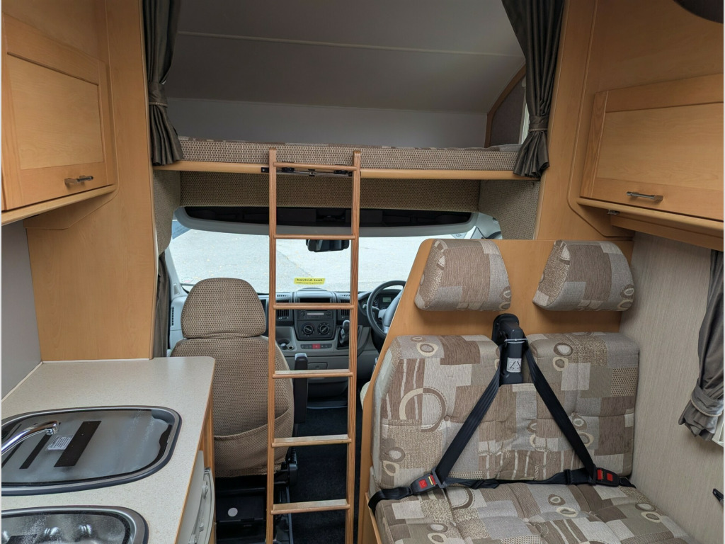 This 2009 Elddis Autoquest 180 is a 6 berth, 6 belt motorhome with beds that can be made at the front and rear.There is a central side dinette, with a seating and dining area that can be converted into a double bed, and a spacious U-shaped lounge at the rear of the motorhome which has large windows, and converts into another large double bed. A further double bed is located above the cab, accessible by a ladder and with a safety net.Located opposite the dinette, there is a well equipped kitchen that includes a hob, grill, oven, and fridge and the central washroom has a toilet, basin, and shower. This vehicle can be viewed at our West Sussex branch located in Ashington on the A24. To book a viewing please call our sales team on 01903 893666For your complete peace of mind all our motorhomes are finance and HPI checked, have a full service and PDI and include up to 12 months in-house warranty.We also give you a dedicated one-to-one handover to show you how it all works and a full tank of fuel.Sussex Caravan and Motorhome Centre is a family owned, multi-award winning dealership including Practical Caravan Gold Supplying Dealer and FEEFO Platinum Trusted Service Award. Proudly celebrating over 35 years in business. volt charger, 230v socket, 3 burner hob, 6 belts, 6 berth, bike rack, canopy, carpets, curtains, driver airbag, fridge, grill, loose fit carpets, over cab bed, reverse camera, shower, side dinette, thetford cassette toilet, tow bar, tv aerial, worktop extension