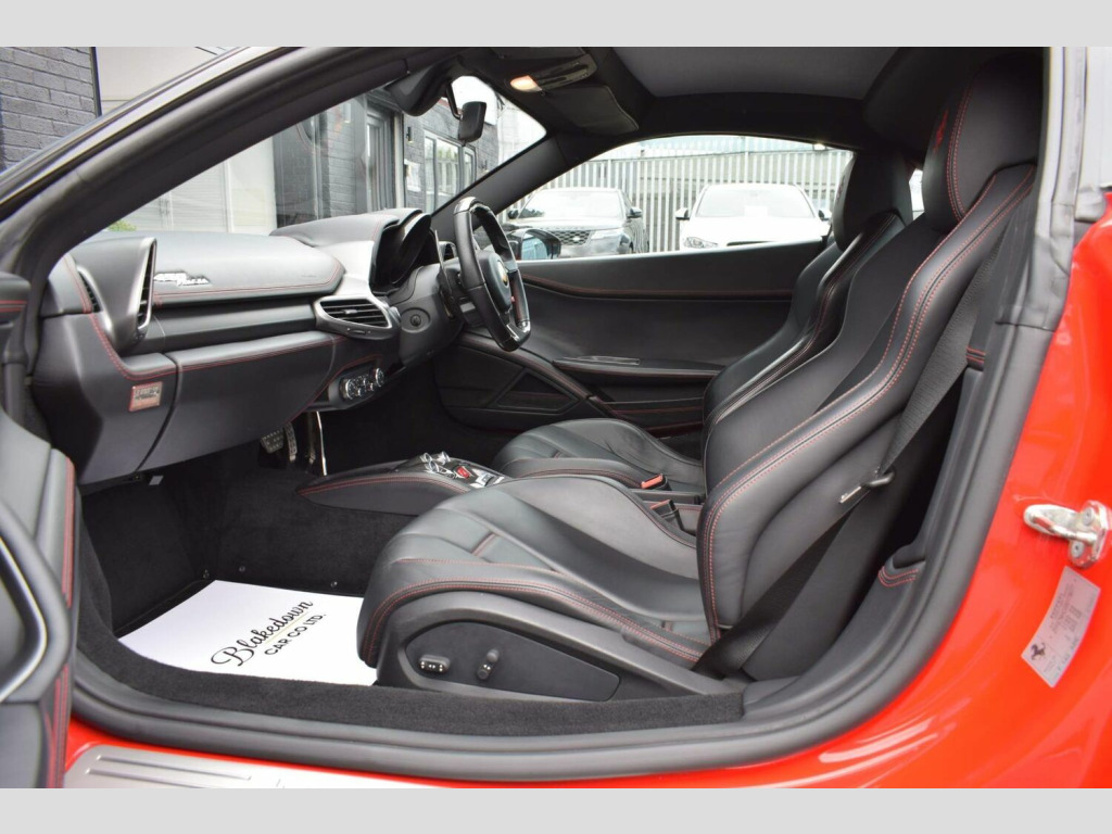 2011 11 Ferrari 458 4.5 Italia F1 DCT Coupe finished Rosso Corsa with Nero Black leather interior, Nero Black carpets and Rosso Corsa contrast stitching. 35800 miles covered and backed up with stamped main dealer history totalling 10 stamps. Last serviced by Greypaul Ferrari Birmingham in February 2022 on 35304 miles. This 458 is boasting an exceptional spec with a long list of options fitted including: Front Suspension Lift System, AFS - Advanced Front Lighting System Headlights, Carbon Fibre Driver Zone and Steering Wheel with LEDs, Scuderia Ferrari Shields on Front Wings, Satellite Navigation System, Rosso Corsa Brake Callipers, Electric Seats, iPod Connection, Front and Rear Parking Sensors, Sports Sill Cover, Yellow Rev Counter, Colour Upon Request for Standard Stitching and TPTMS - Tyre Pressure and Temperature Monitoring System. Presented beautifully inside and out with well preserved bodywork, immaculate interior and unblemished, freshly powdercoated alloys with brand new centre caps. This car is mechanically standard but benefits from a gloss black contrast wrapped roof and wing mirrors. Supplied with two keys, handbooks and all correct documentation etc and a tracker system has been fitted ready for the next keeper to activate.