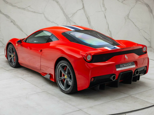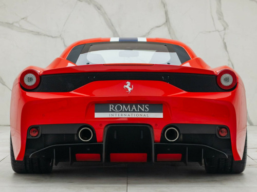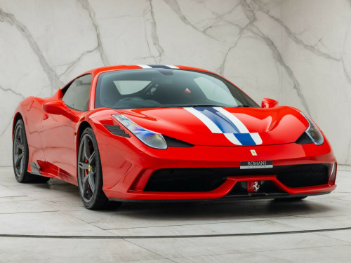 This 2014 Ferrari 458 4.5 Speciale F1 DCT Euro 5 2dr Coupe is currently available for £369,950 in Surrey with Petrol engine and Automatic gearbox. For more information or to arrange a viewing, click here to send us an email using form below.