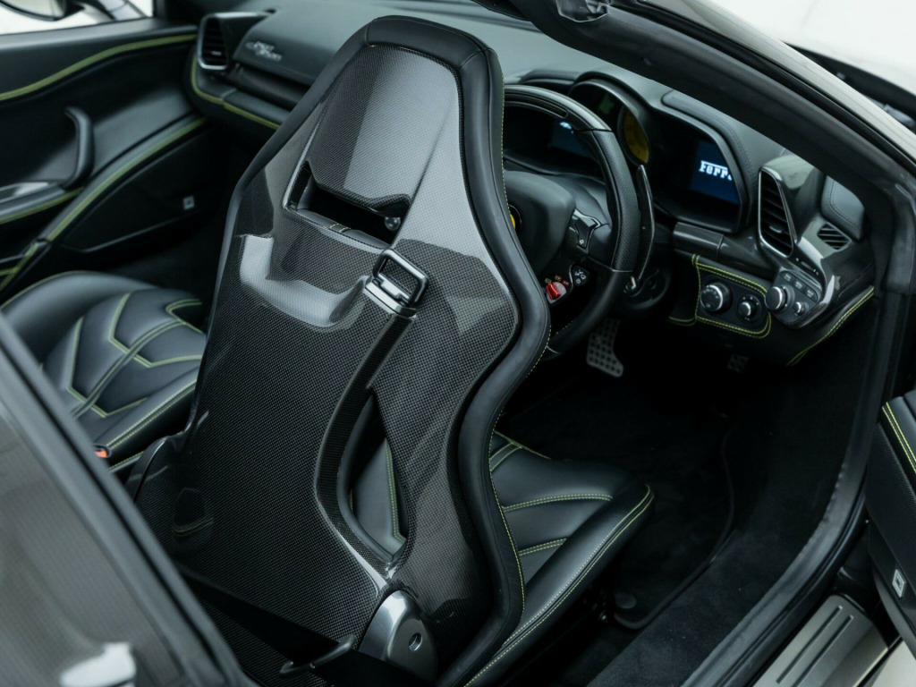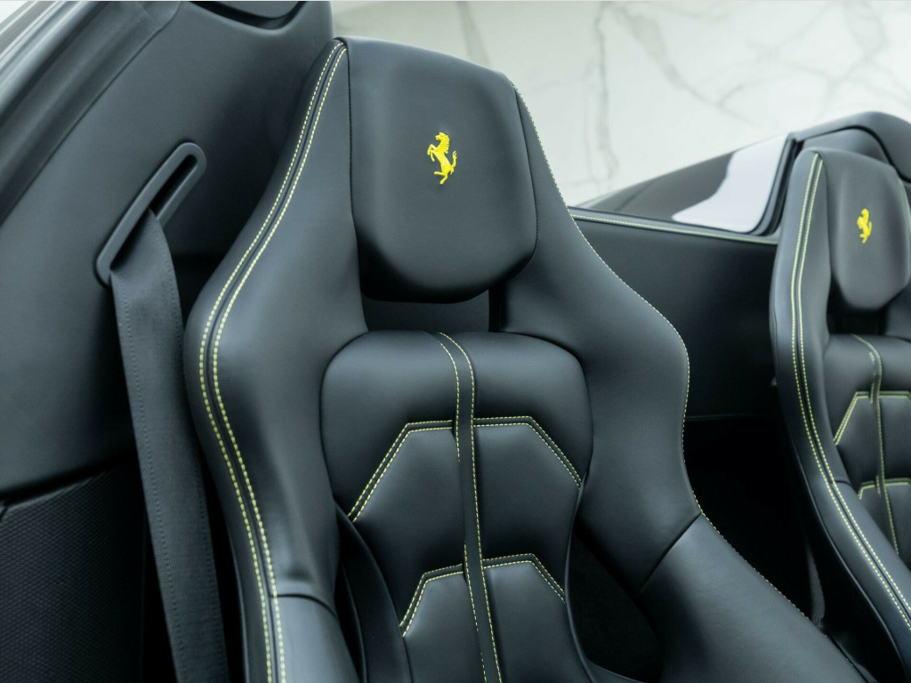 Finished in Nero Daytona Paint with Nero Leather - Desirably Equipped with Carbon Fibre Racing Pack & Carbon Fibre Racing Seats - Full Ferrari Service History - Supplied with Romans International Platinum Warranty - Paint Protection Film (PPF) Applied to Whole Car - UK SuppliedOptional Extras:20-Inch Sports WheelsNero Daytona PaintCarbon Fibre Racing SeatsCarbon Fibre Front SpoilerCarbon Fibre Rear PillarsRacing Pack in Carbon Fibre Including: Steering Wheel & LEDs + Driver Zone Surround + Dashboard Inserts + Centre TunnelAdaptive Frontlight SystemSuspension LifterJBL High Power Hi-Fi SystemSatellite Navigation with BluetoothFront and Rear Parking SensorsRear Parking CameraInternal & External Electrochromic MirrorsTyre Temperature and Pressure Monitoring System (TPMS)Ready-Kit for Use of iPod'Scuderia Ferrari' Shields on FendersNero Leather with Yellow StitchingNero Leather HeadlinerCavallino Stitched on Headrests in YellowYellow Tachometer Dial FaceGiallo Modena Brake CalipersPaint Protection Film (PPF) Applied to Whole CarStandard Features:Bi-Xenon Headlamps With LED Position & Direction LightCarbon Ceramic Brake System (CCM)Dual Zone Air ConditioningE-Diff3Electrically Operated Convertible RoofF1-TracHi-Fi System with BluetoothNIT Racing Instrument PanelRace Manettino SwitchSCM2 (MagneRide Shock Absorber System). 20-Inch Sports Wheels, Nero Daytona Paint, Carbon Fibre Racing Seats, Carbon Fibre Front Spoiler, Carbon Fibre Rear Pillars, Racing Pack in Carbon Fibre (Including: Steering Wheel & LEDs + Driver Zone Surround + Dashboard Inserts + Centre Tunnel), Adaptive Frontlight System, Suspension Lifter, JBL High Power Hi-Fi System, Satellite Navigation with Bluetooth, Front and Rear Parking Sensors, Rear Parking Camera, Internal & External Electrochromic Mirrors, Tyre Temperature and Pressure Monitoring System (TPMS), Ready-Kit for Use of iPod, 'Scuderia Ferrari' Shields on Fenders, Nero Leather with Yellow Stitching, Nero Leather Headliner, Cavallino Stitched on Headrests in Yellow, Yellow Tachometer Dial Face, Giallo Modena Brake Calipers, Paint Protection Film (PPF) Applied to Whole Car.
