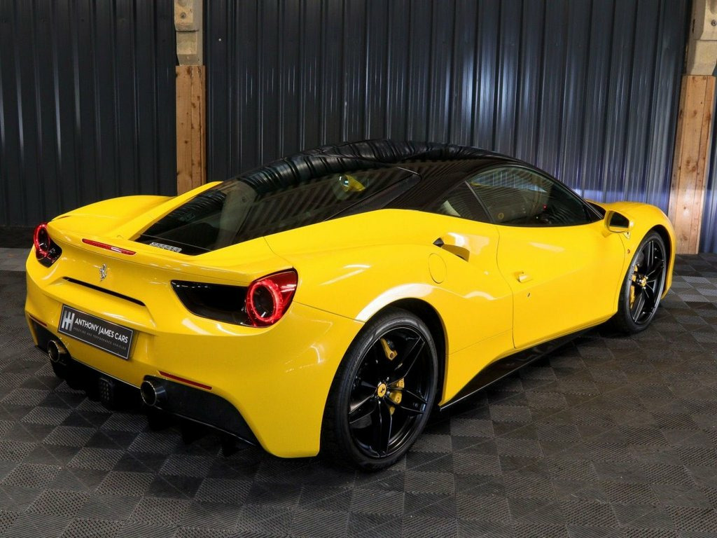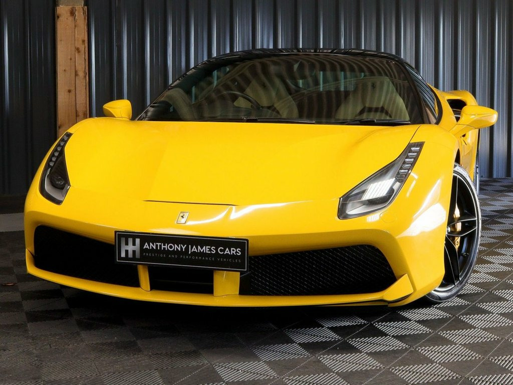 Achingly beautiful 2017 Ferrari 488GTB, melding remarkable levels of performance, comfort with unflappable handling. Specification includes full Electric seats in Crema with Prancing Horse Stitched headrest, Navigation, DAB audio, Scuderia Ferrari Shields, Yellow Brake Calipers, Yellow Rev Counter. Originally Nero Black, this wonderful example was professionally wrapped in Yellow vinyl for promotion purposes, and it really makes the exotic colour work with its Nero Black roof, forged Nero Black wheels with Yellow calipers. With 661bhp and 560lb ft of torque, the 488 does the supercar thing with considerable ease, 62mph arrives in 3.0 seconds and will go beyond 205mph. Iconic Ferrari glamour and the expected brilliance of a drive, so much so that Car Magazine said, "Ferrari have produced an automotive masterpiece." Full Ferrari Service history as below 01/05/2018 @ 1105 miles Maranello Egham 25/04/2019 @ 1480 miles Maranello Egham 08/06/2020 @ 3409 miles Maranello Egham 23/04/2021 @ 4501 miles Maranello Egham 09/05/2022 @ 8622 miles Ferrari Swindon 10/04/2023 @10,047 miles HR Owen Ferrari London 15/02/2024 @ 11,825 miles Meridian Modena Ferrari 22/05/2025 @ 12,484 miles GVE London Full Electric Seats, Yellow Rev Counter, 20in Alloy Wheels - Painted Forged Rim, 20in Alloy Wheels - Standard Base Rim, ABS - Anti-Lock Braking System, ASR System, Airbag - Driver, Airbag - Passenger, Airbag - Side, Anti-Theft Satellite System NVT1 (1 Year, Bi-Xenon Headlights, CCM - Carbon-Ceramic Brake System, CST - Control for Stability and Traction, Car Protection Cover, Cruise Control, Daytime Running Lights, Dual Zone Air Conditioning System, E-Diff3 - Evolution of Electronical Diff, Electric Heated Side Mirrors, Electric Windows - Front, Emergency Kit to Repair Tyre Punctures, Engine Start Button on Steering Wheel, F1-Trac - Traction Control System, FNEN Satellite Navigation - Cruise