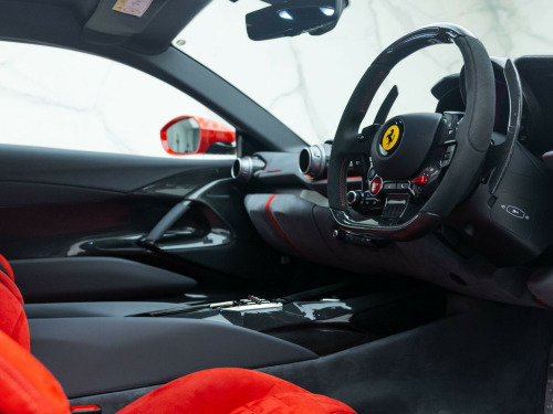 Finished in Rosso Cina 2-Layer Special Paint (£22,560) with Charcoal & Rosso Alcantara & Leather - Highly Sought After 'Competizione', 1 of Just 999 Worldwide - 1 Owner From New - Desirably Equipped with Airbrushed Scuderia Shields (£8,160) & Livery (£8,640) - Ferrari Manufacturer’s Warranty until June 2027 - Ferrari 7 Year Servicing Plan until June 2030 - Paint Protection Film (PPF) Applied to Whole Car - UK SuppliedOptional Extras:20-Inch Painted Forged WheelsRosso Cina 2-Layer Special PaintAirbrushed Scuderia ShieldsDreamline on Side of Front Spoiler in Carbon Fibre, Sill & Rear Diffuser (6mm Wide) in Argento NurburgringLivery on Boot & Carbon Fibre Front Blade in Argento NurburgringCarbon Fibre Rear DiffuserCarbon Fibre Front Air VentsCarbon Fibre Underdoor CoverCarbon Fibre Upper Part of Centre ConsoleCarbon Fibre Dash InsertsCarbon Fibre Instrument CoverCarbon Fibre Inner Door HandleCarbon Fibre Parcel ShelfAdaptive Headlights with SBL FunctionSuspension LifterPassenger DisplayJBL High Power Hi-Fi SystemFront & Rear Parking CamerasRacing Seat LifterApple CarPlayAtelier CarHeat Insulating WindscreenKickplate with New Atelier Logo - 'Personalized with Ferrari' - in Argento Nurburgring with Horizontal Stripe in Rosso CinaRosso Alcantara Full SeatsChecked Racing SeatsCharcoal Leather UpholsteryColoured Steering Wheel in Black with Red ThreadSteering Wheel Grips in Nero AlcantaraInner Details in Rosso & Charcoal AlcantaraCharcoal Alcantara Interior CarpetDedication Plate in SilverCavallino Stitched on Headrests in CharcoalColoured Special Stitching in Charcoal on Rosso Seats, Rosso Thread on Charcoal LeatherBlack Rev CounterColoured Mats with LogoPirelli Colour Edition Tyres in GrigioYellow Brake CalipersPaint Protection Film (PPF) Applied to Whole Car. 20-Inch Painted Forged Wheels, Rosso Cina 2-Layer Special Paint, Airbrushed Scuderia Shields, Dreamline on Side of Front Spoiler in Carbon Fibre, Sill & Rear Diffuser (6mm Wide) in Argento Nurburgring, Livery on Boot & Carbon Fibre Front Blade in Argento Nurburgring, Carbon Fibre Rear Diffuser, Carbon Fibre Front Air Vents, Carbon Fibre Underdoor Cover, Carbon Fibre Upper Part of Centre Console, Carbon Fibre Dash Inserts, Carbon Fibre Instrument Cover, Carbon Fibre Inner Door Handle, Carbon Fibre Parcel Shelf, Adaptive Headlights with SBL Function, Suspension Lifter, Passenger Display, JBL High Power Hi-Fi System, Front & Rear Parking Cameras, Racing Seat Lifter, Apple CarPlay, Atelier Car, Heat Insulating Windscreen, Kickplate with New Atelier Logo - 'Personalized with Ferrari' - in Argento Nurburgring with Horizontal Stripe in Rosso Cina, Rosso Alcantara Full Seats, Checked Racing Seats, Charcoal Leather Upholstery, Coloured Steering Wheel in Black with Red Thread, Steering Wheel Grips in Nero Alcantara, Inner Details in Rosso & Charcoal Alcantara, Charcoal Alcantara Interior Carpet, Dedication Plate in Silver, Cavallino Stitched on Headrests in Charcoal, Coloured Special Stitching in Charcoal on Rosso Seats, Rosso Thread on Charcoal Leather, Black Rev Counter, Coloured Mats with Logo, Pirelli Colour Edition Tyres in Grigio, Yellow Brake Calipers, Paint Protection Film (PPF) Applied to Whole Car.