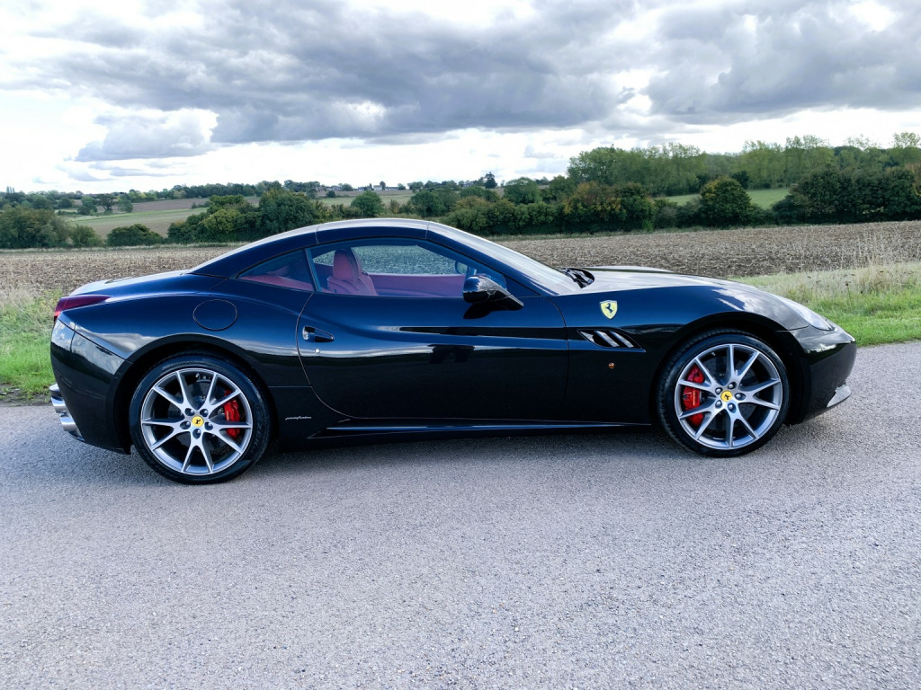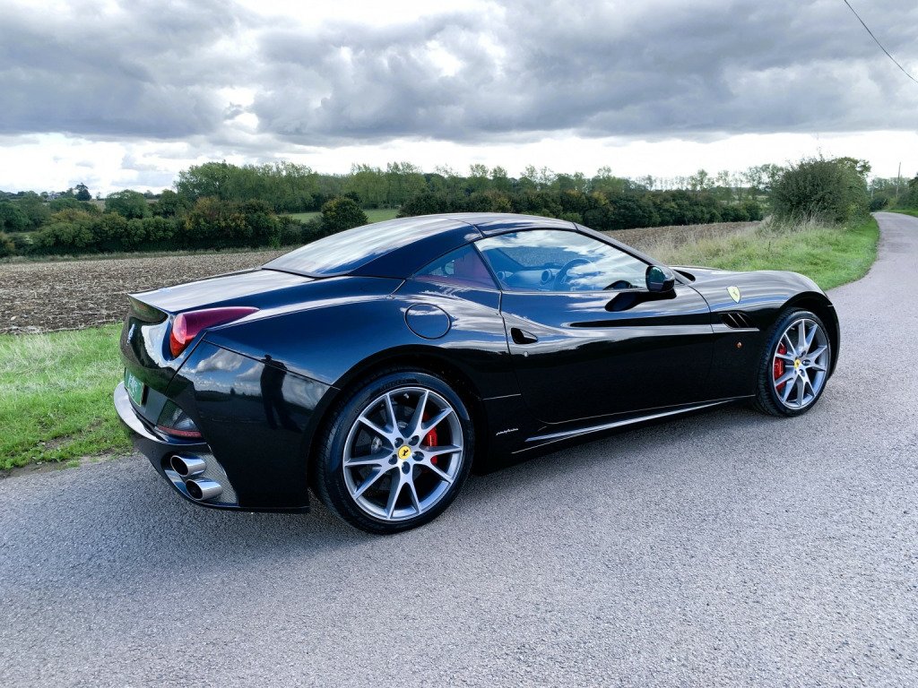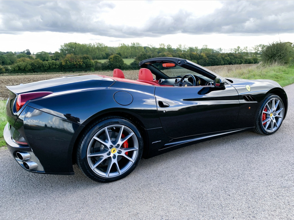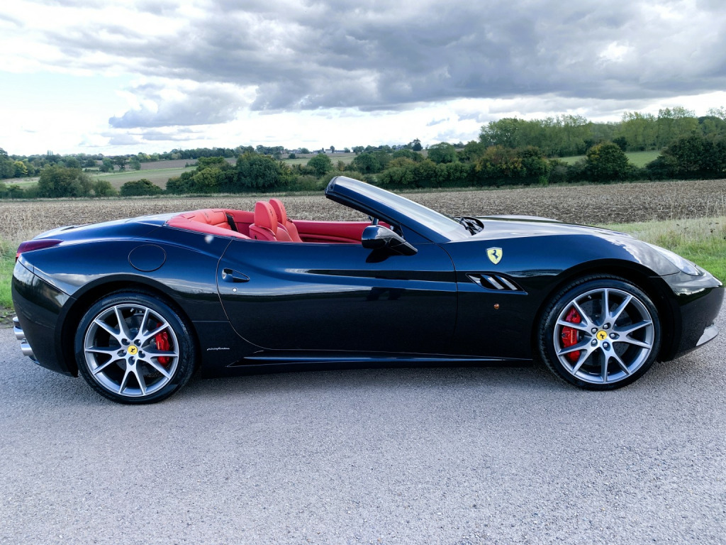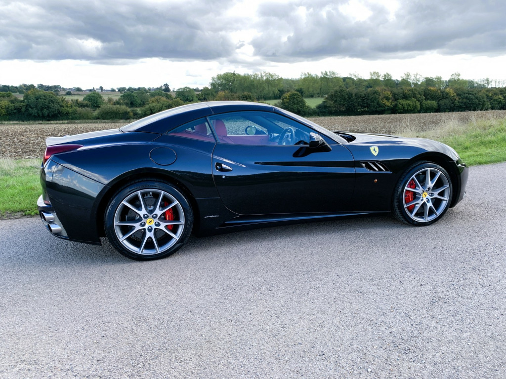 The California is a fast road car and perhaps more important one that is easy to drive. Ferraris first application of a seven-speed dual-clutch gearbox is entirely successful. In automatic, the shifts are well timed and smooth and theres plenty of control in manual mode, too. Add to that the roof of California is one of the slickest, consisting of two rather than three key roof sections, which makes it more compact to stow than a three-piece roof. , This California is the later 30 model with 30bhp more than the original and 30kg lighter too so delivers a handy 482bhp, improved Torque of 372lb ft and a 0-62mph of 3. 8sec. , The specification includes:, -Red brake calipers, -Carbon fibre driver zone, -Carbon fibre dashboard inserts and central bridge, -Special handling package, -Scuderia wing badges, -Diamond stitching with contrast blaxk stitching, -Parking camera, -Front & rear parking sensors, -20 Diamond finished alloys, -Yellow Rev Counter, -High power HiFi, , The car has 8 Ferrari maintenance stamps