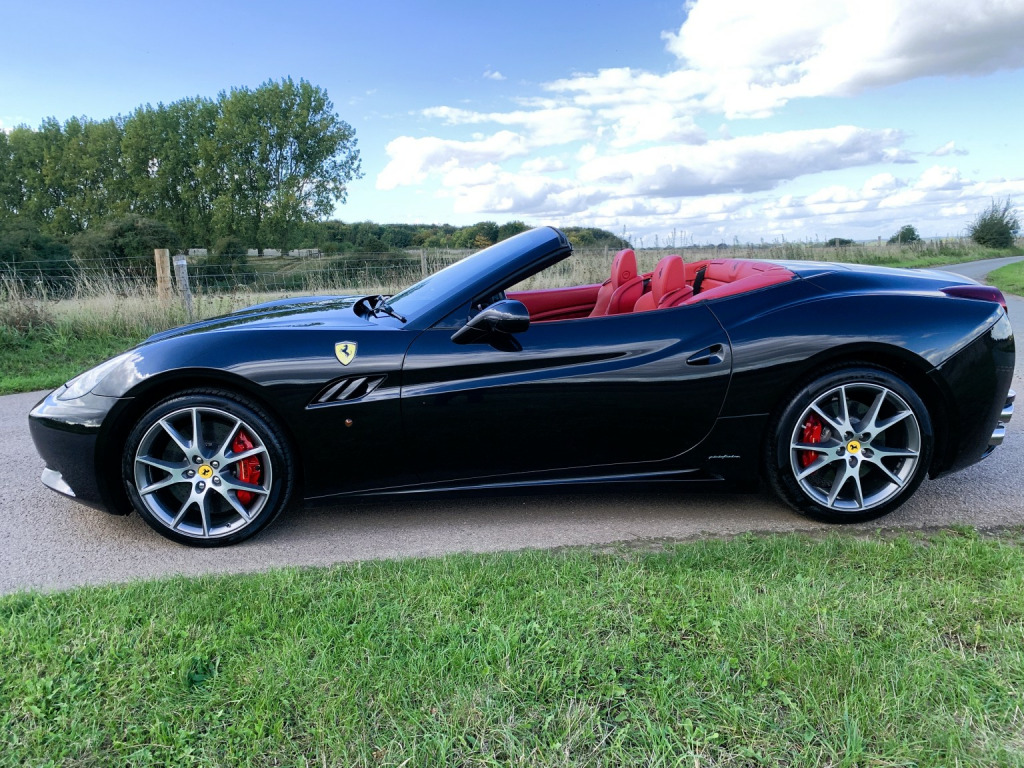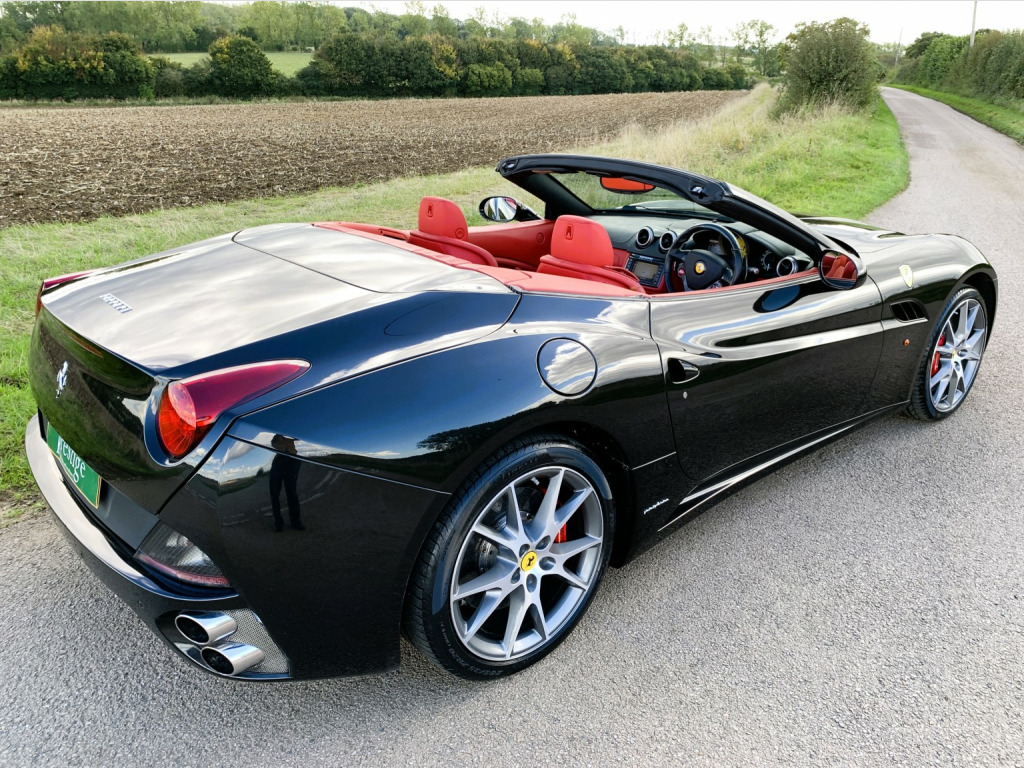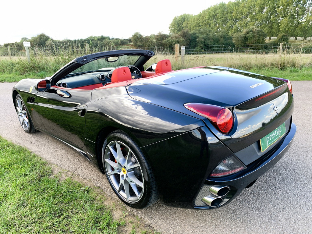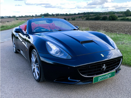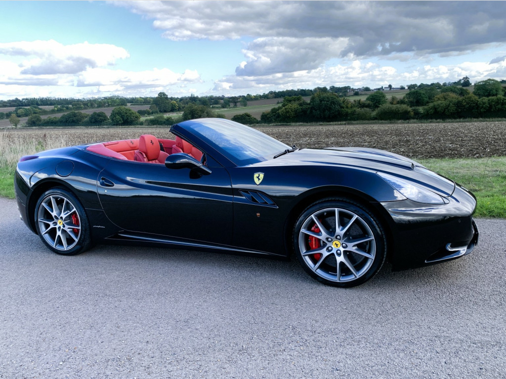 The California is a fast road car and perhaps more important one that is easy to drive. Ferraris first application of a seven-speed dual-clutch gearbox is entirely successful. In automatic, the shifts are well timed and smooth and theres plenty of control in manual mode, too. Add to that the roof of California is one of the slickest, consisting of two rather than three key roof sections, which makes it more compact to stow than a three-piece roof. , This California is the later 30 model with 30bhp more than the original and 30kg lighter too so delivers a handy 482bhp, improved Torque of 372lb ft and a 0-62mph of 3. 8sec. , The specification includes:, -Red brake calipers, -Carbon fibre driver zone, -Carbon fibre dashboard inserts and central bridge, -Special handling package, -Scuderia wing badges, -Diamond stitching with contrast blaxk stitching, -Parking camera, -Front & rear parking sensors, -20 Diamond finished alloys, -Yellow Rev Counter, -High power HiFi, , The car has 8 Ferrari maintenance stamps