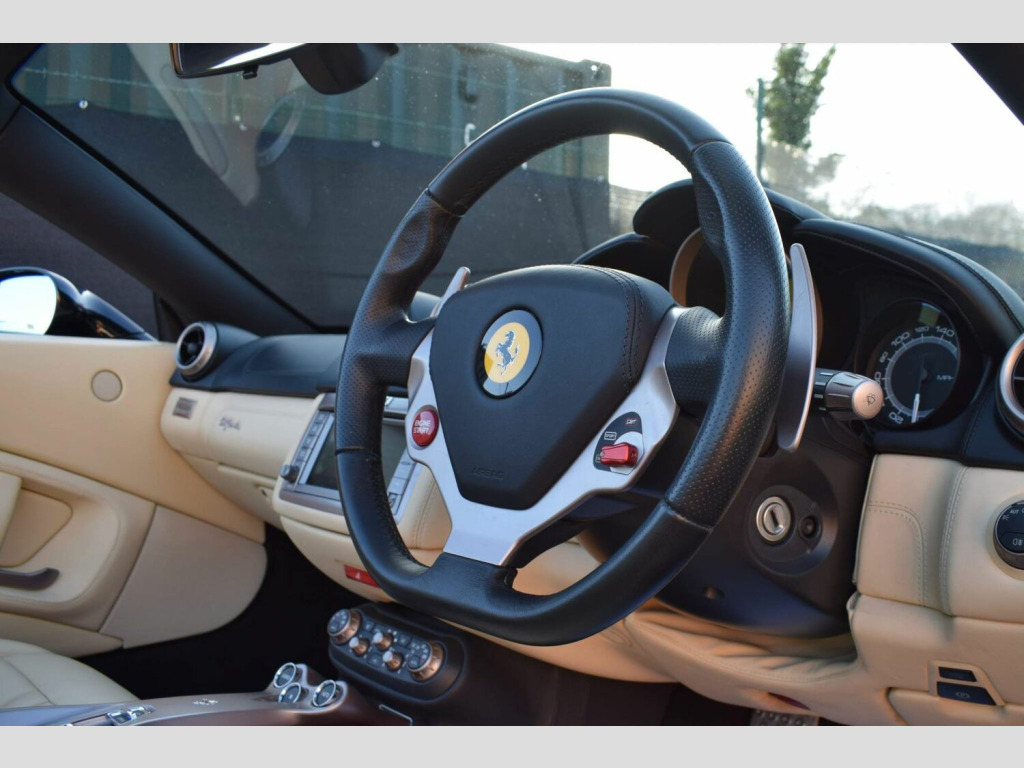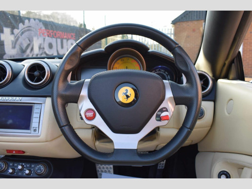2011 61 Ferrari California 4.3 F1 DCT finished in Nero Daytona with Crema leather interior. 18800 miles covered by 4 owners and backed up with stamped main dealer service history. The next service will also be completed by a specialist ready for the next owner. This California is boasting a fantastic spec with a host of options fitted including: Daytona Style Front Seats, Daytona Style Rear Seats, Brake calipers - Yellow, iPod Connection, Scuderia Ferrari shields, Magneride Dual Mode Shock Absorber System, Front Parking sensors, Foot Rest in Aluminium, 20in Alloy Wheels and Yellow Rev Counter. Presented beautifully inside and out with well preserved bodywork, immaculate interior and unblemished alloys. Totally standard and unmodified. Supplied with two keys and all correct documentation, handbooks etc and this car has been subjected to our usual strict pre delivery inspection and preparation process ensuring all cosmetic and mechanical elements are in good order. Please note this car is not kept permanently on site so please call in advance for any further information or to arrange a viewing.