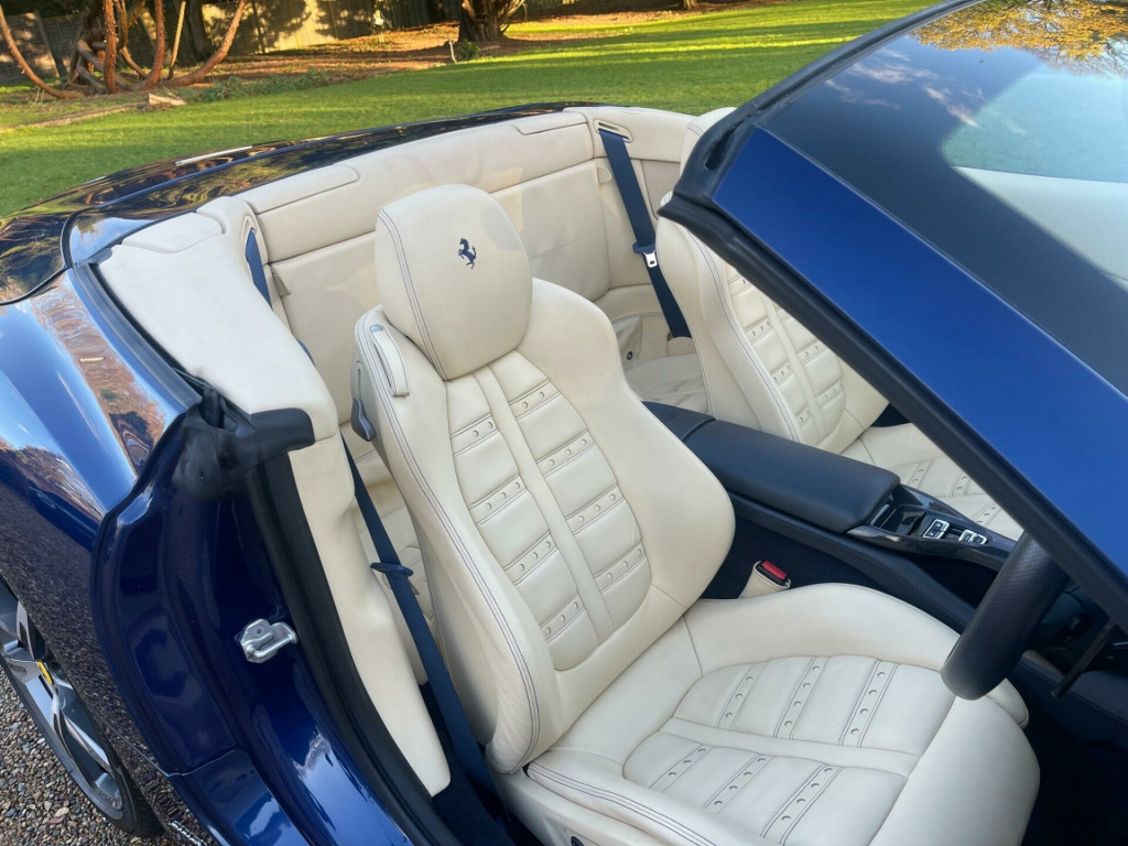 An EXCEPTIONAL RARER HANDLING SPECIALE Example with full HR Owen Ferrari service history and ONLY TWO OWNERS.........PART EXCHANGE WELCOMEBLU TDF /CREMAGIALLO MODENA CALLIPERSSCUDERIA SHIELDS20''DIAMOND FINISH RIMSSPORT GRILLE CARBON ZONE AND LEDSCARBON DASH INSERTSCARBON CENTRE CONSOLEBLU SEAT BELTSDAYTONA E /SEATSLEATHER DASHBOARD IN BLU SCUROE/SEATSHEADRESTS IN BLUGIALLO DIALCRUISE CONTROLHANDLING SPECIALEFRONT SENSORSTPMS APPLE CAR PLAY/ANDROID AUTOThis 2014 Ferrari California presents a rare find with only two owners since new, offering a unique opportunity to own a meticulously maintained example of Italian automotive excellence. Powered by a potent 4.3L V8 petrol engine, this California, in its 30 trim and V8 30 variant, delivers exhilarating performance with a rapid 0-62mph acceleration time of just 3.8 seconds. The car is further enhanced by the Handling Speciale Package, ensuring a dynamic and engaging driving experience. Inside, you will find the thoughtful touch of colour upon request for special stitching, Giallo Modena brake callipers adding a vibrant accent, and the iconic embroidered Prancing Horse on the headrests. Comfort is assured with the dual zone air conditioning system, complete with climate control, making every journey a pleasure.Beyond its impressive performance figures, this Ferrari California boasts a surprisingly large boot space, making it a practical choice for weekend getaways or even everyday use. The inclusion of the Handling Speciale Package signifies a superior level of agility and responsiveness compared to standard models, providing a more connected feel to the road. The specific colour choice for the special stitching and the striking Giallo Modena brake callipers are subtle yet distinctive details that set this vehicle apart, showcasing a level of personalisation often sought after by discerning owners. Combined with its low owner count and the inherent prestige of the Ferrari marque, this California represents a compelling proposition for those seeking both thrilling performance and refined usabili uise control, front parking sensors, 20in alloy wheels - diamond finished sport rim, giallo modena brake callipers, scuderia ferrari shields on front wings, carbon fibre driver zone, carbon fibre driver zone and steering wheel with leds, colour upon request for special stitching, daytona style seats, daytona style for rear seats, dual colour interior - blu medio (reflective leather)/crema, embroidered prancing horse on headrests, leather - crema, yellow rev counter, handling speciale package, 19in alloy wheels - painted, 6.5in touch screen, abs - anti-lock braking system, airbag - retractable driver, airbag - retractable front passenger, anti-theft satellite system (1 year subscription from new), battery conditioner, battery maintainer, bi-xenon headlights, bluetooth, ccm - carbon-ceramic brake system, cd-radio, cst - control for stability and traction, car protection cover, daytime running lights, dual zone air conditioning system, electric hand brake, electric heated side mirrors with automatic closure, electric speed sensitive power assisted steering, electric steering wheel adjustment, electric windows - front, emergency kit to repair tyre punctures, engine start button on steering wheel, f1-trac - traction control system, full electric seats, headlight cleaning system, heated front seats, infotelematic system, integrated anti-theft alarm, key with transponder, launch control, lighting sensor, lockable glove compartment, lumbar support adjustment, maps navigation, race manettino - integrated command for control of vehicle set up on steering wheel manettino, rain sensor-activated windshield wipers, rear lights with leds, remote control locking, remote control for opening tailgate, retractable roll bar, retractable side airbag on door panel for head protection, seats - passenger front electric, tptms - tyre pressure and temperature monitoring system, usb connection on dashboard