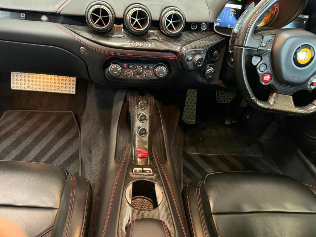 FULL PPF FRONT LIFT FULL INTERIOR CARBON PASSENGER DISPLAY FULL FERRARI HISTORY This 2015 Ferrari F12 Berlinetta, a V12 variant, offers an exceptional driving experience. Powered by a formidable 6.3 litre petrol engine, this model boasts impressive acceleration, reaching 0-62mph in a mere 3.1 seconds. It comes equipped with a front parking camera featuring dual view and parking assistance, a passenger display for shared enjoyment, and a striking carbon fibre driver zone and steering wheel complete with LEDs. For added practicality, it includes a front suspension lift system and full electric seats, ensuring both comfort and capability.The performance capabilities of this Ferrari F12 Berlinetta are truly remarkable, setting it apart from other vehicles in its class. The rapid acceleration demonstrates its potent engineering, while the advanced features enhance both the driving and passenger experience. This combination of raw power and sophisticated technology makes it a compelling choice for those seeking an extraordinary automotive masterpiece. ssenger display, hi-fi premium system, 20in alloy wheels - matt silver painted and forged, anti stone chipping protective film, privacy rear glass, scuderia ferrari shields on front wings, carbon fibre cup holder, carbon fibre for tunnel console, carbon fibre driver zone and steering wheel with leds, dashboard inserts in carbon fibre, embroidered prancing horse on headrests, full electric seats, steering wheel with leds, white rev counter, front suspension lift system, front parking camera with dual view, 20in alloy wheels, abs - anti-lock braking system, afs - advanced front lighting system headlights, airbag - driver two stage, airbag - front passenger two stage, anti-theft satellite system (1 year subscription from new), armrest, battery maintainer, bi-xenon headlights, bluetooth audio streaming, ccm - carbon-ceramic brake system, cd-radio, car protection cover, cruise control, daytime running lights, dual zone air conditioning system, e-diff3 - evolution of electronical differential, ebd - electronic brakeforce distrubution, esc - electronic stability control, electric heated side mirrors with automatic closure, electric seats, electric speed sensitive power assisted steering, electric steering wheel column, electric windows - front, emergency kit to repair tyre punctures, engine start button on steering wheel, f1 gearbox with dual clutch transmission, f1-trac - traction control system, front parking sensors, hele - high emotion low emission, headlight cleaning system, infotelematic system, integrated anti-theft alarm, key with transponder, launch control, lighting sensor, magnetorheological suspension with double solenoid control, maps navigation, outer and inner electrochromic mirrors, race manettino - integrated command for control of vehicle set up on steering wheel manettino, rain sensors, rear lights with leds, rear parking camera, rear parking sensors, remote control locking, remote control for opening tailgate, retractable side airbag on door panel for head protection, seats - passenger front electric, sports sill cover, steering wheel - leather, tptms - tyre pressure and temperature monitoring system, tilting rear shelf, usb connection