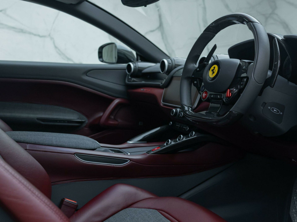 Finished in Ferrari Historical Colours Grigio Scuro Paint with Charcoal & Bordeaux Leather & Kvadrat Remix - Tailor Made Example - Very High Specification - Full Ferrari Service History - Supplied with Romans International Platinum Warranty - Paint Protection Film (PPF) Applied to Whole Car - UK SuppliedOptional Extras:20-Inch Forged Matt Black Wheels with Front Part in Matt Grigio ScuroFerrari Historical Colours Grigio Scuro PaintCarbon Fibre Front Spoiler, Front Air Vents, Underdoor Cover, Exterior Sill Kicks, Hub CapsCarbon Finish for Upper AreaCarbon Fibre Driver Zone + LEDs, Dash Inserts, Central Bridge, Handle on Centre Console (no Carbon Fibre on Door Handle)Glossy Internal & External Carbon Fibre ElementsAdaptive Headlights with SBL FunctionNovitec Exhaust (Original Comes With the Car)Suspension LifterPassenger DisplayPanoramic RoofApple CarPlayJBL Premium Hi-Fi SytemFront Parking Camera with Dual ViewTailor Made Car128GB Expansion HD‘Scuderia Ferrari’ ShieldsDreamline in Glossy Bordeaux Tintoretto Metallic on Front Spoiler, Air Vents, 2 Vertical Fins on Rear DiffuserDreamline on External Part of F1 Paddles, Upper & Lower Steering Wheel Rim in Glossy Bordeaux Tintoretto MetallicCarbon Fibre Kickplate with Tailor Made Logo in Silver & Stripe in Glossy Bordeaux Tintoretto MetallicTailor Made Logo & Ferrari Printed on Central Flap Between Rear SeatsUpholstery in Connolly Bordeaux Luxan Grain LeatherColoured Upper Dashboard in CharcoalFront & Rear Seat Panelling, Central Part of Door Panels, Front & Rear Centre Console Armrest, Front & Side of Front & Rear Headrest & Insert on Upper Part of Backrest in Kvadrat RemixFront & Rear Centre Console Panels in Charcoal LeatherUpper Part of Front & Rear Door Panels & Backrests in Charcoal LeatherUpper Part in Charcoal Coloured LeatherLower Part of Front & Rear Door Panels in Connolly Bordeaux Luxan Grain LeatherHorizontal Central Inserts on Seat Panelling in Connolly LeatherCharcoal Leather Parcel ShelfLeather Upholstery Seat BackrestsAnd More.... 20-Inch Forged Matt Black Wheels with Front Part (Same Area as Diamond-Polished Part) in Matt Grigio Scuro, Ferrari Historical Colours Grigio Scuro Paint, Carbon Fibre Front Spoiler, Carbon Fibre Front Air Vents, Carbon Fibre Underdoor Cover, Carbon Fibre Exterior Sill Kicks, Carbon Finish for Upper Area, Carbon Fibre Driver Zone + LEDs, Carbon Fibre Dash Inserts, Carbon Fibre Central Bridge, Carbon Fibre Handle on Centre Console (no Carbon Fibre on Door Handle), Carbon Fibre Hub Caps, Glossy Internal & External Carbon Fibre Elements, Adaptive Headlights with SBL Function, Novitec Exhaust (Original Comes With the Car), Suspension Lifter, Passenger Display, Panoramic Roof, Apple CarPlay, JBL Premium Hi-Fi Sytem, Front Parking Camera with Dual View, Tailor Made Car, 128GB Expansion HD, ‘Scuderia Ferrari’ Shields, Dreamline in Glossy Bordeaux Tintoretto Metallic on Front Spoiler, Air Vents, 2 Vertical Fins on Rear Diffuser & Horizontal Dreamline on Carbon Sill Trim, Dreamline on External Part of F1 Paddles, Upper & Lower Steering Wheel Rim in Glossy Bordeaux Tintoretto Metallic, Kickplate in Carbon Fibre with Tailor Made Logo in Silver & Stripe in Glossy Bordeaux Tintoretto Metallic, Tailor Made Logo & Ferrari Printed on Central Flap Between Rear Seats, Upholstery in Connolly Bordeaux Luxan Grain Leather, Coloured Upper Dashboard in Charcoal, Front & Rear Seat Panelling, Central Part of Door Panels, Front & Rear Centre Console Armrest, Front & Side of Front & Rear Headrest, Front & Rear Centre Console Panels in Charcoal Leather, Upper Part of Front & Rear Door Panels & Backrests in Charcoal Leather, Upper Part in Charcoal Coloured Leather, Lower Part of Front & Rear Door Panels in Connolly Bordeaux Luxan Grain Leather, Horizontal Central Inserts on Seat Panelling in Connolly Leather, Charcoal Leather Parcel Shelf, Leather Upholstery Seat Backrests, Charcoal Coloured Steering Wheel, Passenger Compartment Mats in Charcoal Leather, Inner Colour Door Panel Trim, Tone-on-Tone Stitching (788 Thread on Connolly Bordeaux Luxan Grain Leather & 416 Thread on Kvadrat Remix Fabric), Cavallino Stitched on Headrests in 788 Thread, Coloured Standard Stitching in Extra-Range, Speaker Grilles in Same Colour as Surrounding Material, Front & Rear Grigio Scuro Carpet Mats with Edge Trim in Connolly Bordeaux Luxan Grain Leather, Luggage Compartment Sides in Connolly Bordeaux Luxan Grain Leather, Inner Leather Inserts, Internal Aluminium Elements in Matt Grigio Scuro with Black Buttons, Aluminium Rev Counter, Matt Black Rear Diffuser, Front Grille with Chromed Edges, Black Tailpipe Tips, Satin Effect Front Cavallino & Cavallino on Hub Caps, Matt Black Rear Cavallino, Privacy Rear Windows, Paint Protection Film (PPF) Applied to Whole Car.