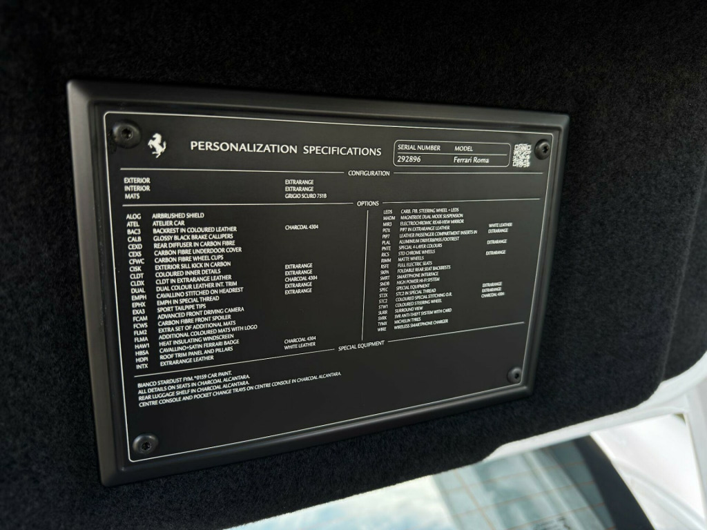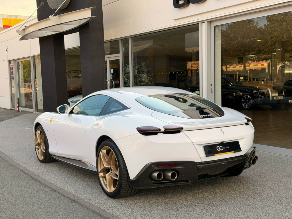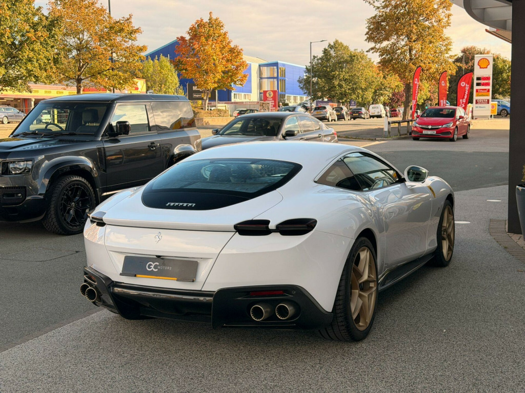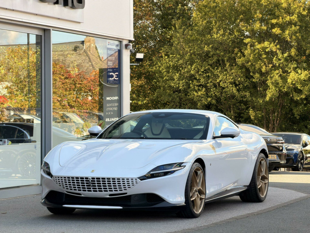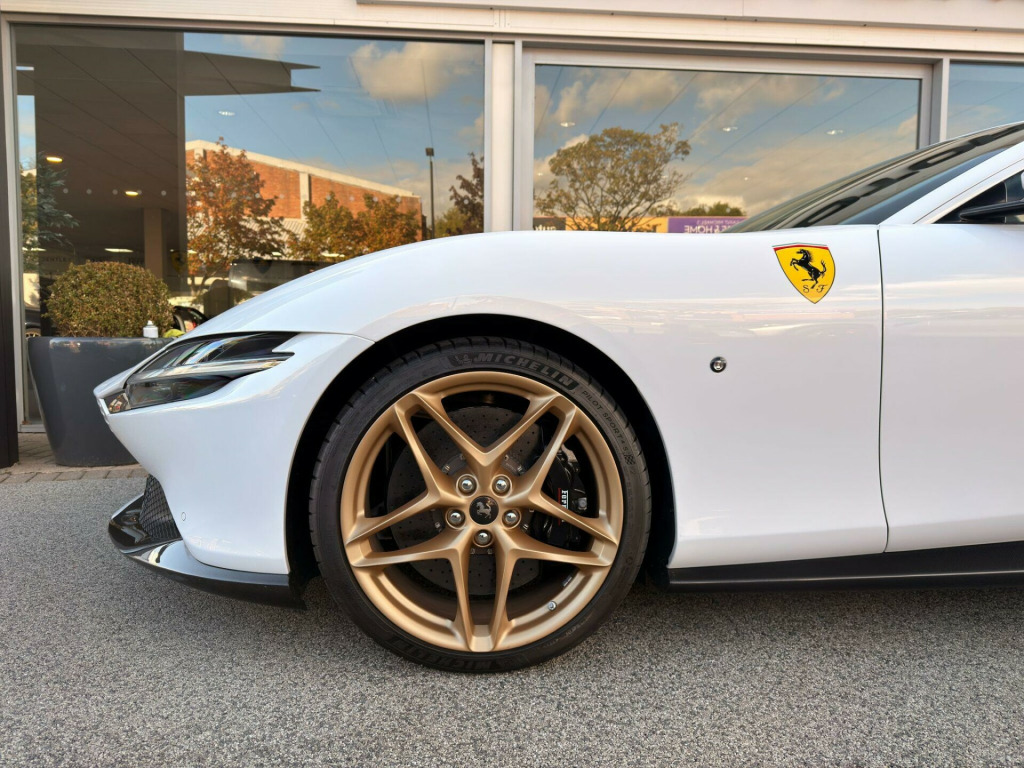 V A T Qualifying, Delivery Miles, 1 Owner Car, Roma 3.8T V8 Coupe, Over £70,000 in Factory Options. Factory Options: Extra-Campionario Special Requests (Bianco Stardust Pearlescent Paint, Airbrushed Scuderia Shields, Special Order Bianco/Charcoal Leather Interior, Satin Gold Painted Wheels, Satin Ferrari Badges, Atelier Personalised Carbon Sill Plates, Special Order Gold Stitching), Rear Diffuser in Carbon Fibre, Carbon Fibre Underdoor Cover, Two-Tone Leather Interior, JBL High Power Hi-Fi System, Surround View Camera, Colour Upon Request for Steering Wheel (Charcoal), Sport Exhaust Pipes, Carbon Fibre Front Spoiler, Magneride Dual Mode Suspension, Carbon Fibre Steering Wheel with LED, Black Brake Calipers, Charcoal Leather Interior Inserts, Exterior Sill Kick in Carbon Fibre, Leather Seats Backrest, Foldable Rear Seats Backrest, Electrochromic Rearview Mirror, Floor Mats with Embroidered Logo, Embroidered Oro Prancing Horse on Headrest, Heat-Insulating Windscreen, Aluminium Footrest, Carbon Fibre Wheel Caps. Standard Specification: Launch Control, CCM3 - Carbon-Ceramic Brake System, 20” Alloy Wheels, Electric Front Seats with Driver Memory, Heated Front Seats, F1-Trac - Traction Control System, Apple CarPlay, Reversing Camera, Electric Steering Column, Digital Driver Zone Display, Carbon Fibre Shift Paddles, Electric Folding Wing Mirrors, Bluetooth, Satellite Navigation, DAB Radio, Dual Zone Climate Control.Ferrari Warranty Until 09/2028.This car does not have a panoramic roof.All our cars are HPI clear. Please contact us for your own personal video presentation of this particular car. We offer competitive finance rates with our in-house team from PCP, lease purchase and HP. Whilst we make every effort to ensure that the specification and technical information for the cars on our website is correct, some of it is supplied by third party providers and we cannot guarantee its accuracy. It is therefore important that you do not solely rely on this information.. Launch Control, CCM3 - Carbon-Ceramic Brake System, 20” Alloy Wheels, Electric Front Seats with Driver Memory, Heated Front Seats, F1-Trac - Traction Control System, Apple CarPlay, Reversing Camera, Electric Steering Column, Digital Driver Zone Display, Carbon Fibre Shift Paddles, Electric Folding Wing Mirrors, Bluetooth, Satellite Navigation, DAB Radio, Dual Zone Climate Control, Adaptable Driving Modes, Cruise Control, Leather Headliner, Front and Rear Parking Sensors, Aluminium Pedals, Over £70,000 in Factory Options, Extra-Campionario Special Requests (See Description Below), Rear Diffuser in Carbon Fibre, Two Tone Leather Interior, High Power Hi-Fi System, Colour Upon Request for Special Stitching, Magneride Dual Mode Suspension, Sport Exhaust Pipes, Carbon Fibre Steering Wheel with LEDs, Leather Seats Backrest, Surround View, Carbon Fibre Underdoor Cover, Exterior Sill Kick in Carbon Fibre, Coloured Inner Details, Foldable Rear Seats Backrest, Carbon Fibre Wheel Cups, Embroidered Prancing Horse on Headrests, Foot Rest in Aluminium, Heat-Insulating Windscreen, Black Brake Callipers, Electrochromic Rearview Mirrors, Colour Upon Request for Interior Leather Inserts, Carbon Fibre Front Spoiler, Chrome Painted Wheels Rims, Floor Mats with Embroidered Logo.