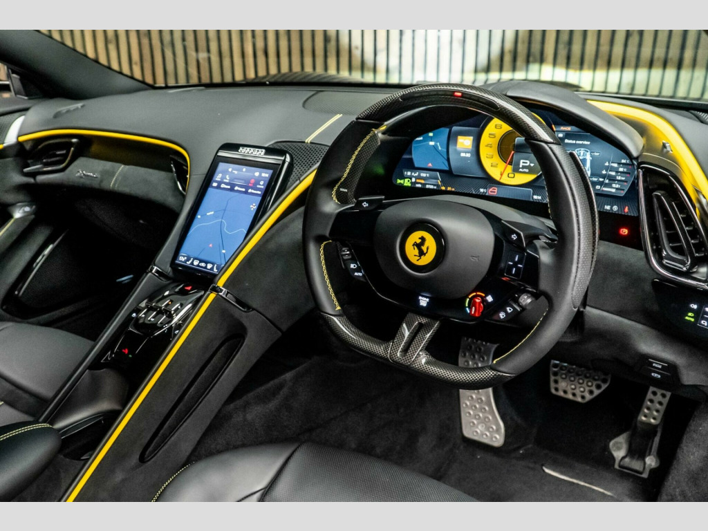 This 2023 Ferrari Roma T V8 presents an exceptional opportunity with remarkably low mileage, having covered just 3728 miles. This stunning example is powered by a potent 3.8L Petrol Engine, meeting Euro 6 emissions standards. Inside, you'll find a sophisticated Infotelematic System featuring an 8.4 inch touch screen with Maps Navigation, USB plug on the central tunnel, and Bluetooth audio streaming, complemented by a DAB radio. The driving experience is enhanced by Dual Zone Air Conditioning with climate control, and for convenience and safety, it includes Rain and Light Sensors for automatic headlights, as well as Front and Rear Parking Sensors. Full LED headlights provide excellent visibility.The performance of this Ferrari Roma is truly exhilarating, boasting an impressive 0-62mph acceleration time of just 3.4 seconds. This remarkable speed indicates a superior driving experience compared to many other vehicles in its class. The combination of its advanced technology, luxurious comfort features, and potent engine ensures that every journey is both engaging and refined.. 16in Full Digital Display Instrument Cluster, 20in Alloy Wheels, ABS and EBD - Performance Anti-Lock Braking Systems with Electronic Brakeforce Distribution, Anti-Theft System, Anti-Theft System SVR with Card, Apple CarPlay, Battery Maintainer, CCM3 - Carbon-Ceramic Brake System, Car Protection Cover, Cruise Control with Information on Instrument Panel, Dual Zone Air Conditioning System, E-Diff - 3rd Generation, EPS - Electronic Power Steering, ESC - Electronic Stability Control, Electric Heated Side Mirrors with Automatic Closure, Electric Windows - Front, Electrochromic Frameless Interior Mirror, Engine Start Touch-Button on Steering Wheel, F1-Trac - Traction Control System, Ferrari Dynamic Enhancer, Front and Rear Parking Sensors, Full Electric Seats, Full LED Headlights, ISOFIX for Rear Seats, Infotelematic System with Maps Navigation - USB Plug on Central Tunnel - 8.4in Touch-Screen - Bluetooth Audio Streaming - DAB Radio, Keyless Engine Start System, LED Tail Lights, Performance Launch Control, Pirelli Tyres, Rain and Light Sensors, Retractable Side Airbag on Door Panel, SSC - Side Slip Control 6, Two Dual-Stage Front Airbags, Tyre Repair Kit, Vehicle Dynamics Control - Manettino with 5 Settings - Wet - Comfort - Sport - Race - ESC OFF, Yellow Brake Callipers, Embroidered Prancing Horse on Headrests, Black Ceramic Exhaust Pipes, Advanced Front Driving Camera, Carbon Fibre Steering Wheel with LEDs, Scuderia Ferrari Shields on Fenders, Magneride Dual Mode Suspension, Rear Parking Camera, Foot Rest in Aluminium, Privacy Rear Windows, 20in Alloy Wheels - Forged Diamond Rims, Full Electric Seats, Foldable Rear Seats Backrest, Smart Phone Interface, Wireless Smartphone Charger, Michelin Tyres. Full service history
