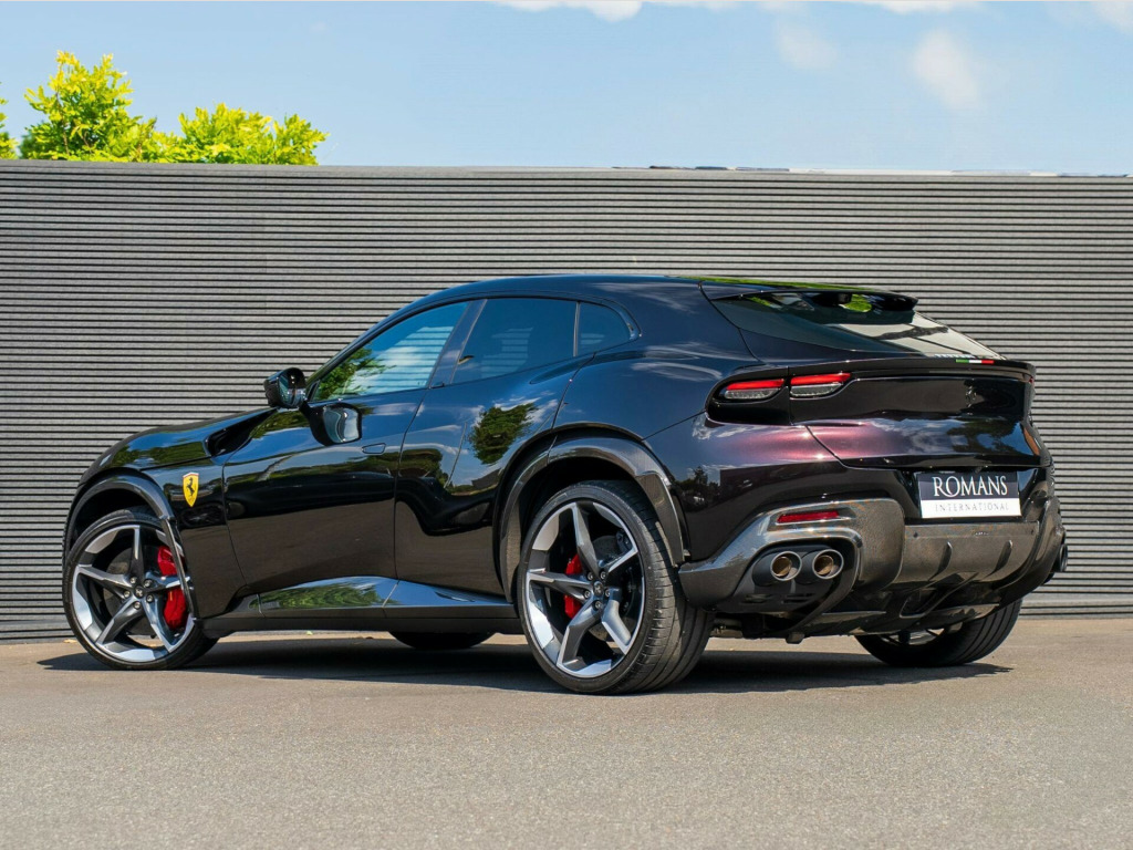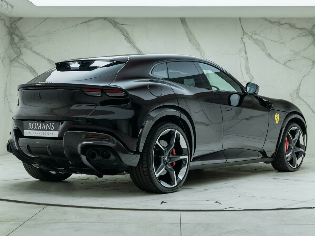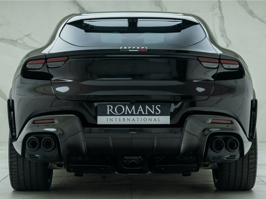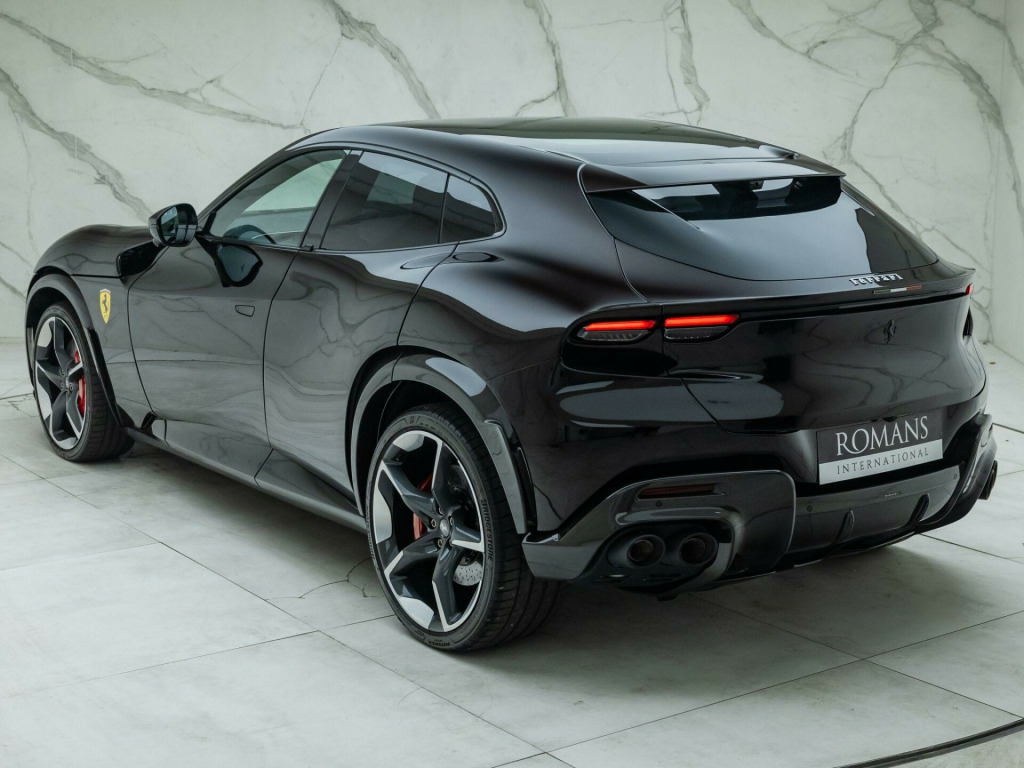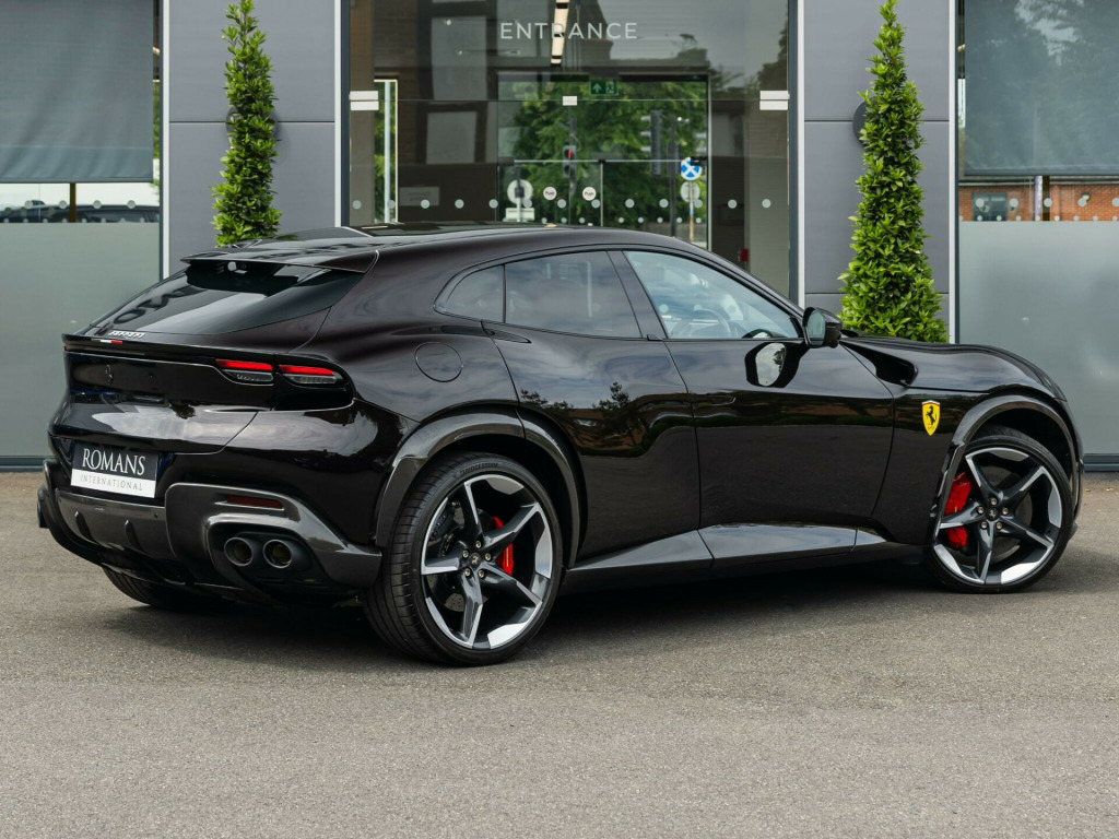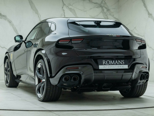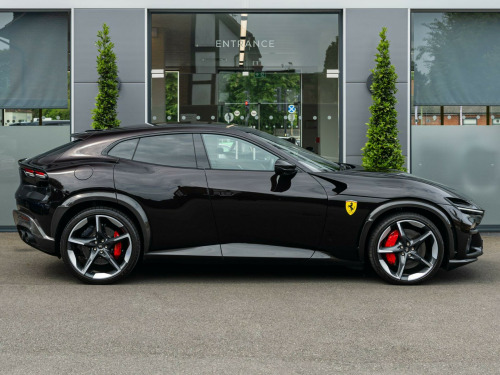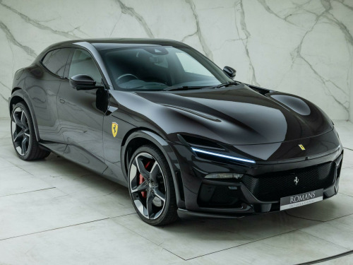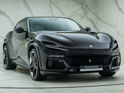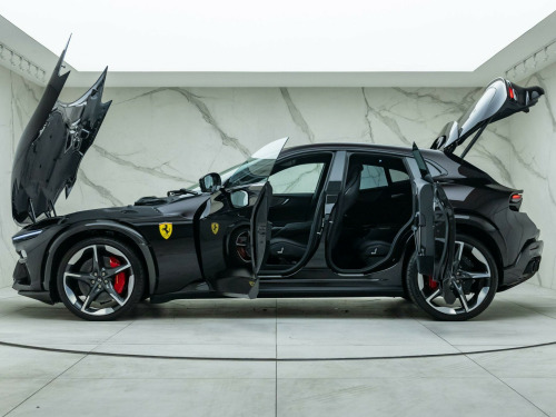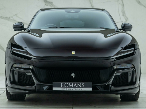 Finished in Special 'Nero Purosangue' Paint with Nero Leather - Including Panoramic Roof & Front Lift - Ferrari Manufacturer’s Warranty until April 2028 - Ferrari 7 Year Servicing Plan until April 2031 - Paint Protection Film (PPF) Applied to Whole Car - UK SuppliedOptional Extras:22/23-Inch Glossy Forged Diamond WheelsSpecial Colours - Nero PurosangueCarbon Fibre Wheel ArchesCarbon Fibre Rear DiffuserCarbon Fibre Front SpoilerCarbon Fibre Underdoor CoverCarbon Fibre Wheel CapsCarbon Fibre Steering Wheel with LEDsUpper Part of Centre Console in Carbon FibreCarbon Fibre Door PanelsActive Matrix LED HeadlightsPanoramic RoofFront LiftSmartphone InterfaceSurround ViewDigital Rear-View MirrorWireless Smartphone ChargerHeated Steering WheelAir Quality SensorLuggage Compartment KitLong, Narrow Italian FlagNero Leather UpholsteryUpper Part of Passenger Compartment in Nero LeatherColoured Standard Stitching in RossoCavallino Stitched on Headrests in RossoRev Counter in YellowMatt Black Rear CavallinoCavallino & Satin Ferrari BadgeBlack Tailpipe TipsRed Brake CalipersPrivacy Rear WindowsTitanium Wheel BoltsPaint Protection Film (PPF) Applied to Whole CarStandard Features:10.2'' Passenger Display4-Zone Air ConditioningAutomatic Rear DoorsBlind Spot DetectionBurmester High-End Audio SystemCarbon Ceramic BrakesFerrari Active SuspensionFront & Rear Parking SensorsInfotelematic System with Bluetooth Audio StreamingISOFIX for Rear SeatsLane Departure WarningLane Keeping AssistRear Parking CameraRear Wheel SteeringSoft Door Close. 22/23-Inch Glossy Forged Diamond Wheels, Special Colours - Nero Purosangue, Carbon Fibre Wheel Arches, Carbon Fibre Rear Diffuser, Carbon Fibre Front Spoiler, Carbon Fibre Underdoor Cover, Carbon Fibre Wheel Caps, Carbon Fibre Steering Wheel with LEDs, Upper Part of Centre Console in Carbon Fibre, Carbon Fibre Door Panels, Active Matrix LED Headlights, Panoramic Roof, Front Lift, Smartphone Interface, Surround View, Digital Rear-View Mirror, Wireless Smartphone Charger, Heated Steering Wheel, Air Quality Sensor, Luggage Compartment Kit, Long, Narrow Italian Flag, Nero Leather Upholstery, Upper Part of Passenger Compartment in Nero Leather, Coloured Standard Stitching in Rosso, Cavallino Stitched on Headrests in Rosso, Rev Counter in Yellow, Matt Black Rear Cavallino, Cavallino & Satin Ferrari Badge, Black Tailpipe Tips, Red Brake Calipers, Privacy Rear Windows, Titanium Wheel Bolts, Paint Protection Film (PPF) Applied to Whole Car.