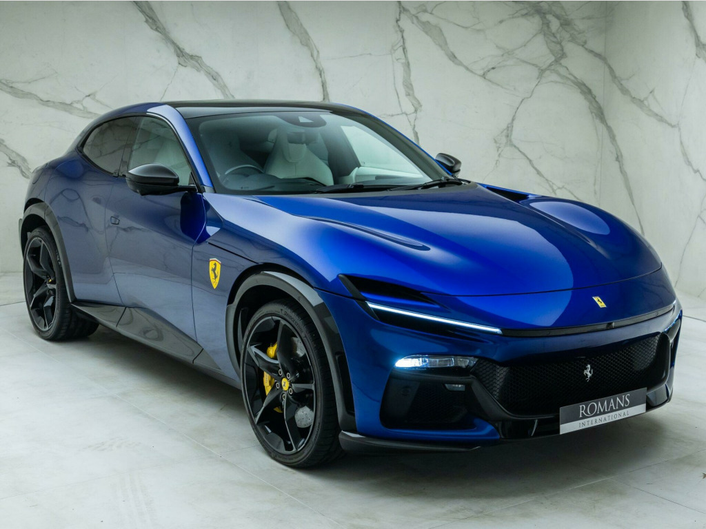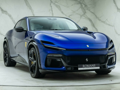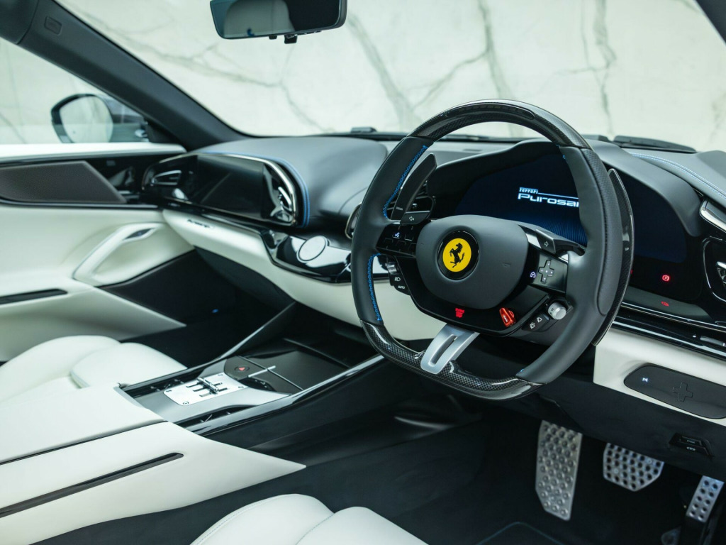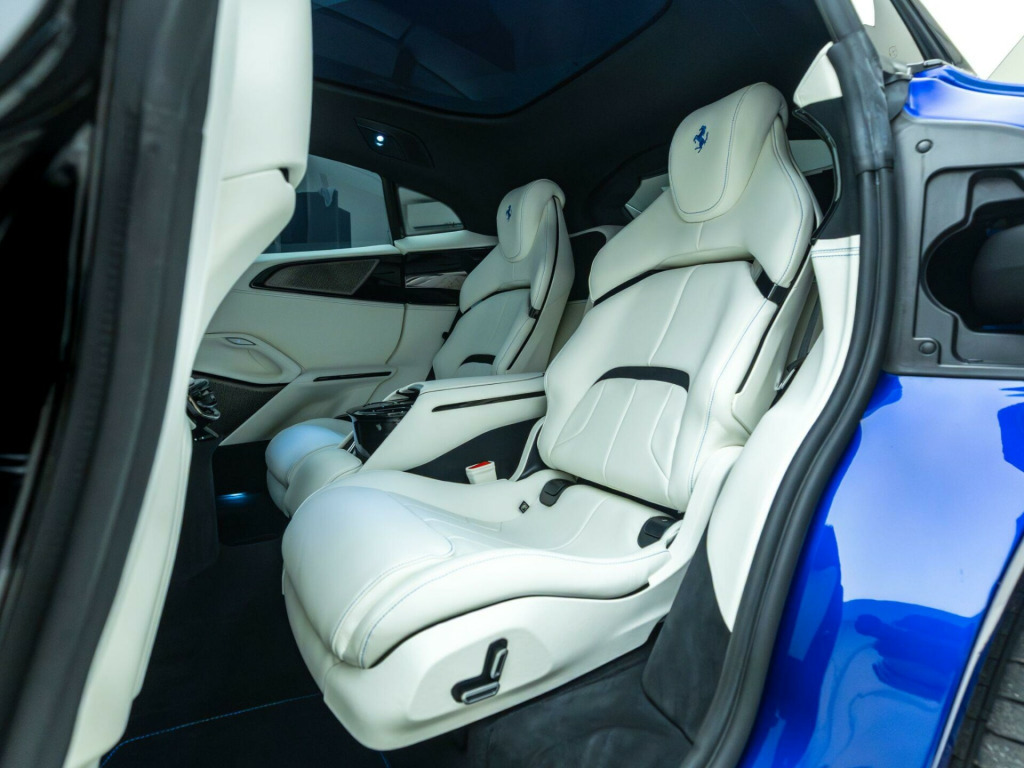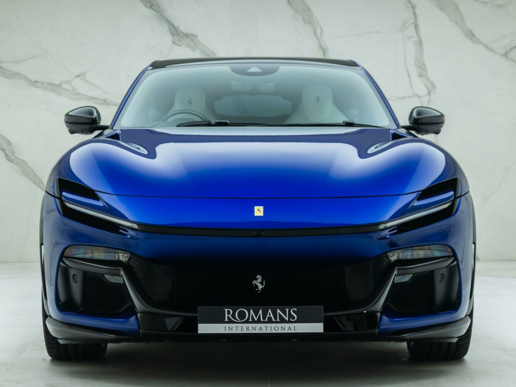 Finished in Special 2-Layer Blu Elettrico Paint (£22,501) with Bianca Leather - 1 Owner From New - High Specification with Over £100K of Options - Desirably Equipped with Airbrushed Shields (£9,510) & Panoramic Roof (£13,427) - Ferrari Manufacturer’s Warranty until April 2029 - Ferrari 7 Year Servicing Plan until April 2032 - Paint Protection Film (PPF) Applied to Whole Car - UK SuppliedOptional Extras:22/23-Inch Glossy Nero Forged WheelsSpecial 2-Layer Blu Elettrico PaintAirbrushed ShieldsCarbon Fibre Wheel ArchesCarbon Fibre Rear DiffuserCarbon Fibre Front SpoilerCarbon Fibre Underdoor CoverCarbon Fibre Outer MirrorsCarbon Fibre Exterior Sill KickplatesCarbon Fibre Steering Wheel with LEDsActive Matrix LED HeadlightsPanoramic RoofMassage & Ventilated Front SeatsHeated Steering WheelSurround ViewSmartphone InterfaceWireless Smartphone ChargerDigital Rear-View MirrorAir Quality SensorLuggage Compartment KitBianca Leather UpholsteryUpper Part of Passenger Compartment in Nero LeatherCavallino Stitched on Headrests in Extra-RangeColoured Special Stitching in Extra-RangeEMPH (Contrast Stitching) Special Thread in Azzuro SSTC2 in Azzurro S Special ThreadAluminium Driver's & Passenger's FootrestsRev Counter in YellowColoured Mats with LogoYellow Brake CalipersBlack Tailpipe TipsTitanium Wheel BoltsPrivacy Rear WindowsPaint Protection Film (PPF) Applied to Whole CarStandard Features:10.2'' Passenger Display4-Zone Air ConditioningAutomatic Rear DoorsBlind Spot DetectionBurmester High-End Audio SystemCarbon Ceramic BrakesFerrari Active SuspensionFront & Rear Parking SensorsInfotelematic System with Bluetooth Audio StreamingISOFIX for Rear SeatsLane Departure WarningLane Keeping AssistRear Parking CameraRear Wheel SteeringSoft Door Close. 22/23-Inch Glossy Nero Forged Wheels, Special 2-Layer Blu Elettrico Paint, Airbrushed Shields, Carbon Fibre Wheel Arches, Carbon Fibre Rear Diffuser, Carbon Fibre Front Spoiler, Carbon Fibre Underdoor Cover, Carbon Fibre Outer Mirrors, Carbon Fibre Exterior Sill Kickplates, Carbon Fibre Steering Wheel with LEDs, Active Matrix LED Headlights, Panoramic Roof, Massage & Ventilated Front Seats, Heated Steering Wheel, Surround View, Smartphone Interface, Wireless Smartphone Charger, Digital Rear-View Mirror, Air Quality Sensor, Luggage Compartment Kit, Bianca Leather Upholstery, Upper Part of Passenger Compartment in Nero Leather, Cavallino Stitched on Headrests in Extra-Range, Coloured Special Stitching in Extra-Range, EMPH (Contrast Stitching) Special Thread in Azzuro S, STC2 in Azzurro S Special Thread, Aluminium Driver's & Passenger's Footrests, Rev Counter in Yellow, Coloured Mats with Logo, Yellow Brake Calipers, Black Tailpipe Tips, Titanium Wheel Bolts, Privacy Rear Windows, Paint Protection Film (PPF) Applied to Whole Car.