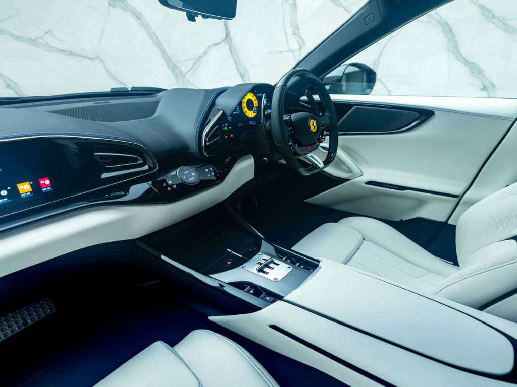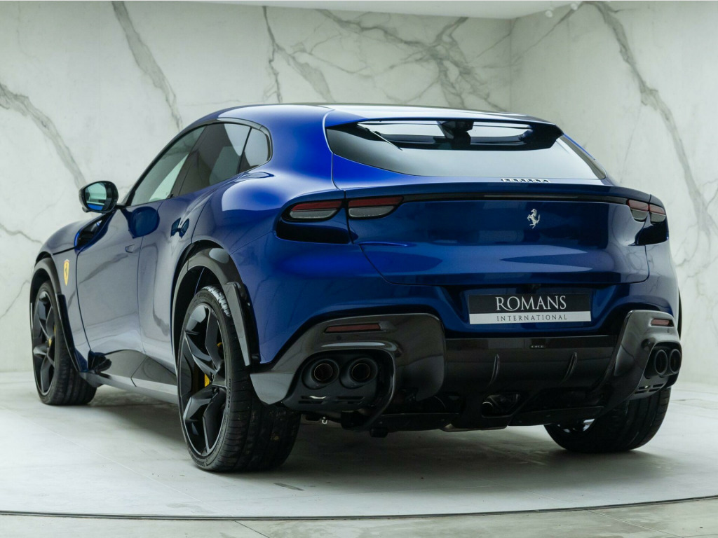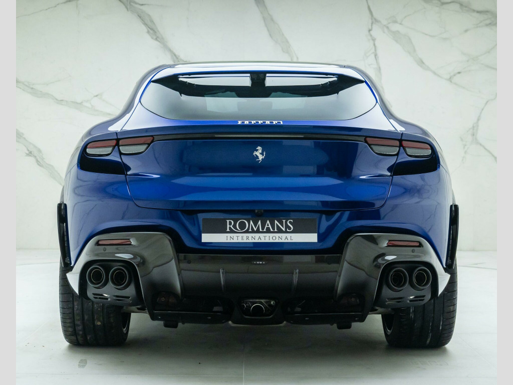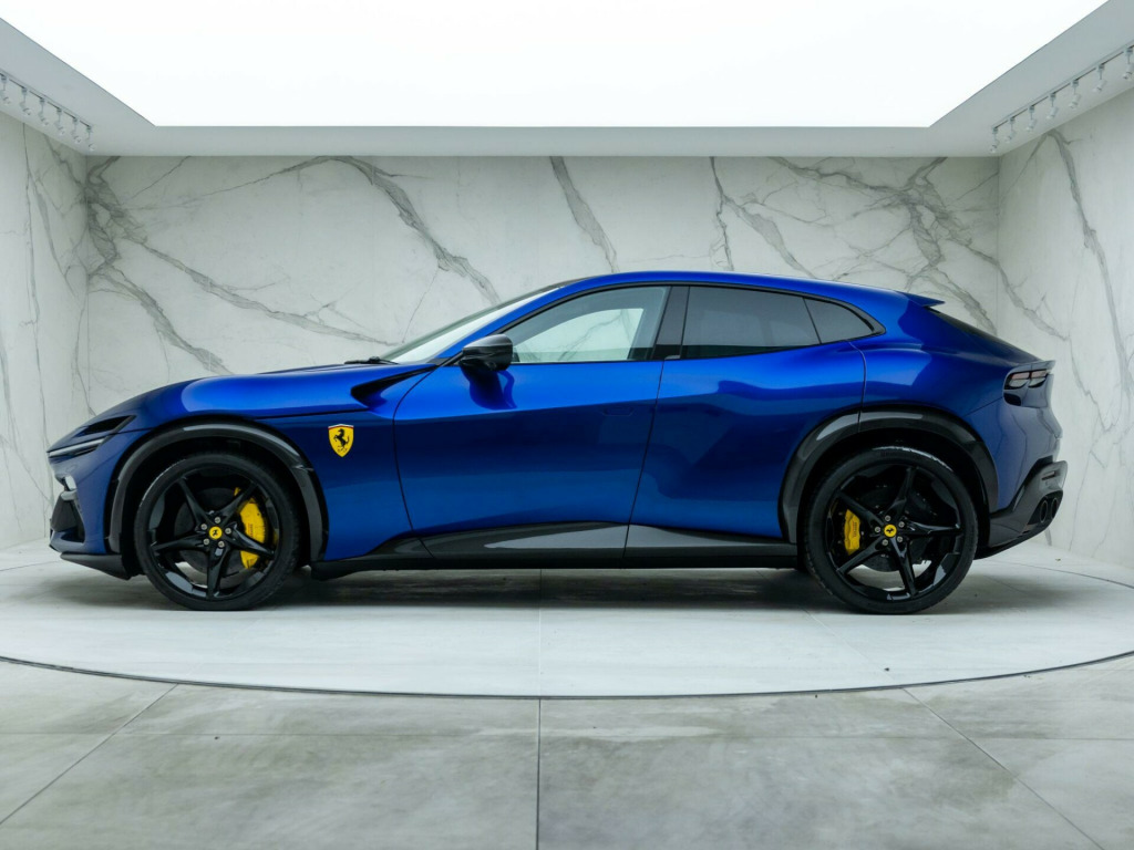Finished in Special 2-Layer Blu Elettrico Paint (£22,501) with Bianca Leather - 1 Owner From New - High Specification with Over £100K of Options - Desirably Equipped with Airbrushed Shields (£9,510) & Panoramic Roof (£13,427) - Ferrari Manufacturer’s Warranty until April 2029 - Ferrari 7 Year Servicing Plan until April 2032 - Paint Protection Film (PPF) Applied to Whole Car - UK SuppliedOptional Extras:22/23-Inch Glossy Nero Forged WheelsSpecial 2-Layer Blu Elettrico PaintAirbrushed ShieldsCarbon Fibre Wheel ArchesCarbon Fibre Rear DiffuserCarbon Fibre Front SpoilerCarbon Fibre Underdoor CoverCarbon Fibre Outer MirrorsCarbon Fibre Exterior Sill KickplatesCarbon Fibre Steering Wheel with LEDsActive Matrix LED HeadlightsPanoramic RoofMassage & Ventilated Front SeatsHeated Steering WheelSurround ViewSmartphone InterfaceWireless Smartphone ChargerDigital Rear-View MirrorAir Quality SensorLuggage Compartment KitBianca Leather UpholsteryUpper Part of Passenger Compartment in Nero LeatherCavallino Stitched on Headrests in Extra-RangeColoured Special Stitching in Extra-RangeEMPH (Contrast Stitching) Special Thread in Azzuro SSTC2 in Azzurro S Special ThreadAluminium Driver's & Passenger's FootrestsRev Counter in YellowColoured Mats with LogoYellow Brake CalipersBlack Tailpipe TipsTitanium Wheel BoltsPrivacy Rear WindowsPaint Protection Film (PPF) Applied to Whole CarStandard Features:10.2'' Passenger Display4-Zone Air ConditioningAutomatic Rear DoorsBlind Spot DetectionBurmester High-End Audio SystemCarbon Ceramic BrakesFerrari Active SuspensionFront & Rear Parking SensorsInfotelematic System with Bluetooth Audio StreamingISOFIX for Rear SeatsLane Departure WarningLane Keeping AssistRear Parking CameraRear Wheel SteeringSoft Door Close. 22/23-Inch Glossy Nero Forged Wheels, Special 2-Layer Blu Elettrico Paint, Airbrushed Shields, Carbon Fibre Wheel Arches, Carbon Fibre Rear Diffuser, Carbon Fibre Front Spoiler, Carbon Fibre Underdoor Cover, Carbon Fibre Outer Mirrors, Carbon Fibre Exterior Sill Kickplates, Carbon Fibre Steering Wheel with LEDs, Active Matrix LED Headlights, Panoramic Roof, Massage & Ventilated Front Seats, Heated Steering Wheel, Surround View, Smartphone Interface, Wireless Smartphone Charger, Digital Rear-View Mirror, Air Quality Sensor, Luggage Compartment Kit, Bianca Leather Upholstery, Upper Part of Passenger Compartment in Nero Leather, Cavallino Stitched on Headrests in Extra-Range, Coloured Special Stitching in Extra-Range, EMPH (Contrast Stitching) Special Thread in Azzuro S, STC2 in Azzurro S Special Thread, Aluminium Driver's & Passenger's Footrests, Rev Counter in Yellow, Coloured Mats with Logo, Yellow Brake Calipers, Black Tailpipe Tips, Titanium Wheel Bolts, Privacy Rear Windows, Paint Protection Film (PPF) Applied to Whole Car.