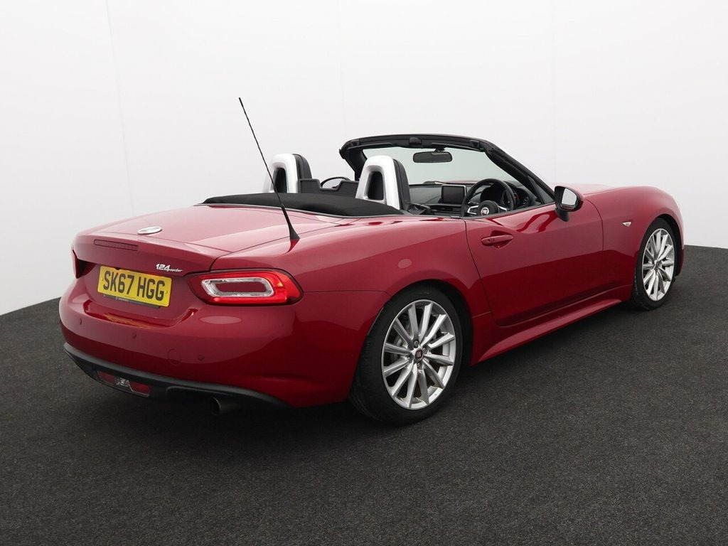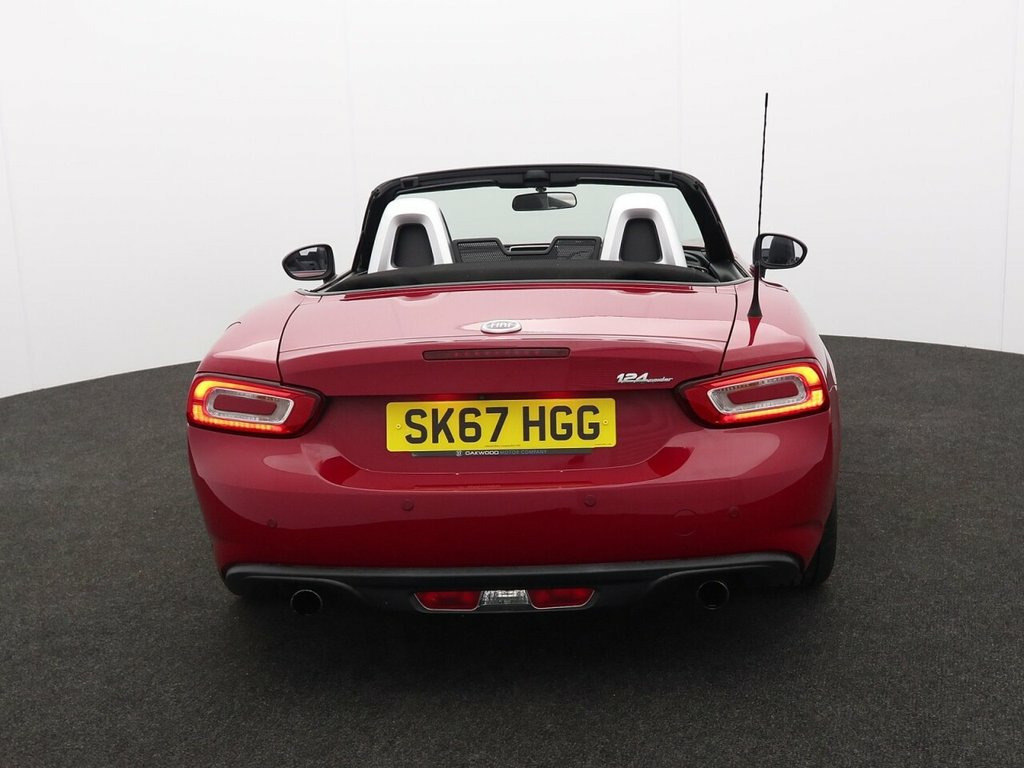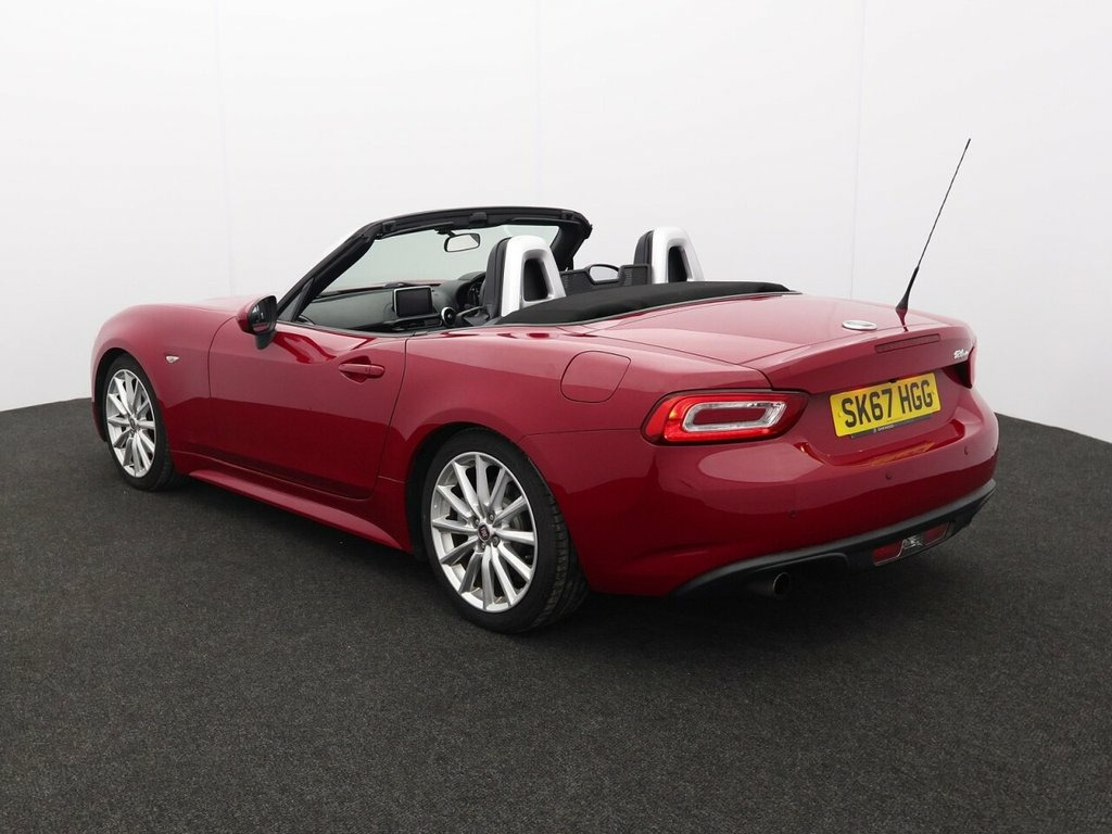 This 2017 Fiat 124 Spider Lusso is a superb example, boasting a clear vehicle history check and having had only two owners. It features a responsive 1.4 litre petrol engine, meeting Euro 6 emissions standards, and benefits from a long MOT. Inside, you'll find comfortable heated seats and automatic climate control, while the 7 inch touchscreen radio offers DAB, Bluetooth, WiFi, and USB connectivity. Manoeuvring is made easier with the Parkview rear parking camera and rear parking sensors. This particular Fiat 124 Spider Lusso offers excellent fuel economy, achieving up to 44 miles per gallon, and has low CO2 emissions, indicating it is a more environmentally conscious choice compared to similar vehicles. Its combination of desirable features and strong provenance makes it a compelling option for those seeking a stylish and well maintained convertible. 7in Touchscreen Radio with Multimedia Co, Navigation System with 3D Maps, 17in Alloy Wheels, Chrome Double Exhaust Pipe, Electric Front Windows, Electrically Adjustable Body Coloured Do, Premium Silver Windscreen Frame, Automatic Climate Control, Heated Seats, Keyless Go - Engine Start Button, Leather Gear Knob, Leather Steering Wheel with Audio Contro, Fog Lights, Leather - Black with Silver Stitching, LED Rear Lights, Passione Red, Power Steering, ABS - Anti-Lock Braking System, Cruise Control with Speed Limiter, ESC - Electronic Stability Control, Front and Side Airbags, Keyless Entry, Parkview Rear Parking Camera, Premium Silver Roll Bars, Rear Parking Sensors, TPMS - Tyre Pressure Monit