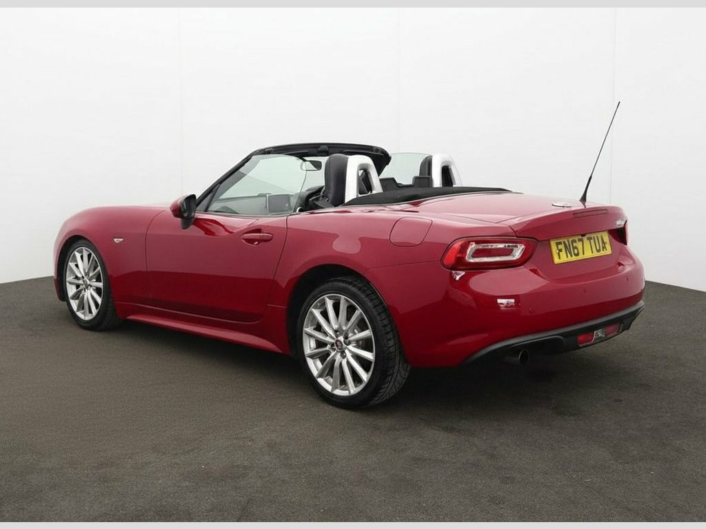 This 2017 Fiat 124 Spider Lusso is a superb example, boasting a clear vehicle history check and a long MOT, offering you peace of mind. Powered by a responsive 1.4L Petrol Engine, this Euro 6 compliant model combines enjoyable driving with efficiency. Inside, you'll find a wealth of features designed for comfort and convenience, including heated seats to keep you warm on cooler days, and an automatic climate control system. The 7in touchscreen radio provides seamless connectivity with DAB, Bluetooth, WiFi, and multiple USB and Aux inputs, all managed easily with the multimedia control knob. Navigating tight spots is made simple with rear parking sensors and a Parkview rear parking camera. This Fiat 124 Spider Lusso offers an impressive fuel economy of 44 mpg, a highlight that demonstrates its efficiency compared to similar vehicles. Furthermore, its low CO2 emissions also set it apart, indicating a more environmentally conscious choice. This combination of excellent fuel economy and low emissions, alongside its comprehensive feature set and strong provenance, makes this 2017 Fiat 124 Spider Lusso a compelling option for those seeking a stylish and practical convertible. 7in Touchscreen Radio with Multimedia Co, Navigation System with 3D Maps, 17in Alloy Wheels, Chrome Double Exhaust Pipe, Electric Front Windows, Electrically Adjustable Body Coloured Do, Premium Silver Windscreen Frame, Automatic Climate Control, Heated Seats, Keyless Go - Engine Start Button, Leather Gear Knob, Leather Steering Wheel with Audio Contro, Fog Lights, Leather - Black with Silver Stitching, LED Rear Lights, Passione Red, Power Steering, ABS - Anti-Lock Braking System, Cruise Control with Speed Limiter, ESC - Electronic Stability Control, Front and Side Airbags, Keyless Entry, Parkview Rear Parking Camera, Premium Silver Roll Bars, Rear Parking Sensors, TPMS - Tyre Pressure Monit