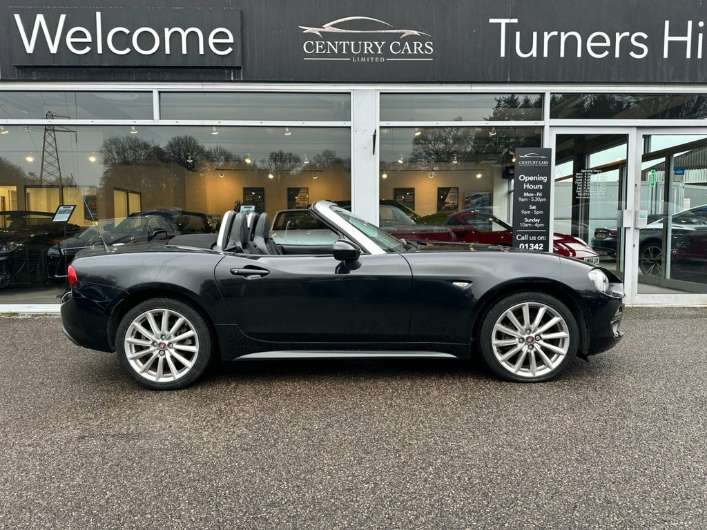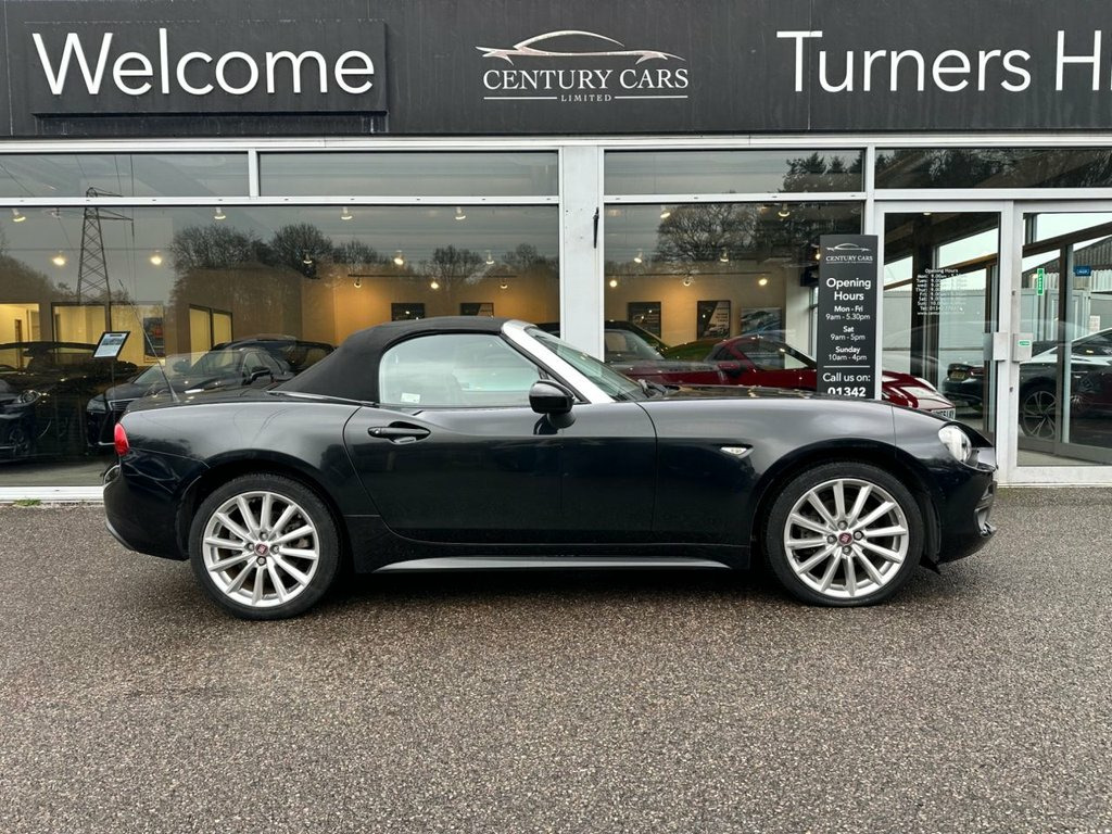 This Fiat 124 Spider Lusso Plus 1.4cc MultiAir Lusso Convertible. Has covered only 17,298 miles. A true credit to its former keeper who has maintained and cherished this Spider to the highest of standards. A beautiful example in every aspect and must be viewed to be appreciated. Offered for sale by Century Cars of West Sussex. Tailored Finance Packages and Nationwide Delivery. 17in Alloy Wheels, 7in Touchscreen Radio with Multimedia Co, ABS - Anti-Lock Braking System, Automatic Climate Control, Chrome Double Exhaust Pipe, Cruise Control with Speed Limiter, ESC - Electronic Stability Control, Electric Front Windows, Electrically Adjustable Body Coloured Do, Fix and Go Puncture Repair Kit, Fog Lights, Front and Side Airbags, Heated Seats, Keyless Entry, Keyless Go - Engine Start Button, LED Rear Lights, Leather Gear Knob, Leather Steering Wheel with Audio Contro, Navigation System with 3D Maps, Parkview Rear Parking Camera, Power Steering, Premium Silver Roll Bars, Premium Silver Windscreen Frame, Rear Parking Sensors, TPMS - Tyre Pressure Monitoring System, Leather