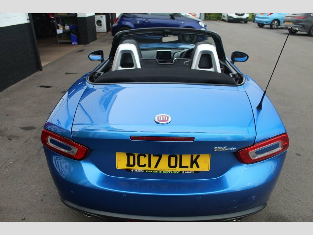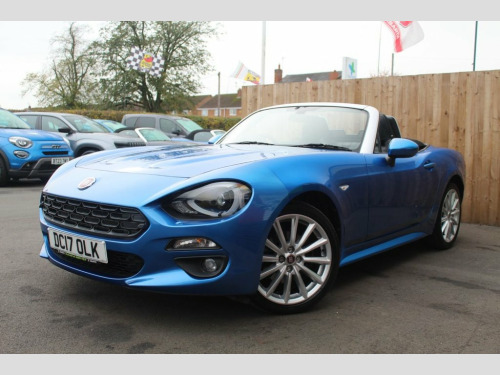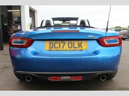 This 2017 Fiat 124 Spider Lusso Plus is a rare find, having had only two owners from new Full Service History, This stylish convertible boasts a 1.4 litre petrol engine and meets Euro 6 emissions standards. Inside, you'll appreciate the comfort of heated seats, the convenience of keyless entry, and the advanced Parkview rear parking camera with parking assistance. Driving is made easier with rain and dusk sensors that automatically activate the headlights, and the premium BOSE audio system with nine speakers ensures an enjoyable listening experience. With an impressive fuel economy of 43 miles per gallon, this Fiat 124 Spider Lusso Plus offers excellent value for money. Its low CO2 emissions also highlight its efficiency compared to similar vehicles. This combination of desirable features, excellent provenance, and economical running costs makes this particular model stand out,Supplied With 2 X Keys And Fully Prepared By Our Own Workshop Prior To Handover. 17in Alloy Wheels, 7in Touchscreen Radio with Multimedia Co, ABS - Anti-Lock Braking System, AFS - Adaptive Front-Lighting System, Automatic Climate Control, BOSE Audio System with 9 Speakers, Chrome Double Exhaust Pipe, Cruise Control with Speed Limiter, Electric Front Windows, Electrically Adjustable Body Coloured Do, ESC - Electronic Stability Control, Fix and Go Puncture Repair Kit, Fog Lights, Front and Side Airbags, Heated Seats, Italia Blue, Keyless Entry, Keyless Go - Engine Start Button, Leather - Black with Silver Stitching, Leather Gear Knob, Leather Steering Wheel with Audio Contro, LED Rear Lights, LED Technology Headlights and DRLs with , Navigation System with 3D Maps, Parkvie