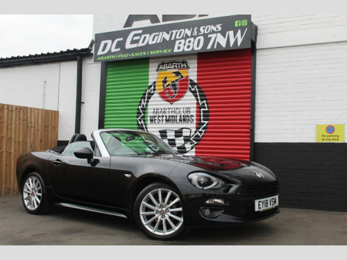 A Great Example Of A FIAT 124 SPIDER LUSSO PLUS,Finished in Volcano Black With Contrasting Black Leather Interior,Having The Benefit Of Sat-Nav,Led Lights,Bose Entertainment,17" Alloy Wheels,Reverse Camera Supplied With 2 X Keys Recent Cambelt And Waterpump Replacement And BeingFully Prepared By Our Own Workshop Prior To Handover. 17in Alloy Wheels, 7in Touchscreen Radio with Multimedia Co, ABS - Anti-Lock Braking System, AFS - Adaptive Front-Lighting System, Automatic Climate Control, BOSE Audio System with 9 Speakers, Chrome Double Exhaust Pipe, Cruise Control with Speed Limiter, Electric Front Windows, Electrically Adjustable Body Coloured Do, ESC - Electronic Stability Control, Fix and Go Puncture Repair Kit, Fog Lights, Front and Side Airbags, Heated Seats, Keyless Entry, Keyless Go - Engine Start Button, Leather - Black with Silver Stitching, Leather Gear Knob, Leather Steering Wheel with Audio Contro, LED Rear Lights, LED Technology Headlights and DRLs with , Navigation System with 3D Maps, Parkview Rear Parkin