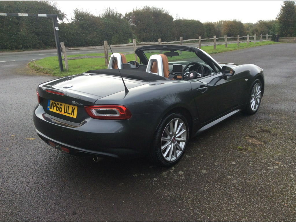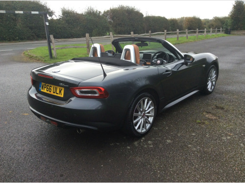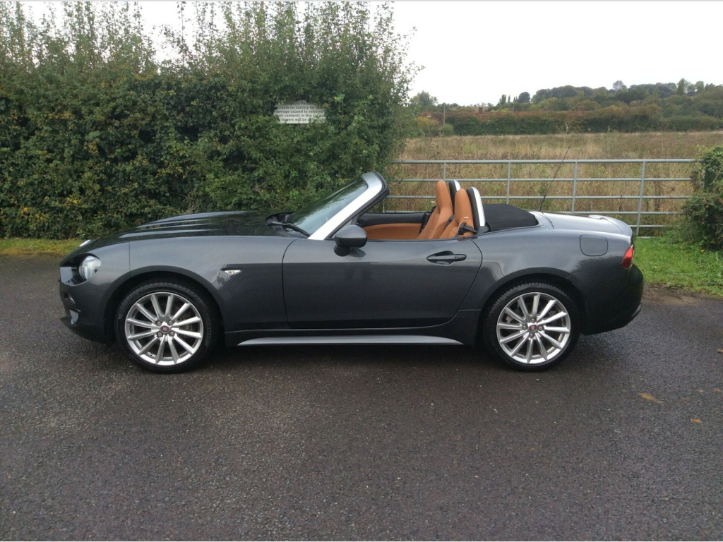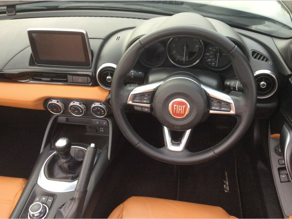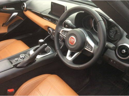 Here we have a superb very low mileage Fiat 124 1.4 MultiAir Lusso Plus Convertible. Covered just 16,000 miles with full service history and boasts an impressive specification, including satellite navigation, bose sounds system, bluetooth, heated leather seats, cruise control, and air conditioning. For our comprehensive stock list, please visit our website at www.maidstoneautocentre.co.uk. Please note that some of our cars are stored off-site, so it's advisable to give us a call before your visit to confirm their availability. All our cars come with a comprehensive 12-month AA breakdown cover, and we also offer various finance and extended warranty packages to suit your needs. in alloy wheels, chrome double exhaust pipe, electric front windows, electrically adjustable body coloured door mirrors, fix and go puncture repair kit, premium silver windscreen frame, 7in touchscreen radio with multimedia control knob - dab - bluetooth - wifi - 2 usb ports and aux-in, bose audio system with 9 speakers, navigation system with 3d maps, abs - anti-lock braking system, esc - electronic stability control, front and side airbags, keyless entry, premium silver roll bars, afs - adaptive front-lighting system, fog lights, led rear lights, led technology headlights and drls with headlight washers, rain and dusk sensors, automatic climate control, heated seats, keyless go - engine start button, leather gear knob, leather steering wheel with audio controls, cruise control with speed limiter, parkview rear parking camera, power steering, rear parking sensors, tpms - tyre pressure monitoring system