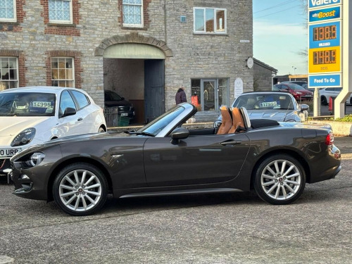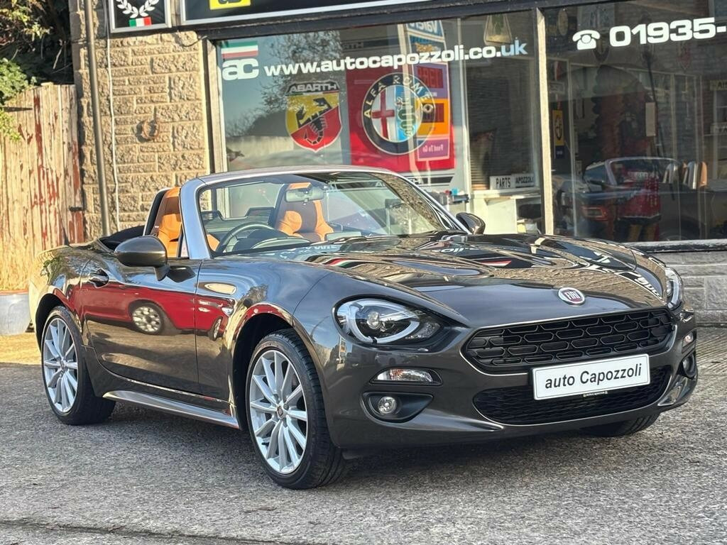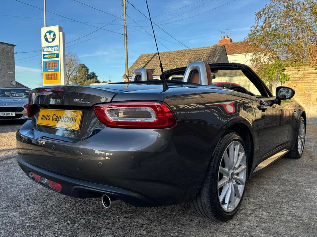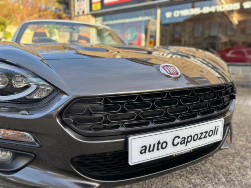 STUNNING TWO OWNER VERY LOW MILEAGE 124 SPIDER LUSSO PLUS 140bhp, ONLY 9K MILES WITH FULL SERVICE HISTORY, (CAMBELT/WATER PUMP CHANGED 9K MILES IN NOV 2025), FINISHED IN GORGEOUS MAGNETIC BRONZE WITH RARE TOBACCO LEATHER, GREAT SPEC SPIDER WITH BOSE AUDIO SYSTEM WITH 9 SPEAKERS, XENON HEADLIGHTS WITH HEADLIGHT WASH, AUTO LIGHTS/WIPERS, REAR PARKING SENSORS WITH REAR PARKING CAMERA, HEATED SEATS, 7'' TOUCHSCREEN DAB RADIO WITH SATELLITE NAVIGATION, MULTI MEDIA CONTROL KNOB, MULTI FUNCTION BLACK LEATHER STEERING WHEEL WITH CRUISE CONTROL/SPEED LIMITER, AUTOMATIC CLIMATE CONTROL WITH AIR CONDITIONING, KEYLESS ENTRY WITH KEYLESS START, Electric Windows, Electric Door Mirrors with Colour Coded Mirror Caps, Premium Silver Roll Over Hoops with Premium Silver Windscreen Frame, Wind Deflector, 17'' Multi Spoke Alloy Wheels, ABS Brakes, ESC - Electronic Stability Control, Front Fog Lights, Chrome Double Exhaust Pipes, 6 Speed Gearbox, 2 seats, MAGNETIC BRONZE with TOBACCO LEATHER, 2 owners, Upgrades - Leather - Tobacco, Colour-Magnetic Bronze, AUTO CAPOZZOLI ILCHESTER, Est Since 1959, Alfa Romeo/Abarth/Fiat Specialists, £14,995, in alloy wheels, chrome double exhaust pipe, electric front windows, electrically adjustable body coloured door mirrors, premium silver windscreen frame, 7in touchscreen radio with multimedia control knob - dab - bluetooth - wifi - 2 usb ports and aux-in, bose audio system with 9 speakers, navigation system with 3d maps, abs - anti-lock braking system, esc - electronic stability control, front and side airbags, keyless entry, premium silver roll bars, afs - adaptive front-lighting system, fog lights, led rear lights, led technology headlights and drls with headlight washers, rain and dusk sensors, automatic climate control, heated seats, keyless go - engine start button, leather gear knob, leather steering wheel with audio controls, cruise control with speed limiter, parkview rear parking camera, rear parking sensors, tpms - tyre pressure monitoring system, 17'' Alloys
