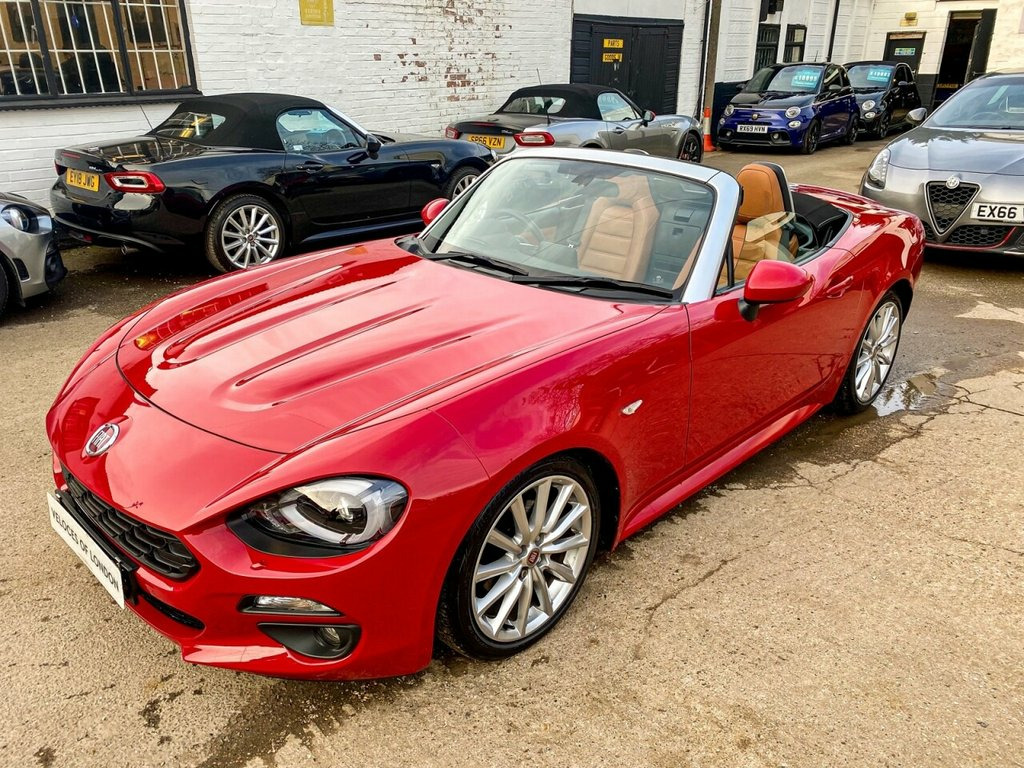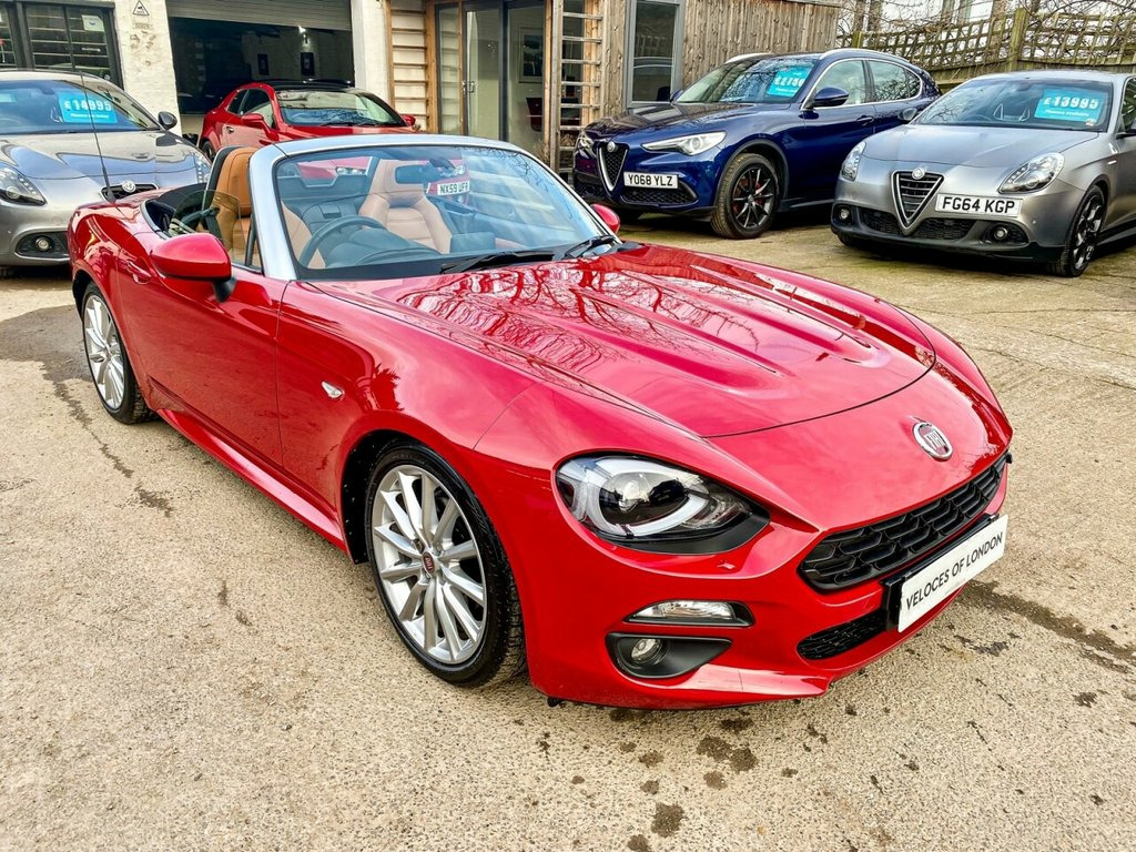 STRIKING FIAT 124 SPIDER LUSSO PLUS FINISHED IN PASSIONE RED WITH FULL TAN LEATHER HEATED SEATS.. 17" MULTISPOKE ALLOYS WITH SPORTS BRAKE CLAIPIERS ... FACTORY 7" TOUCH SCREEN SATELLITE NAVIGATION WITH REVERSE CAMERA ... BI-XENON HEADLAMPS WITH POWER WASH ... BLUETOOTH STREAMING MUSIC & PHONE ... GREAT SOUNDING BOSE SOUND SYSTEM WITH SPEAKER HEADRESTS, SUB & AMP ... ICED COLD AIR CONDITIONING ... CRUISE CONTROL ... TRACTION CONTROL ... MULTI-FUNCTION LEATHER STEERING WHEEL ... TYRE PRESSURE MONITORING SYSTEM ... REAR PARKING SENSORS ... WINTER PACK WITH HEATED SEATS & DOOR MIRRORS ...PRIVATELY OWNED FROM NEW WITH FULL-SERVICE HISTORY + JUST SERVICED INCLUDING NEW CAMBELT.....ASK ABOUT OUR GREAT-SOUNDING ASCARI EXHAUSTS & AWARD-WINNING REMAPS ...NOT TOO BE MISSED.. 17in Alloy Wheels, Chrome Double Exhaust Pipe, Electric Front Windows, Electrically Adjustable Body Coloured Do, Fix and Go Puncture Repair Kit, Premium Silver Windscreen Frame, 7in Touchscreen Radio with Multimedia Co, AFS - Adaptive Front-Lighting System, BOSE Audio System with 9 Speakers, Cruise Control with Speed Limiter, Fog Lights, LED Rear Lights, LED Technology Headlights and DRLs with , Navigation System with 3D Maps, Parkview Rear Parking Camera, Power Steering, Rain and Dusk Sensors, Rear Parking Sensors, TPMS - Tyre Pressure Monitoring System, ABS - Anti-Lock Braking System, ESC - Electronic Stability Control, Front and Side Airbags, Keyless Entry, Premium Silver Roll Bars, Autom