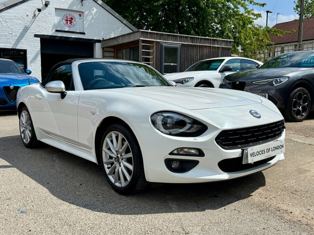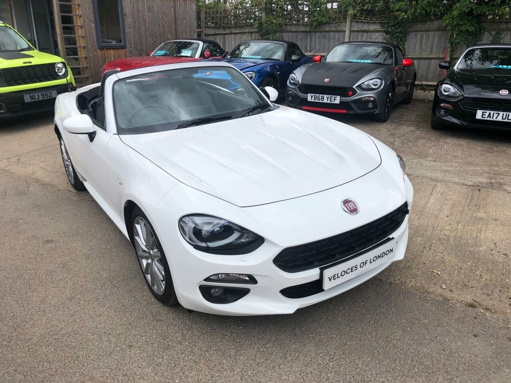 Veloces Are Pleased To Be Able to Offer For Sale This Extremely Rare Fiat 124 Spider Lusso Pus Automatic Finished In Pearlescent Bianco With Full Black Heated Leather Seats.. 17" Multispoke Alloys With Sports Brake Calipers & Silver Alloy Wheels..Bi Xenon Headlamps With Powerwash..Factory 7" Touch Screen Satellite Navigation With Reverse Camera...Great Sounding Bose Sound System With Headrest Speakers..Bluetooth Streaming Music & Phone..Iced Cold Air Conditioning..Cruise Control..Traction Control..Multi Function Leather Steering Wheel..Tyre Pressure Monitoring System..Rear Parking Sensors..Winter Pack With Heated Seats & Door Mirrors..Privately Owned With Full Service History + Serviced By Ourselves Prior To Sale Including A New Cambelt.. All Our Cars Come With A Comprehensive Warranty & 12 Months AA Membership..Free Personalised Number Plate..Ask About Our Ascari Performance Upgrades & Low Rate Finance Packages., Urban White, 3D map display, Cruise control + speed limiter, Dusk and rain sensors, Navigation system, PAS, Rear parking camera, Rear parking sensors, ABS/EBD, Dual front airbags, Electronic stability control, ESP + ASR/MSR + HBA + Hill holder, Roll over hoops in silver, Side airbags, Tyre pressure monitoring system, Immobiliser, Keyless entry, Keyless Start, 7" touchscreen radio with multimedi, Bose premium 9 speaker system, Automatic climate control, Front armrest, Front head restraints, Heated seats, Leather gear knob, Leather steering wheel with audio contro, Leather upholstery, Adaptive front lighting system, Body coloured bumpers, Body coloured door mirrors, Dual chrome exhaust, E