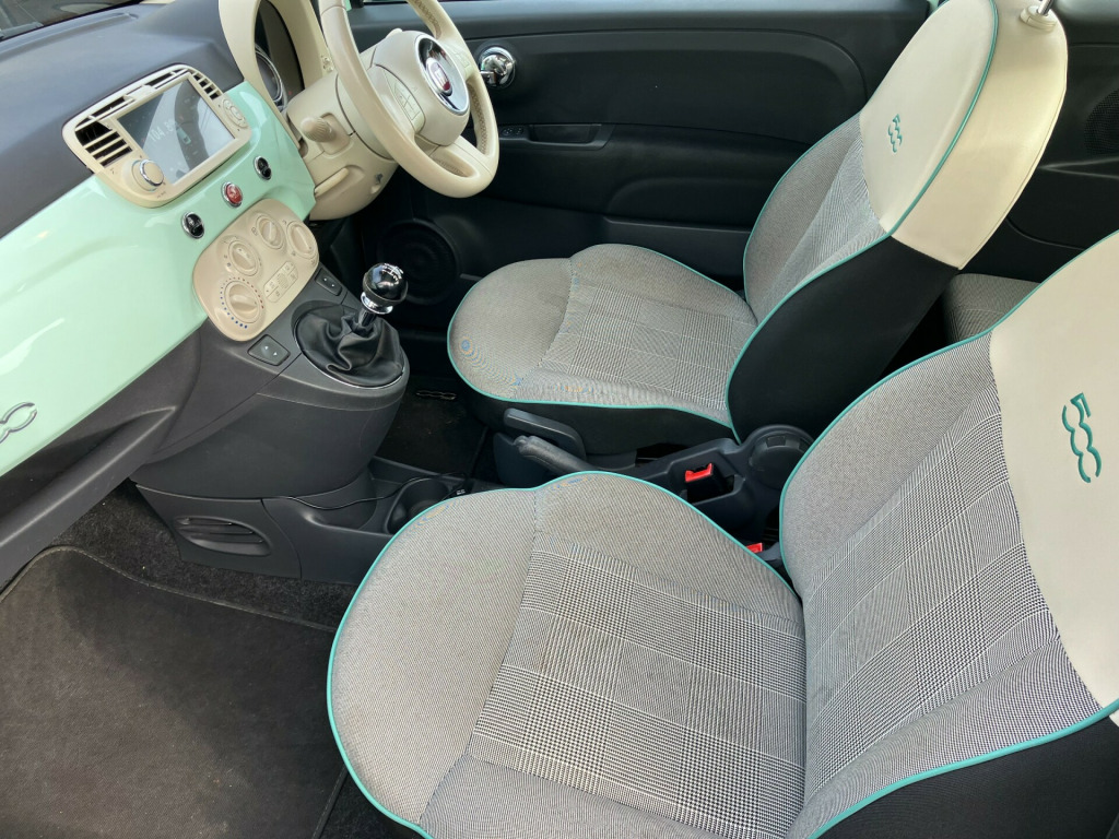 2014 '64' Fiat 500 1.2 LOUNGEINTERIOR: Grey cloth interior. Electric windows. Electric mirrors. Remote central locking. Air con. Power steering. Multiple air bags. Aftermarket radio / touchscreen media. Reverse camera. Front dash cam.EXTERIOR: Mint green paintwork, colour coded bumpers and mirrors. 15'' Fiat alloy wheels. Some marks consistent with age / value etc, and couple of small dinks.MECHANICALS: 1242cc petrol engine. 5 speed manual gearbox. All running gear good, and the car drives well. Recent cambelt etc at 62k, and engine service at 69k.PAPERWORK: Previous Cat S repaired in 2019. Full logbook. Current MOT expires December 16th 2026. Stamped service book, showing 5 records, plus invoices etc. All owners manuals in Fiat wallet.OVERALL: Brilliant value little car, ideal learner driver. £35 annual road TAX. Drives great. Nice spec. Recent engine service and recent cambelt kit etc. Long MOT., v socket - front, blue&me - hands free system with usb port, radio-cd and mp3 player, 15in alloy wheels - 73z, body coloured bumpers, chrome kit, electric front windows, electrically adjustable heated door mirrors, fix and go puncture repair kit, fixed glass roof, locking wheel nuts, space saver spare wheel, thermal windows, abs - anti-lock braking system, asr - anti-slip regulation, airbags - driver, airbags - front side, airbags - passenger, bas - brake assistance system, drivers knee airbag, ebd - electronic brakeforce distribution, esp - electronic stability programme, hill holder, msr - motor slip regulation, remote central locking, steering wheel - black, window airbags, air conditioning, grab handle, height adjustable drivers seat, seats - passengers memory function, seats-back pockets, split folding 50:50 rear seat, steering wheel - height adjustment, steering wheel - leather with audio controls, steering wheel audio controls, storage under passenger seat, dualdrive power steering, exterior temperature sensor, gsi - gear shift indicator, tyre pressure monitor system