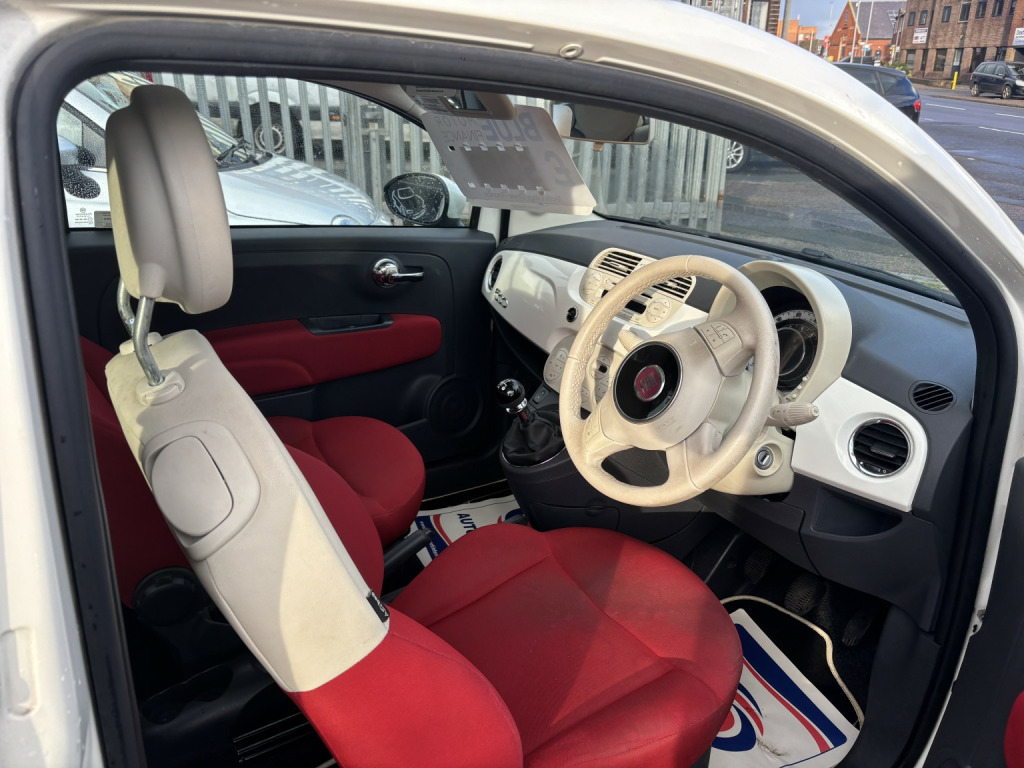 Fiat 500 0.9L Petrol, 5 speed manual transmission, 77,000 miles, 2011 reg, finished in white, sold with a. years MOT, two keys and bookpack