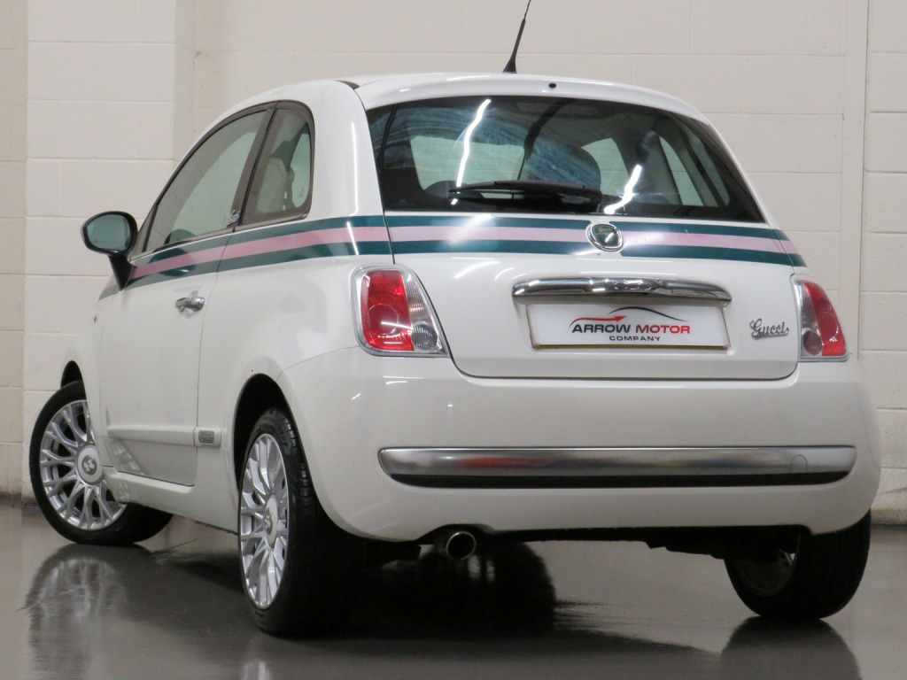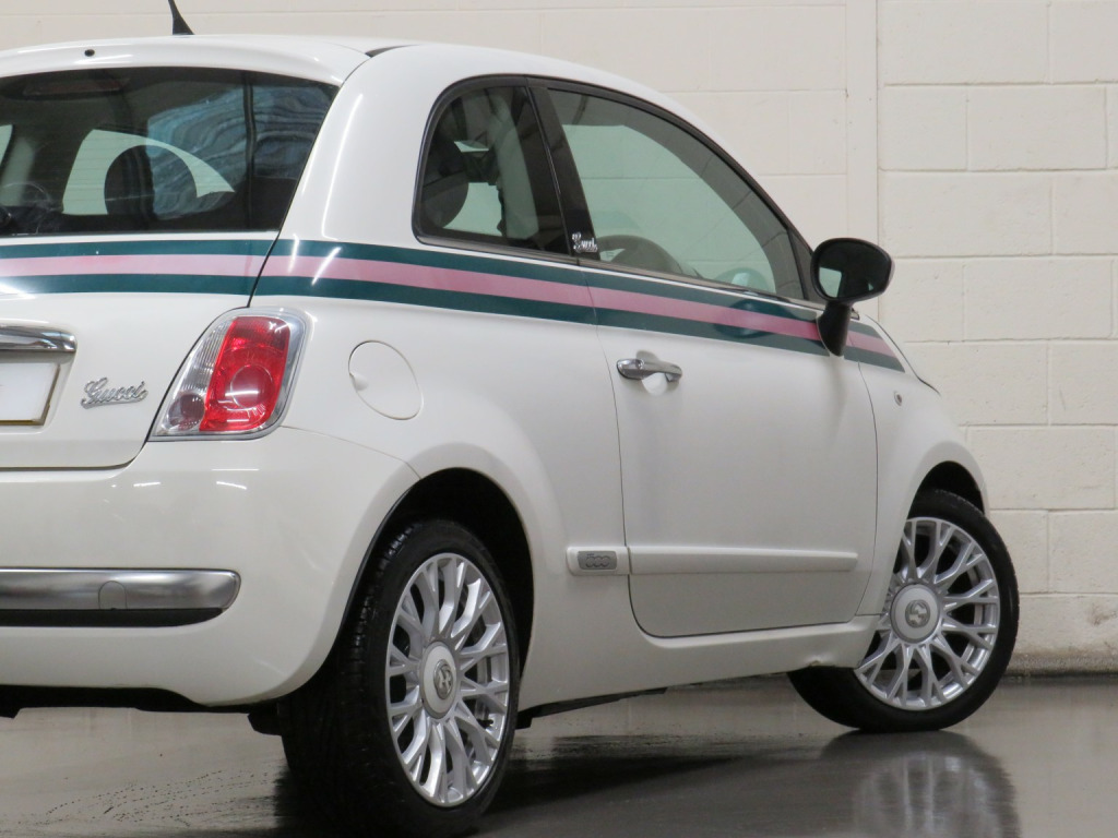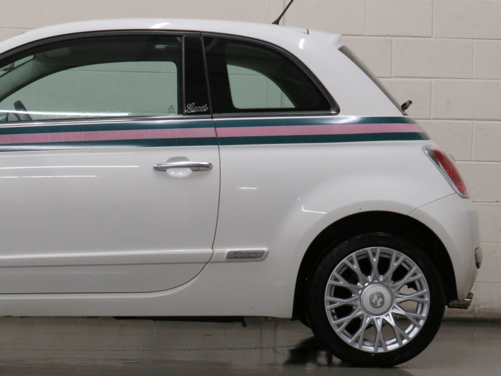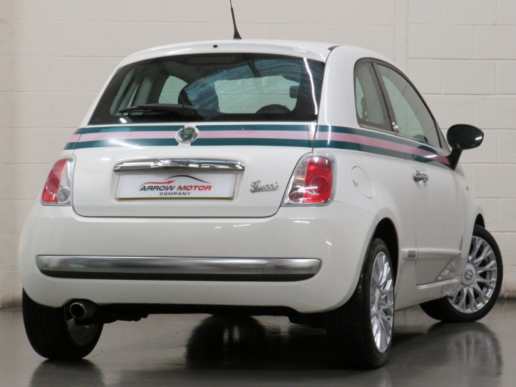 Arrow Motor Company are pleased to present this fantastic Fiat 500 By Gucci Edition, finished in the stunning White Pearl Paintwork, with contrasting Gucci Web Tri-Colour Leather Interior. Equipped with Fiats Award Winning TwinAir 875cc Petrol 2-Cylinder Turbocharged Engine capable of producing 85bhp whilst providing the most economical of drivers with a highly respectable 68.9mpg, with potential to rise to 76.3mpg in Extra-Urban environments. This particular example is complimented by Full Service History (FSH) and £20 annual Road Tax. This vehicle also benefits from the following impressive list of features, , ↓ ↓ ↓ ↓ ↓ ↓ ↓ ↓ ↓ ↓ ↓ ↓ ↓ ↓ ↓ ↓ ↓ ↓ ↓ ↓ ↓, Interior Features, , GUCCI Headrests | Blue&Me Bluetooth Telephone | Climate Control with Air Conditioning | Multifunction Steering Wheel Air Conditioning | USB | AUX | AM/FM Radio | Glovebox Storage | Stop Start System | 4 Cupholders | Central Locking | ECO Driving Mode | Rear Heated Windscreen | ASR System | Dimming Rear View Mirror | ISOFIX | Folding Rear Seats | 12v Socket, , Exterior Features, , GUCCI Badging | 16-Inch Gucci Style Alloy Wheels | Metal Finish Door Mirrors | Side Rubbing Strips in Boy Colour| Exterior Gucci Web Striping | Electrically Adjustable Wing Mirrors | Fog Lights | Daytime Running Lights | Electrically Adjustable Wing Mirrors | Space Saver Spare Wheel | Radio Aerial | Electric Windows | Bodycoloured Wing Mirrors | Chrome Line Exterior | Fiat 500 Centre Caps